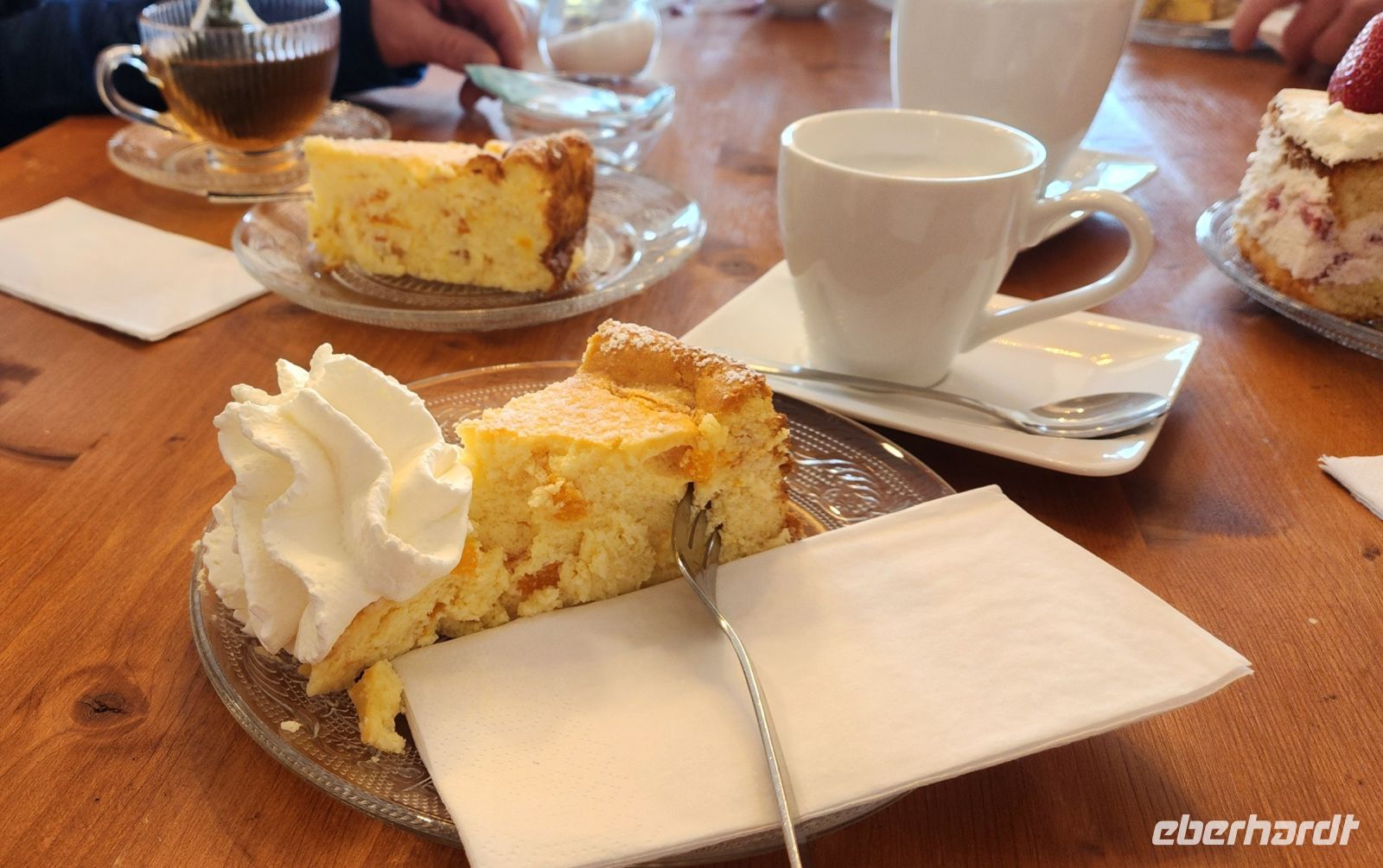 Manche fahren mit dem Auto, manche mit dem Zug. Nach und nach trudeln wir alle am Nachmittag in unserem Hotel Neuwarft ein und beziehen unsere gemütlichen Zimmer. Eine kleine Gruppe trifft sich bereits zum Kaffee und Kuchen im Cafe "Kaffee-Zeit" , Käsekuchen, Friesentorte oder auch Rhabarber-Streusel, alles selbst gebacken.