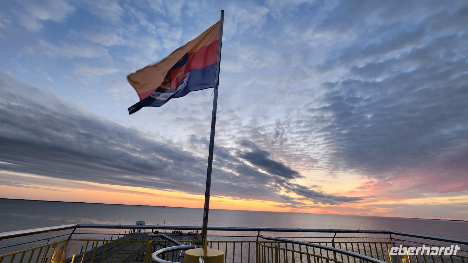 Uns wird ein wunderschöner Sonnenuntergang geschenkt, also spazieren wir zum Abschluss des Tages noch einmal zur Mole und genießen die schönen Farben am Himmel.