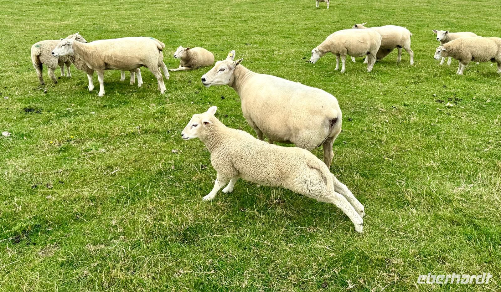 Am Vormittag unseres letzten gemeinsamen Tages unternahmen wir die Deichrundwanderung um Dagebüll, besuchten die St. Dionysius-Kirche, machten Fotos von der Lorenbahn, die Dagebüll mit der Hallig Oland verbindet und sahen ganz, ganz viele Schafe.