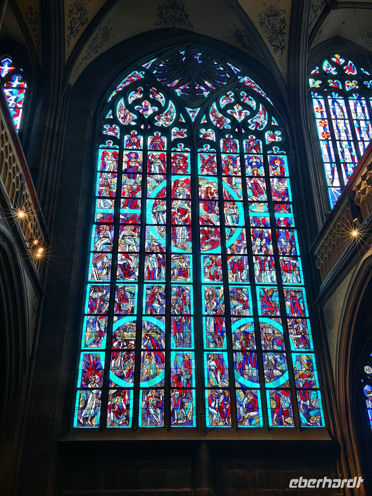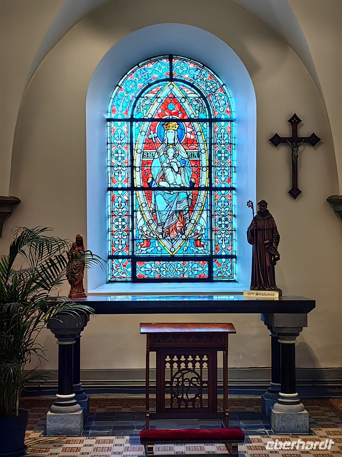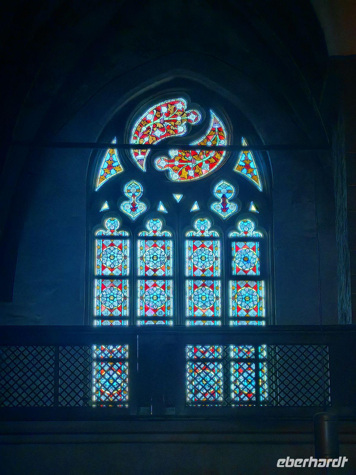 Wir wandeln in der Kirche umher, man hat eine Krippe aufgestellt und durch die bunten Fenster strahlen bei dem Sonnenschein heute wunderbare Lichtreflexionen.