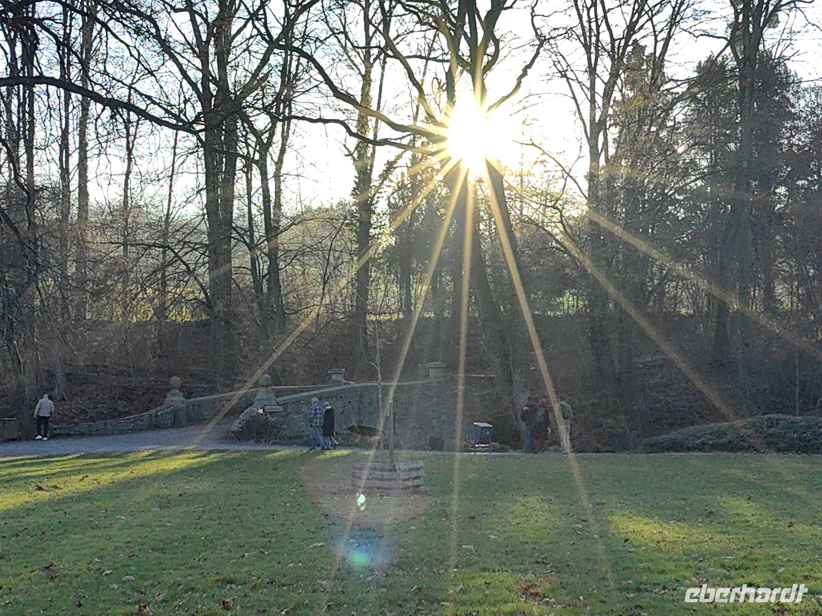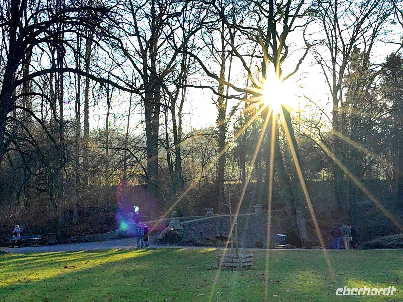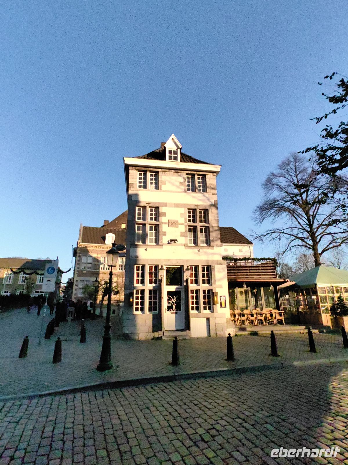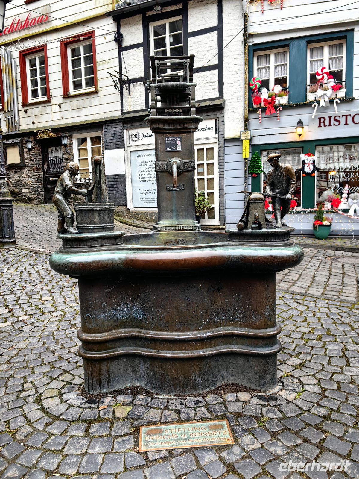 Wir erfahren viele Geschichten und Anekdoten, die alle eng mit der Tuchherstellung und Textilindustrie verbunden sind. Andächtig verweilen wir vor dem Roten Haus in Monschau, welches dem Kaufmann Johann Scheibler gehörte, dem es gelang, das aufwendig hergestellte Monschauer Tuch zu einem hochwertigen Luxusartikel zu machen und es danach europaweit zu vermarkten. Nachdem diese Vermarktung geglückt und Herr Scheibler reich geworden war, ließ er sich 1760 ein repräsentatives Wohnhaus errichten, welches ebenfalls als Handelszentrale und Kontor, Lager und Wollwäsche genutzt wurde. Heute befindet sich ein Museum mit 13 vollständig original eingerichteten Wohnräumen darin, zu Weihnachten ist es allerdings geschlossen und wir können die Pracht nur von außen bestaunen.