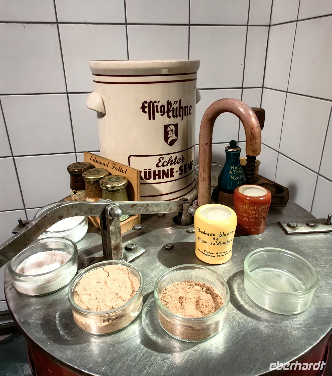 Danach fahren wir zur alten Senfmühle, wo der Senf, den wir gerade als Soße verkostet haben, nach alten traditionellen Rezepten hergestellt wird. Hier arbeitet eine Familie bereits in der fünften Generation in der über 100 Jahre alten historischen Mühle, die ursprünglich über ein Wasserrad angetrieben wurde. Wir bekommen den Herstellungsprozeß des Senfs aus den gelben und dunklen Körnern gezeigt und versuchen bei der Verkostung im Anschluß unsere Lieblingssorte zu finden.