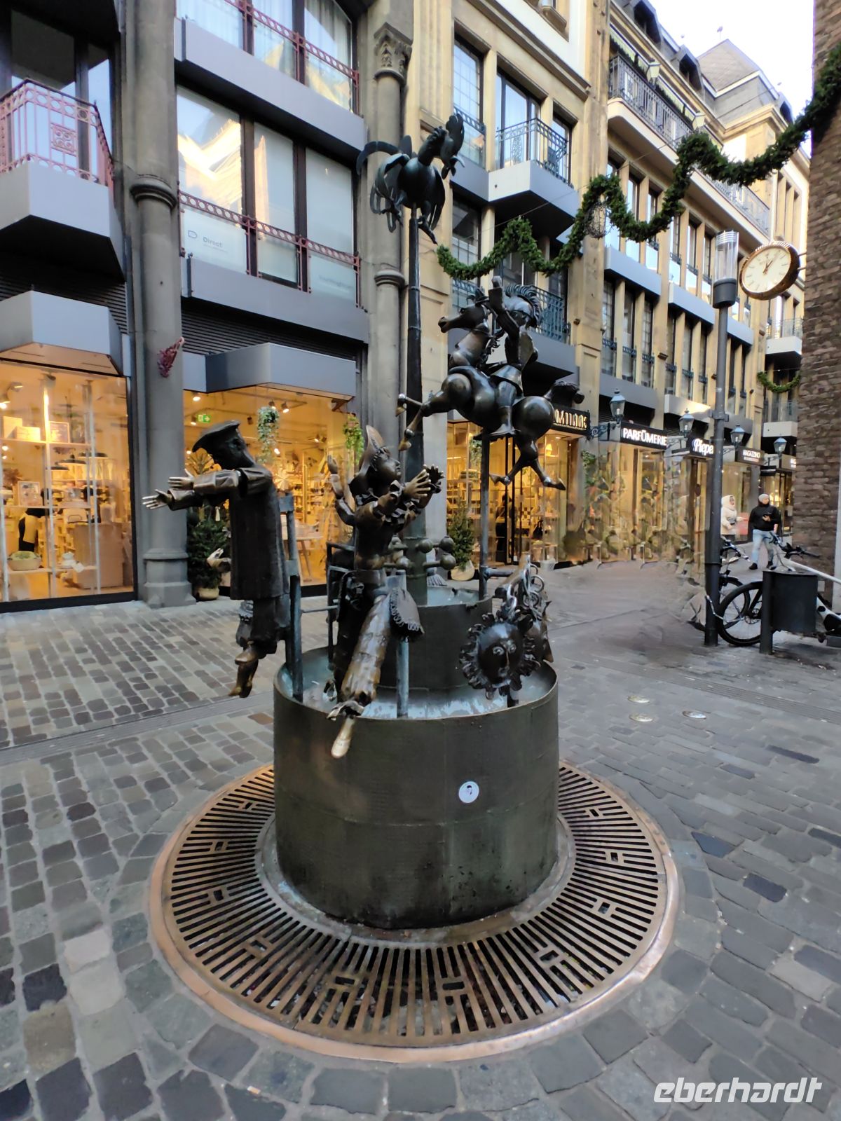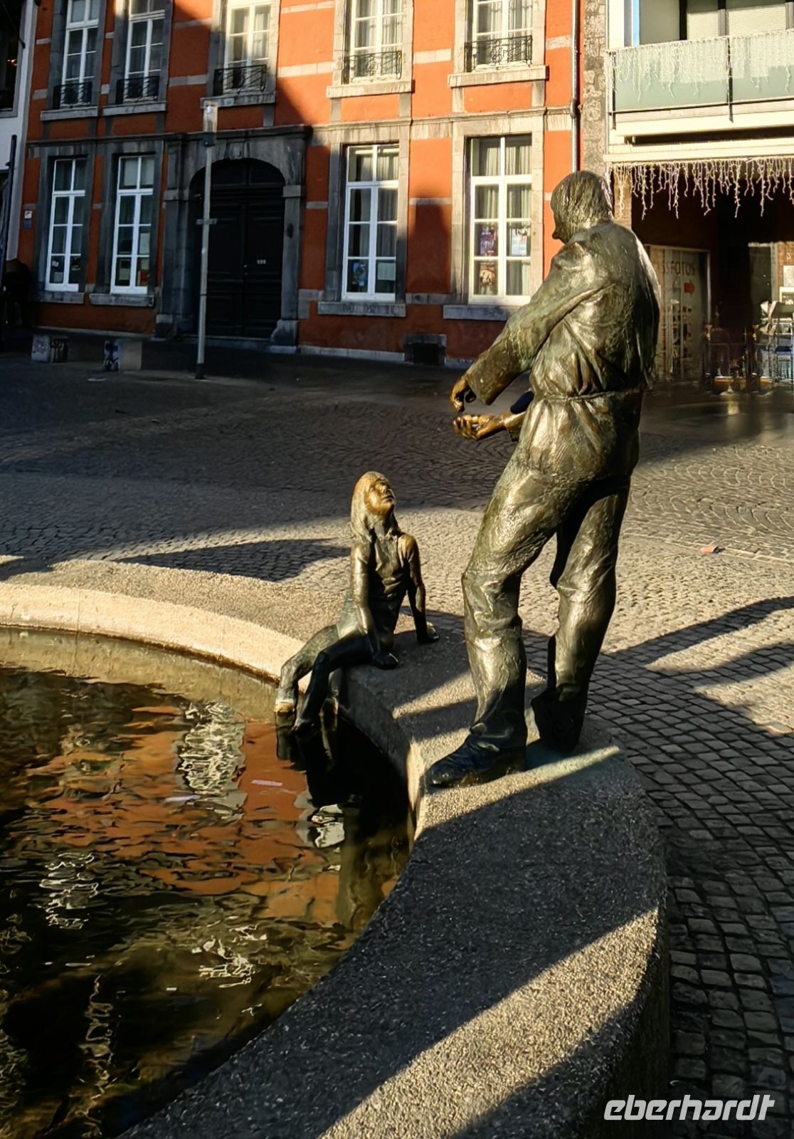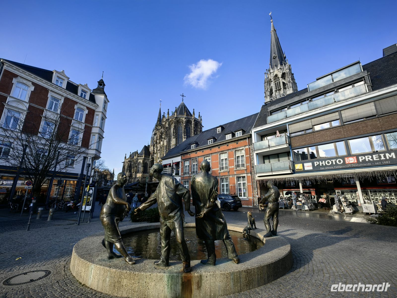 Am späten Vormittag teilen wir uns in zwei Gruppen auf und probieren zuerst ein wenig des schwefelhaltigen heißen Wassers am Elisenbrunnen, einem klassizistischen Bau, der im Jahr 1827 eröffnet wurde. Also drei Liter, wie die Ärzte empfehlen, würden wir davon nicht schaffen! Danach richten wir unsere Schritte gen Dom, machen eine Pause am "Kreislauf des Geldes"-Brunnens, schauen uns in der Sankt Folianskirche ein wenig um, werfen noch einen Blick auf das Rathaus von Aachen, welches auf den Mauern der einstigen Aula Regia Karls des Großen errichtet wurde und enden mit einem kurzen Besuch im Oktagon des imposanten Doms .