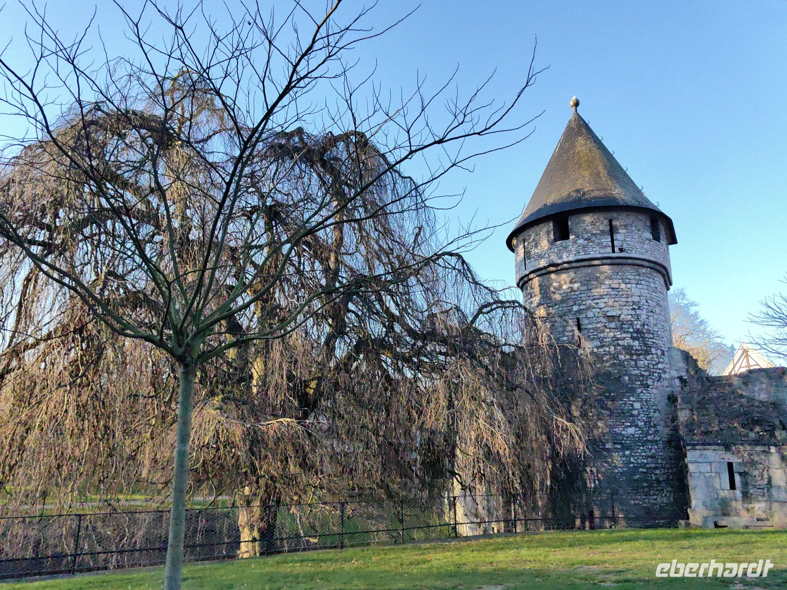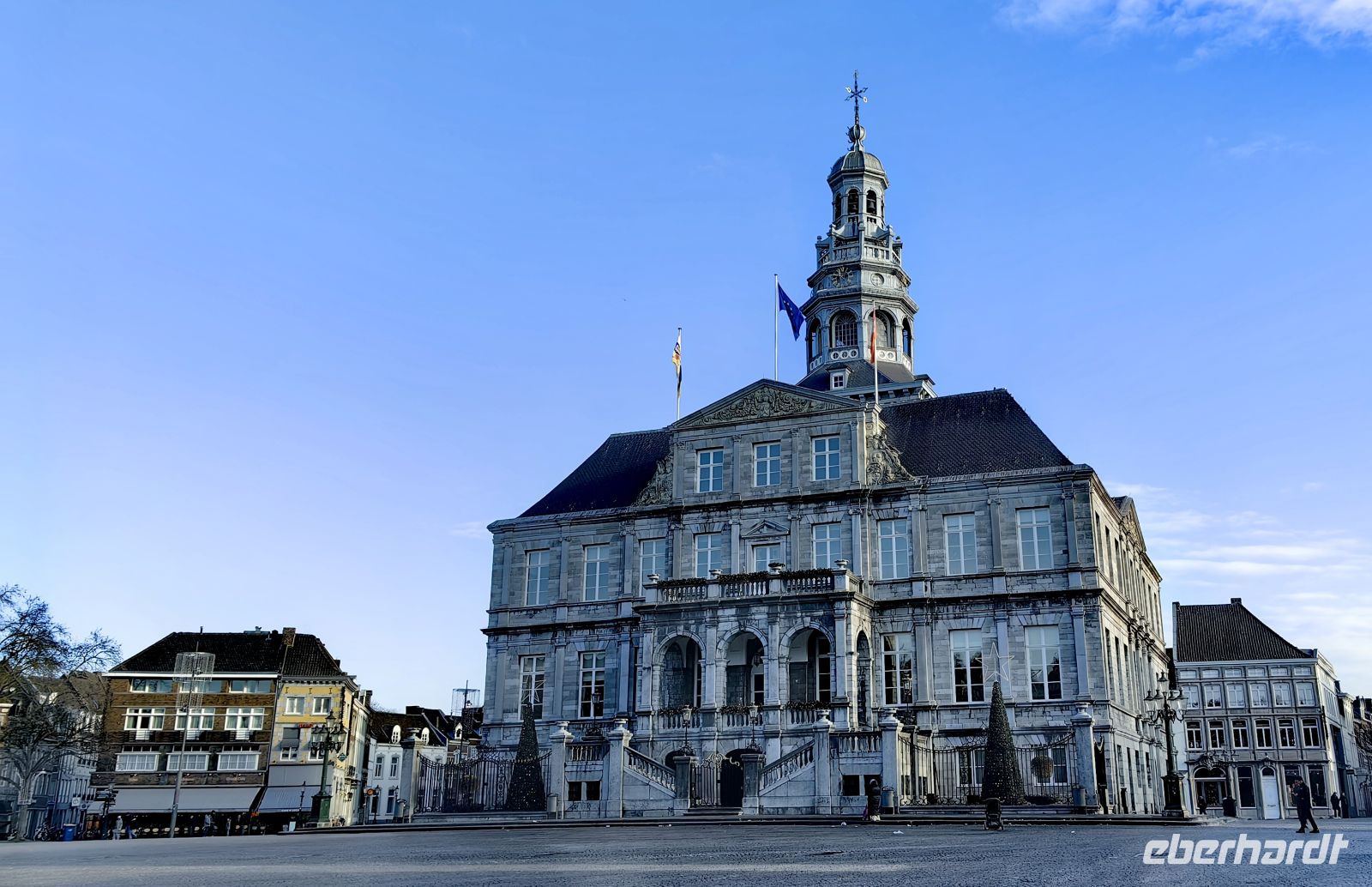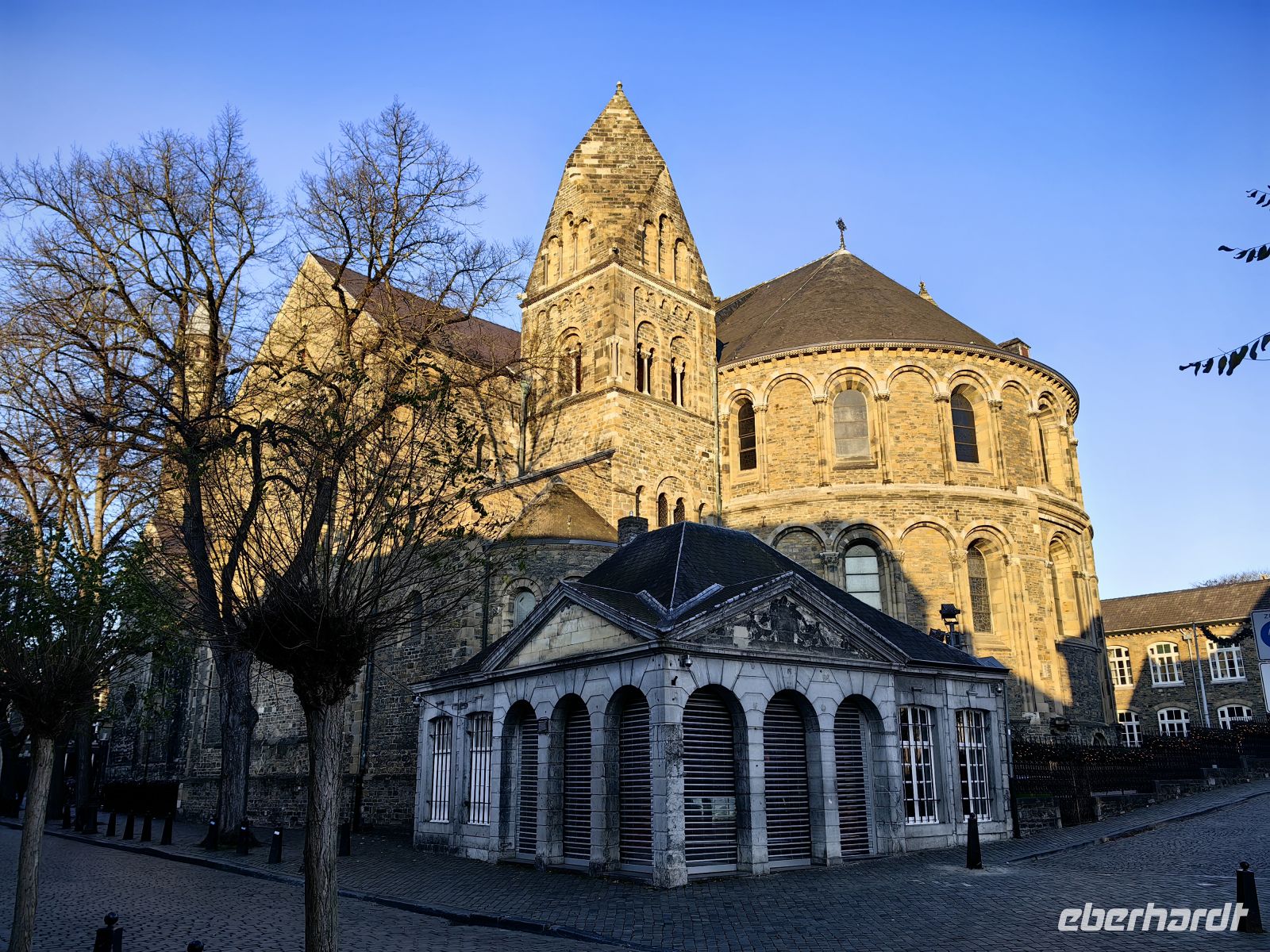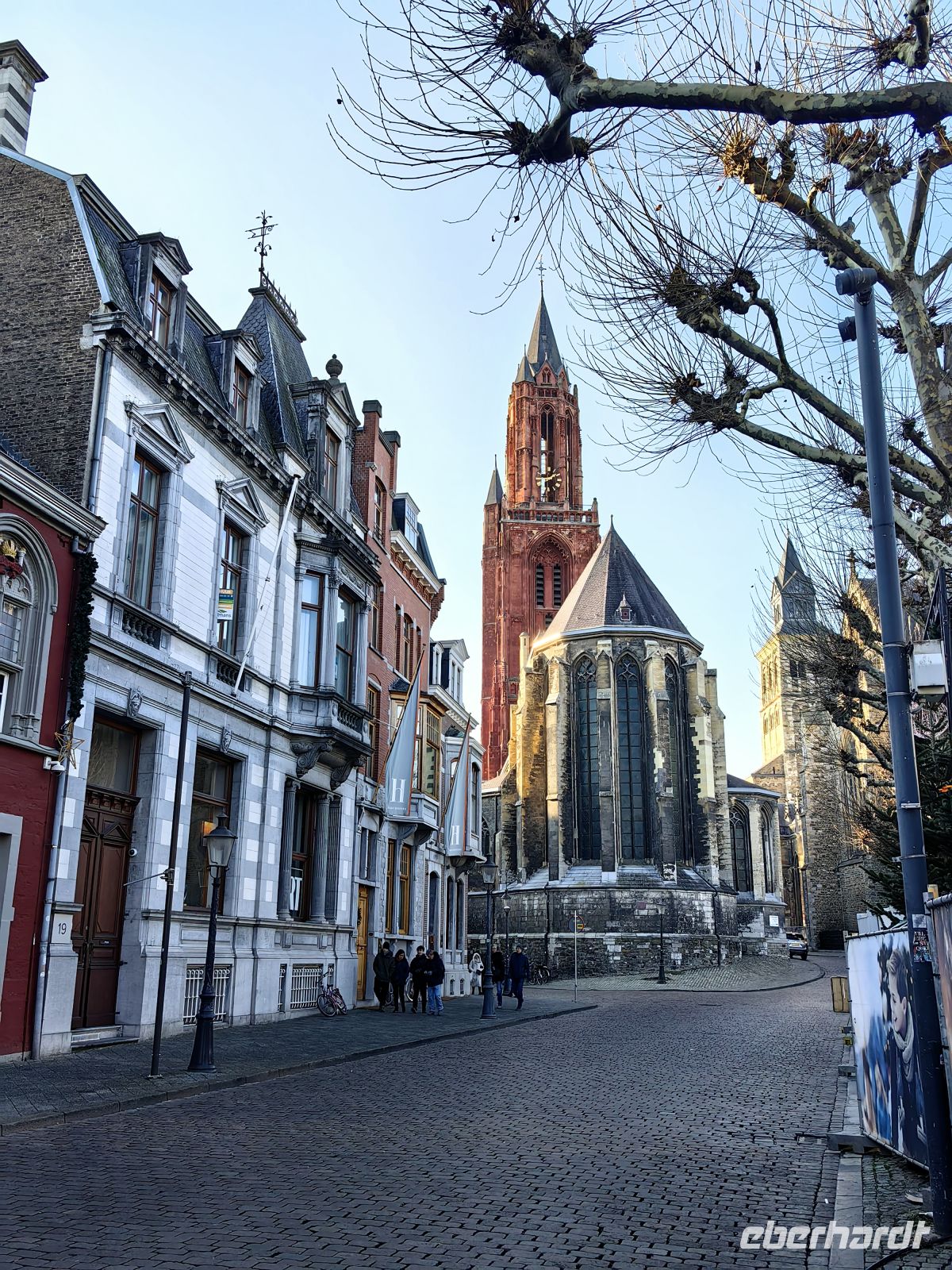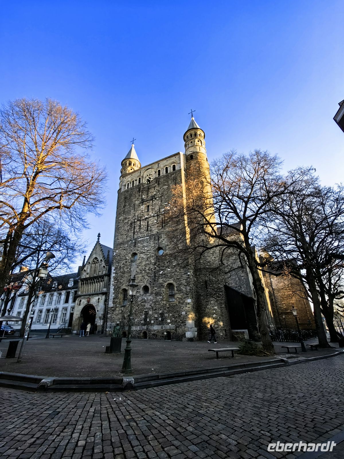 Bei strahlend blauem Himmel brechen wir am Morgen zu unserer Fahrt ins Nachbarland Niederlande auf. Maastricht an der Maas ist die Provinzhauptstadt von Limburg und eine der ältesten Städte der Niederlande überhaupt. Am vereinbarten Treffpunkt erwarten uns Kitty und Karen und wir erkunden zuerst die alten Stadtmauern, sehen einen Reiher am Stadttor Helpoort im Wasser stehen, dem offensichtlich nicht so kalt ist, wie uns und erfahren etwas über die römische Siedlung, die sich hier einst befand. Von den unglaublichen 50 vorhandenen Kirchen in der gerade 125.000 Einwohner zählenden Stadt schauen wir uns die Liebfrauenbasilika an und staunen, daß in einer der gotischen Kirchen heute eine Buchhandlung mit Café untergebracht ist, da sie als Kirche nicht mehr benutzt wurde. Unsere Nachbarn sind Meister im Umfunktionieren und dachten, bevor sie sie abreißen, lieber kreativ werden. Leider können wir nur durch die Eingangsscheiben schauen, denn auch unsere Nachbarn haben heute einen Feiertag, den sie gern im Kreise ihrer Familie verbringen und nahezu alle Geschäfte sind geschlossen.