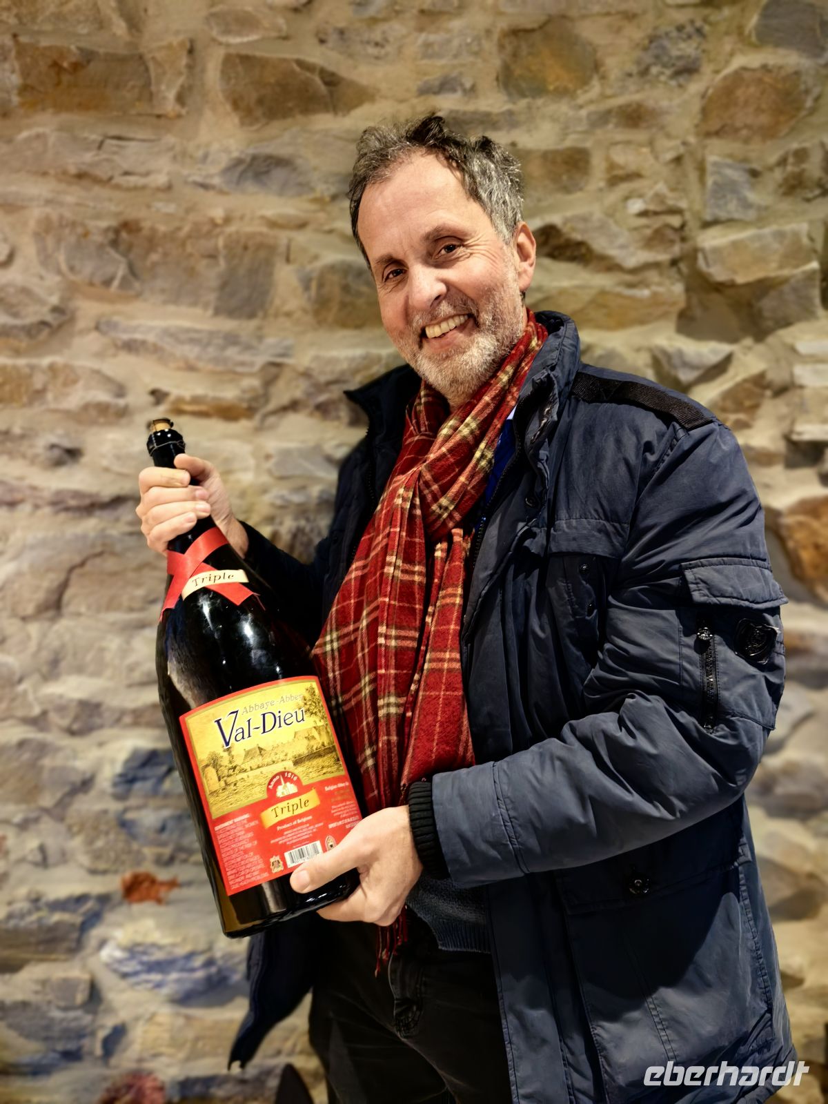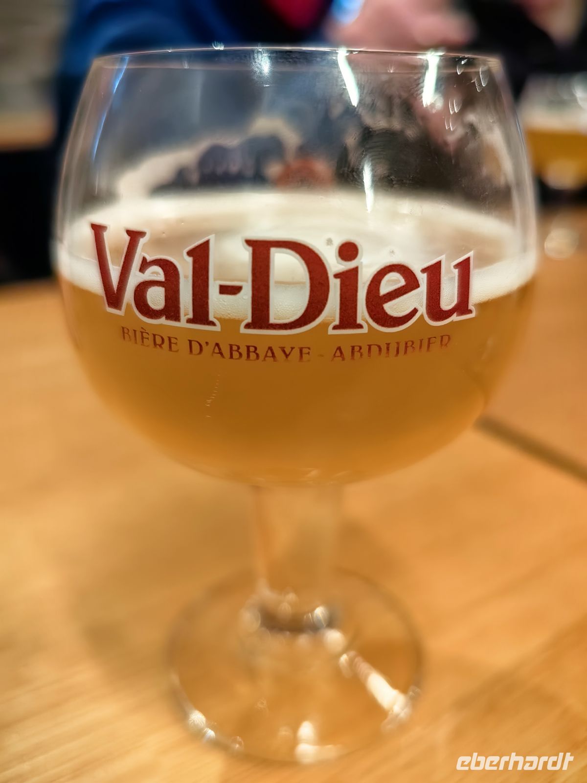 Die Mönche kamen bereits im 12. Jahrhundert in das nahe gelegene Hochstift Lüttich, ein Tochterkloster des berühmten Kloster Eberbach, wo die bekannte Verfilmung Umberto Ecos "Der Name der Rose" gedreht wurde. Um 1216 herum begann man dann mit dem Bau der Abtei in Val Dieu nach einer großzügigen Schenkung. In den wirren Zeiten der Geschichte mußten die Mönche immer wieder fliehen, das Kloster wurde mal von niederländischen Truppen in Brand gesetzt, 1796 dann säkularisiert. Erst 1804 gelang es dem letzten Konventualen der alten Abtei Bernhard Klinkenberg, die Gebäude wieder zu erwerben und dadurch siedelten sich 1844 wieder Zisterzienser hier an. Während des Zweiten Weltkrieges versteckten einige Mönche sogar Juden, was allesamt mit ihrem Leben bezahlten, die Juden und die Mönche. Bis 2001 wurde das Kloster bewohnt und kurz vor dem Renteneintritt des letzten Mönchs ersann man ein Konzept, mit welchem die Gebäude erhalten bleiben könnten. Man kam auf eine recht ungewöhnliche Idee - Bier. Es wurde von den Mönchen bereits seit dem Mittelalter gebraut, allerdings für den Eigengebrauch. Gesagt - getan - Konzept fertig - man erweiterte die Räumlichkeiten und im Klostervorhof befindet sich heute eine kleine Privatbrauerei, in der seit 1997 mehrere obergärige Abteibiere gebraut werden, die uns ganz hervorragend schmecken.