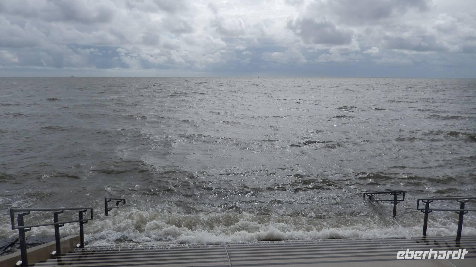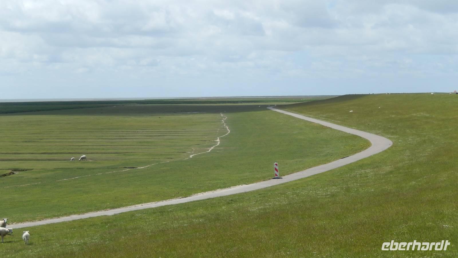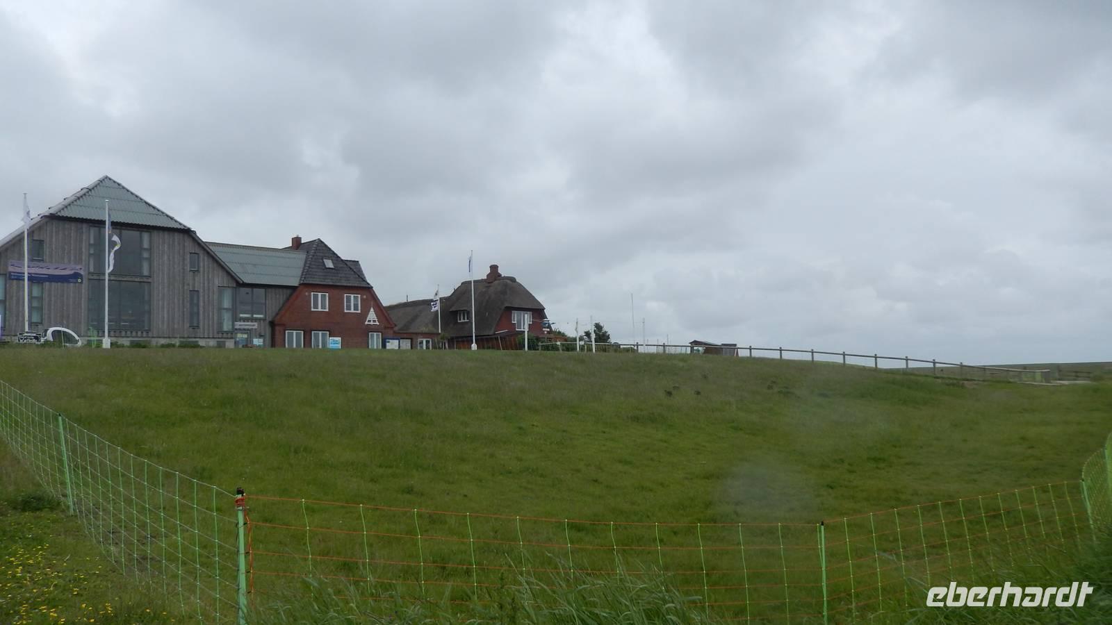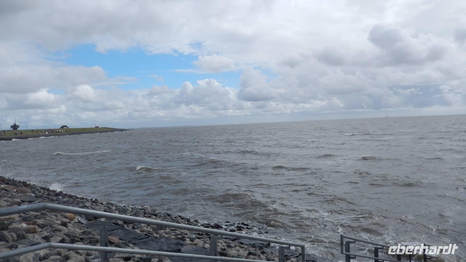 Als nächstes besuchten wir St. Peter Ording. Leider stürmte es auch diesmal stark. Dennoch trauten wir uns über die Seebrücke, bis an den Strand. Der lange Sandstrand läd sonst zum baden ein. Aber bei 12° war keinem danach. Nach einer Mittagspause setzten wir unsere Fahrt fort. Mehrmals hielten wir für kurze Fotostopps und blickten über den Deich.
