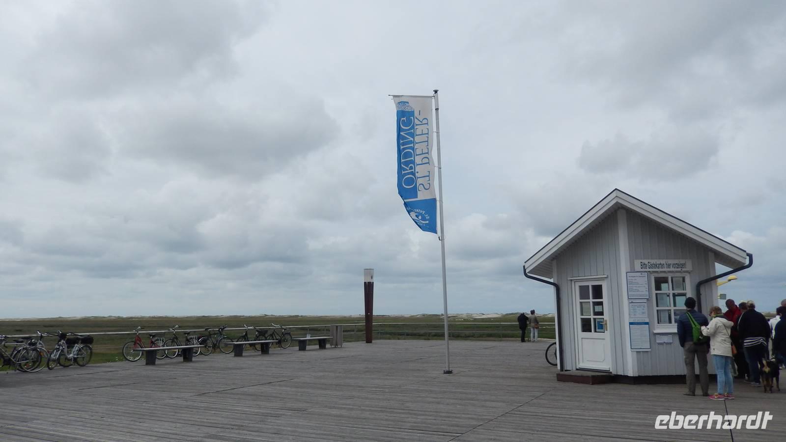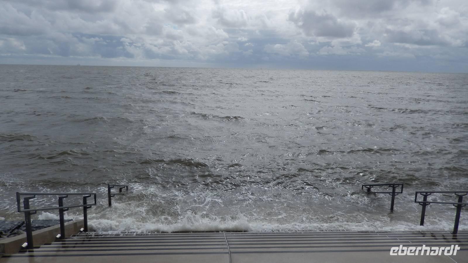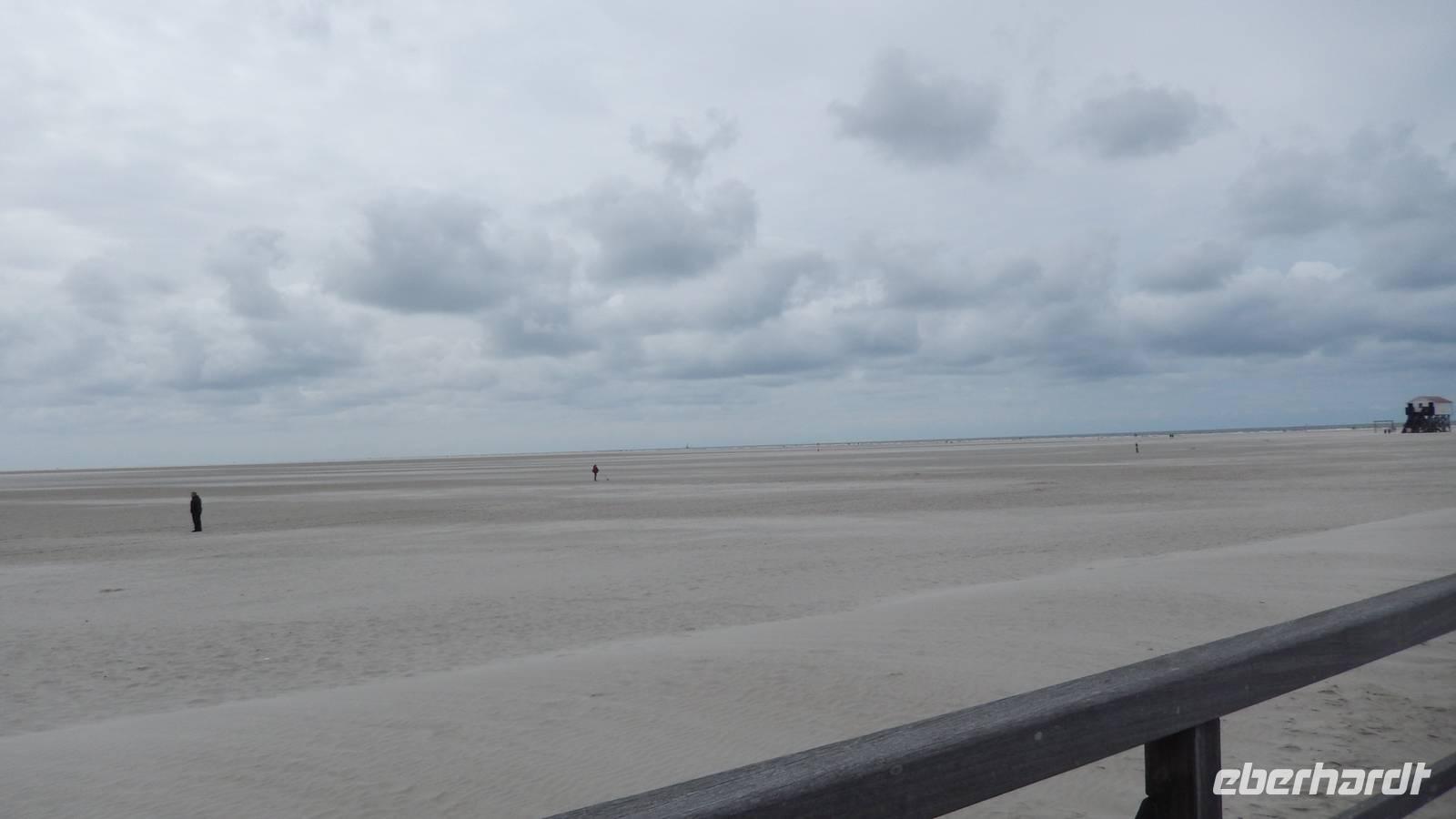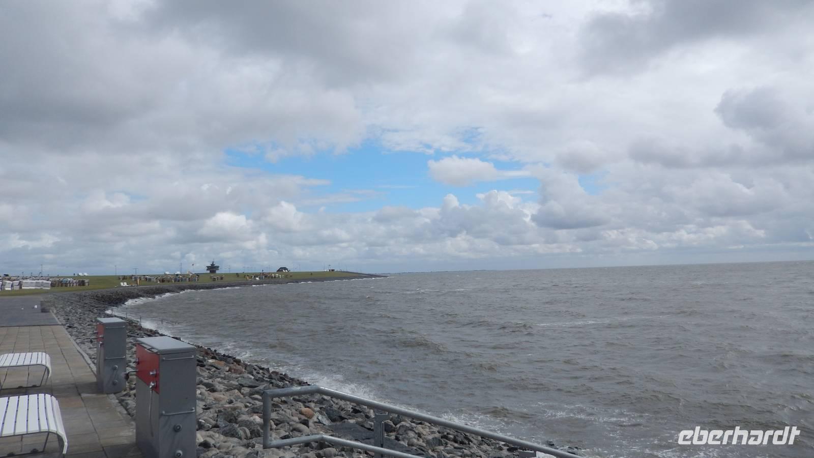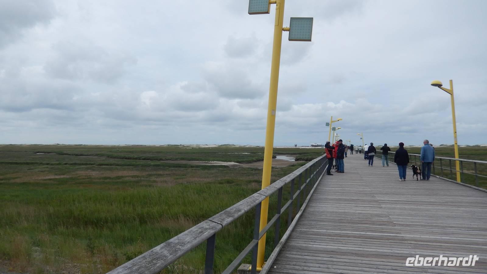 Als nächstes besuchten wir St. Peter Ording. Leider stürmte es auch diesmal stark. Dennoch trauten wir uns über die Seebrücke, bis an den Strand. Der lange Sandstrand läd sonst zum baden ein. Aber bei 12° war keinem danach. Nach einer Mittagspause setzten wir unsere Fahrt fort. Mehrmals hielten wir für kurze Fotostopps und blickten über den Deich.