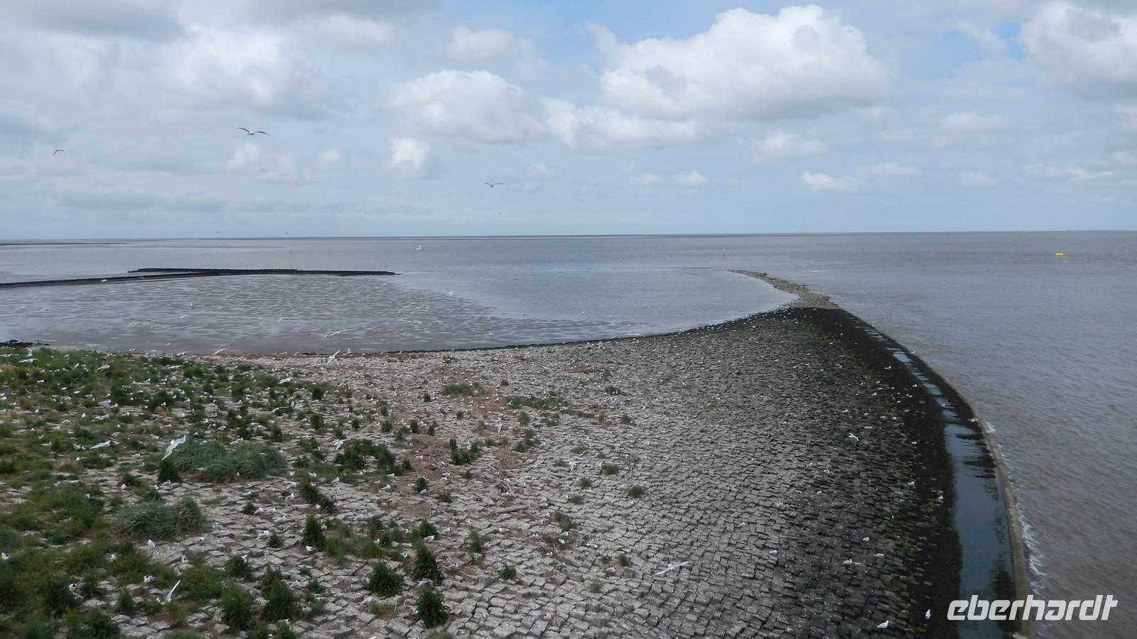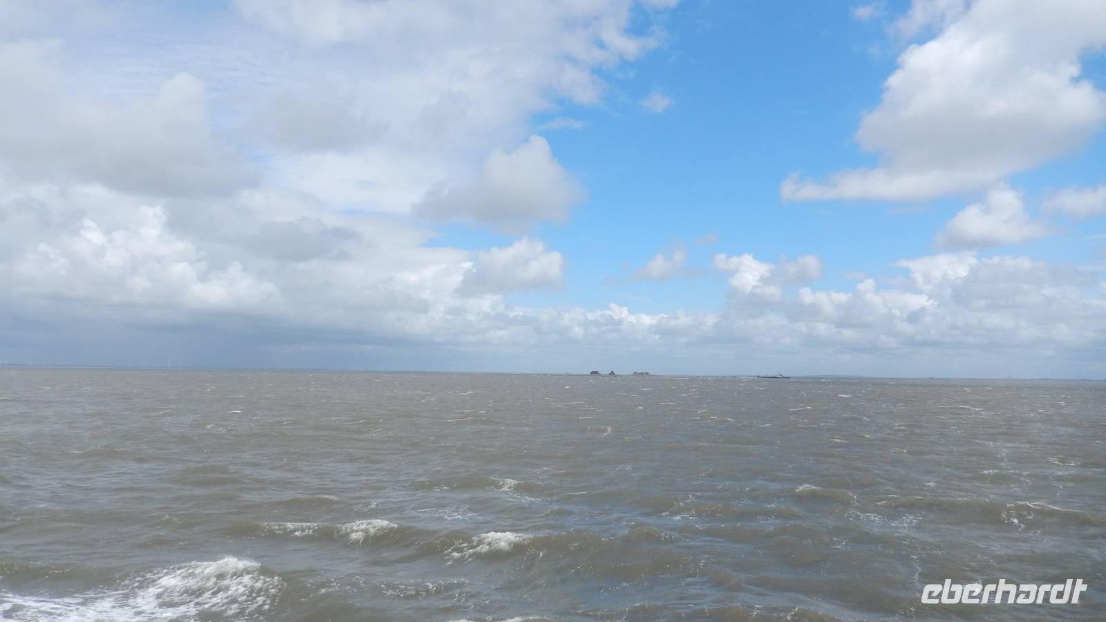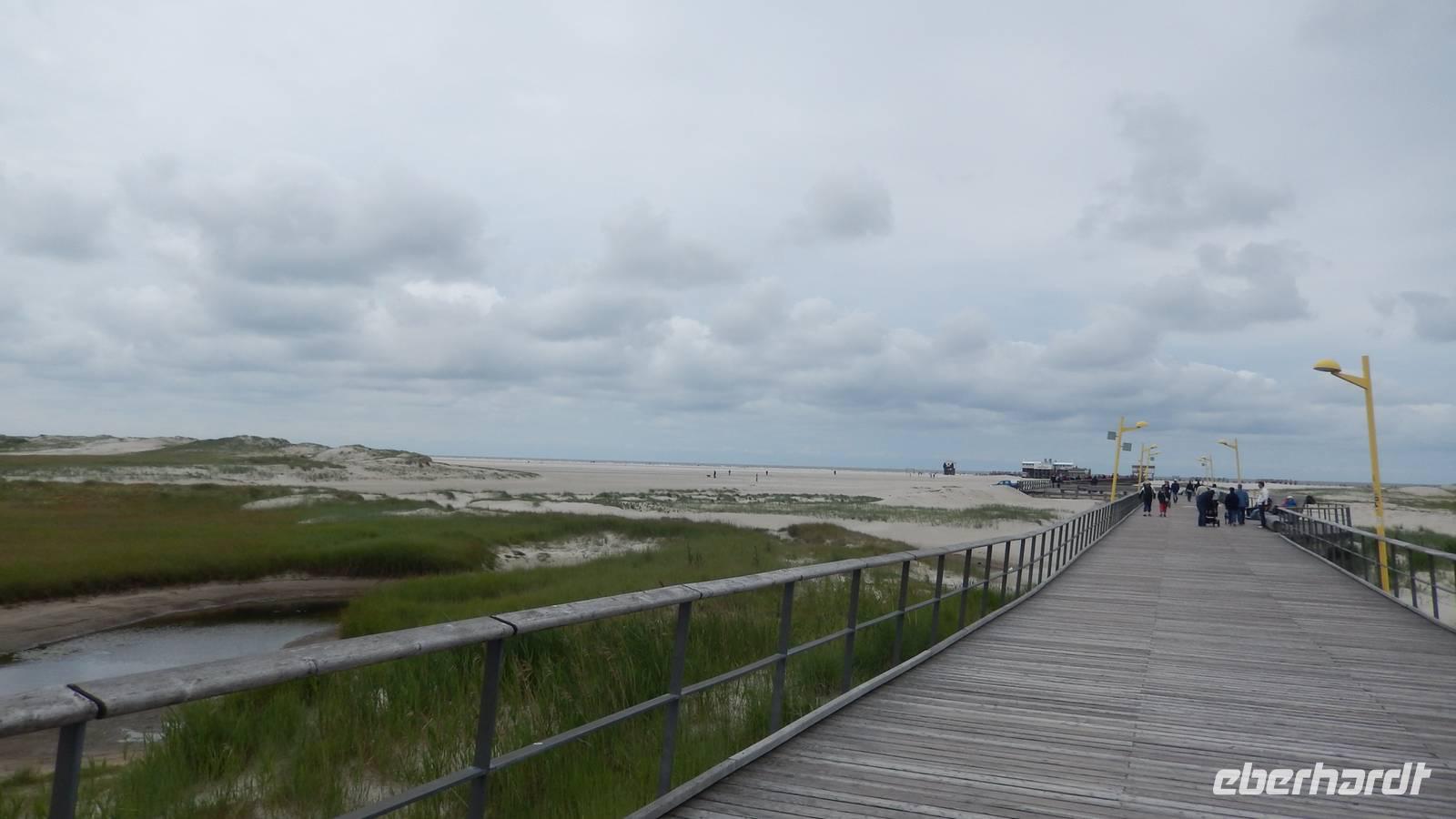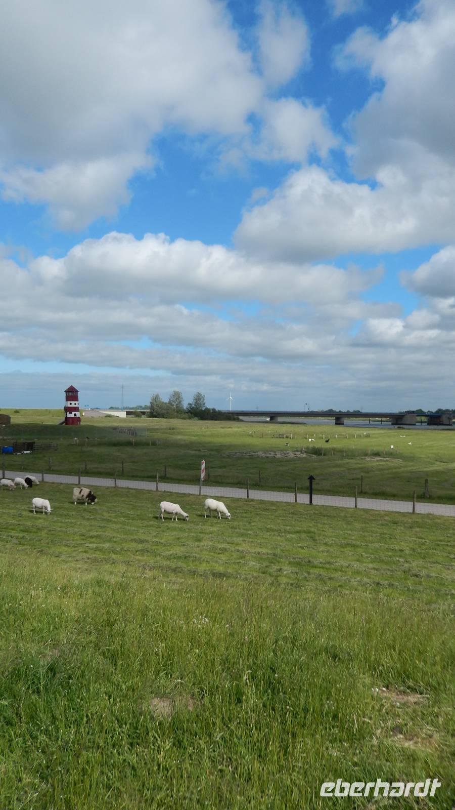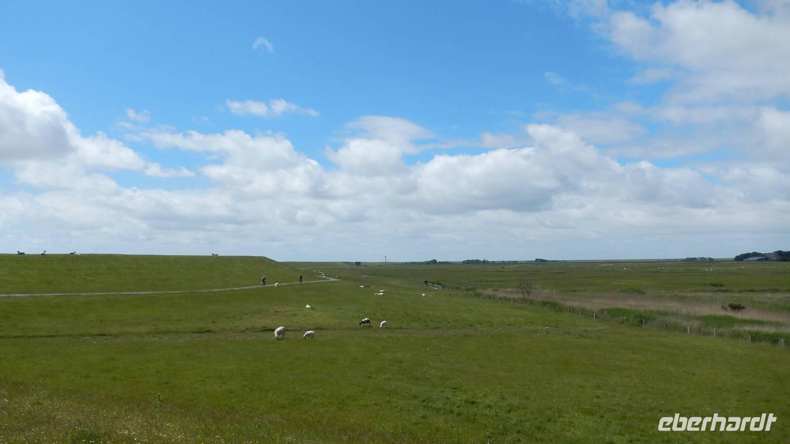 Als nächstes besuchten wir St. Peter Ording. Leider stürmte es auch diesmal stark. Dennoch trauten wir uns über die Seebrücke, bis an den Strand. Der lange Sandstrand läd sonst zum baden ein. Aber bei 12° war keinem danach. Nach einer Mittagspause setzten wir unsere Fahrt fort. Mehrmals hielten wir für kurze Fotostopps und blickten über den Deich.