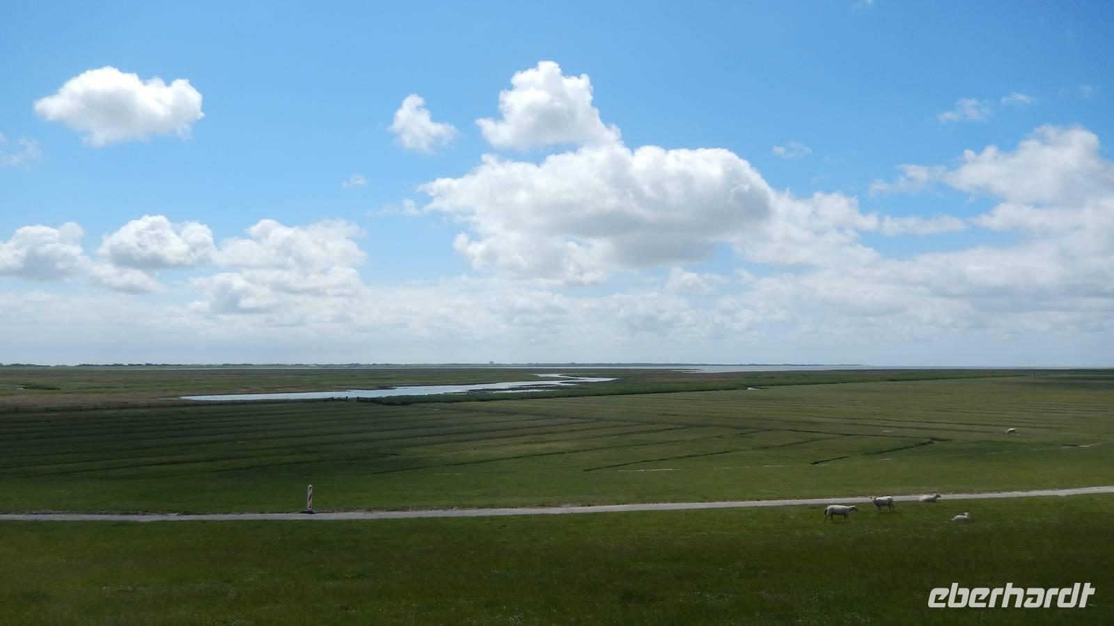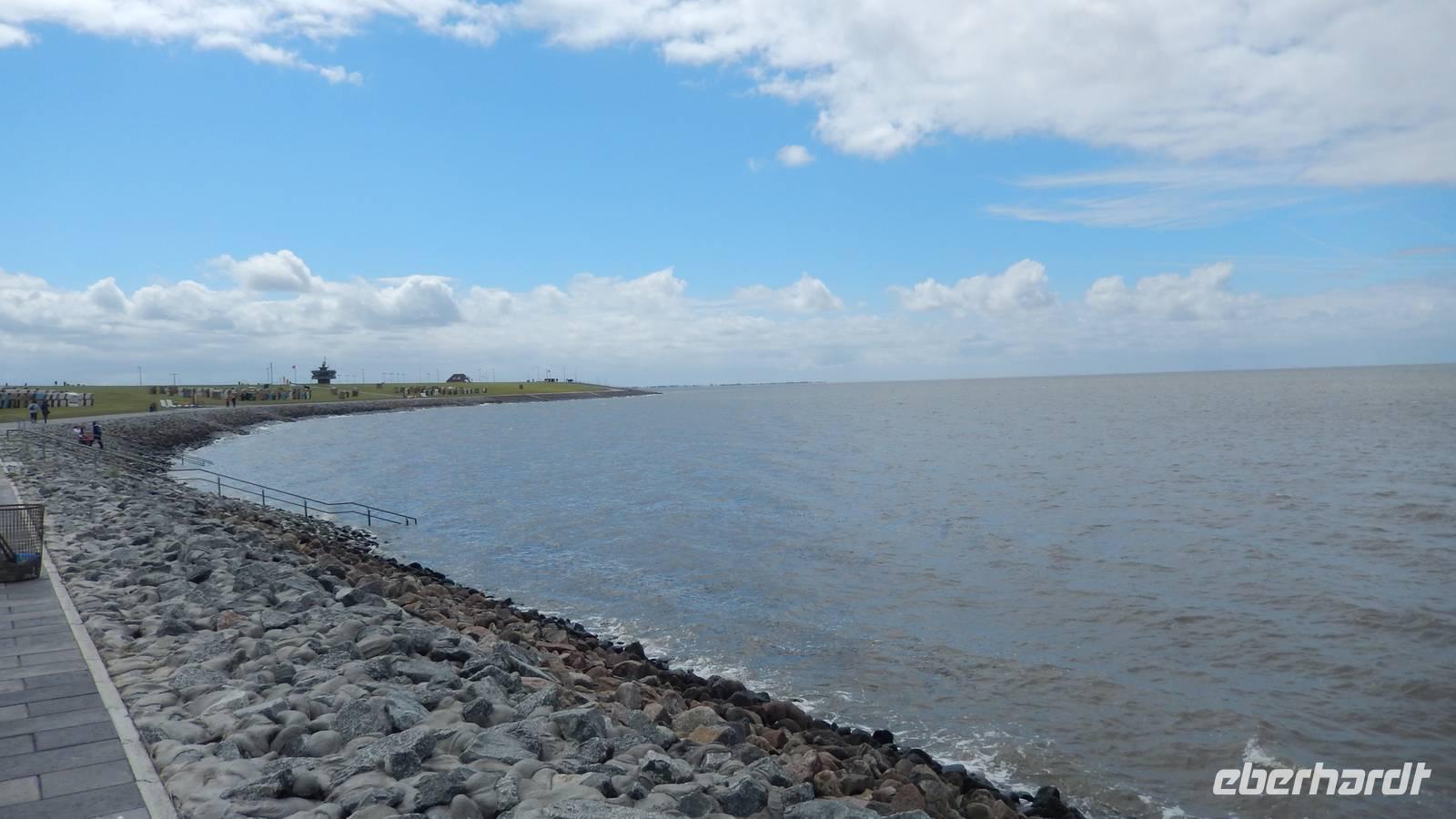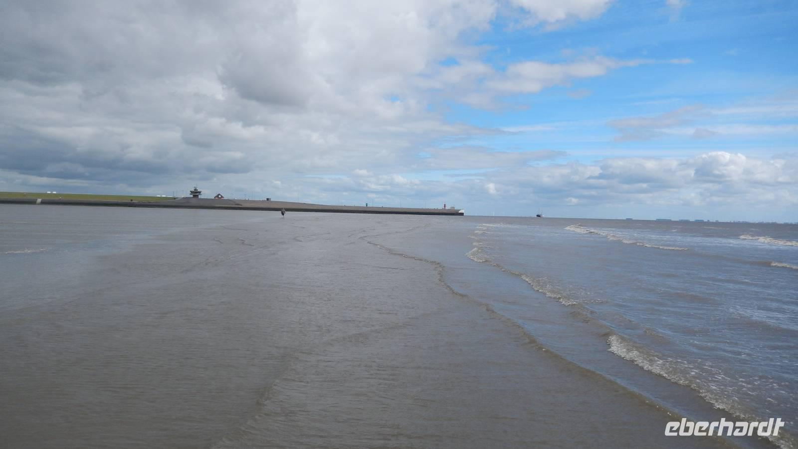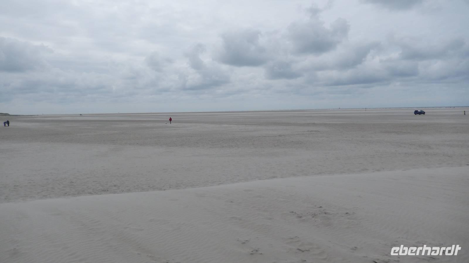 Als nächstes besuchten wir St. Peter Ording. Leider stürmte es auch diesmal stark. Dennoch trauten wir uns über die Seebrücke, bis an den Strand. Der lange Sandstrand läd sonst zum baden ein. Aber bei 12° war keinem danach. Nach einer Mittagspause setzten wir unsere Fahrt fort. Mehrmals hielten wir für kurze Fotostopps und blickten über den Deich.