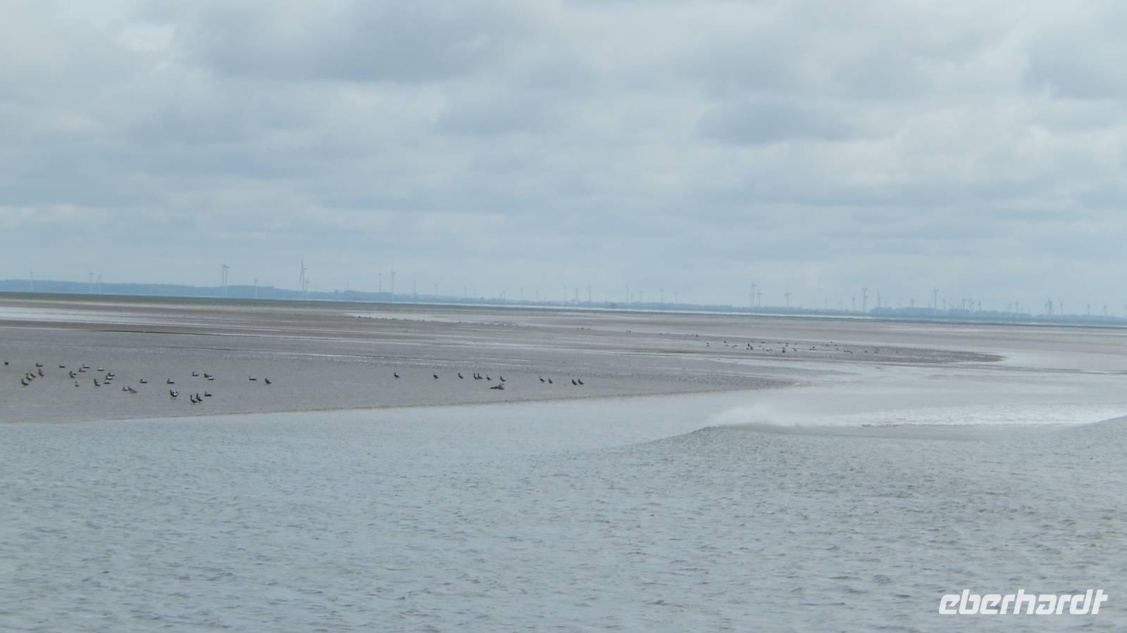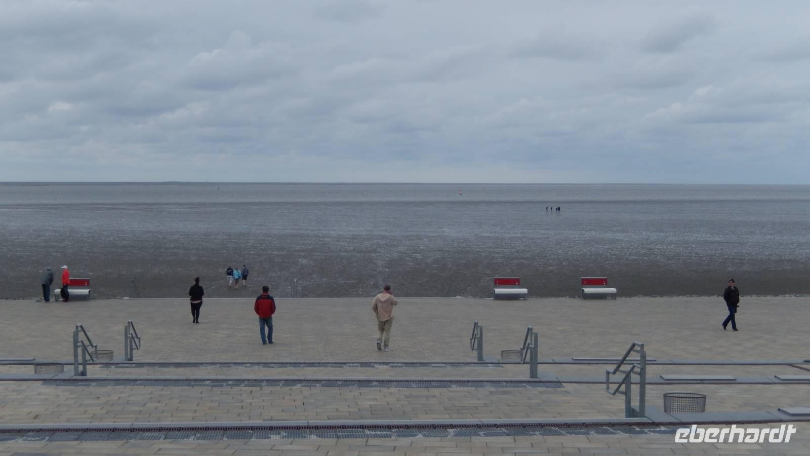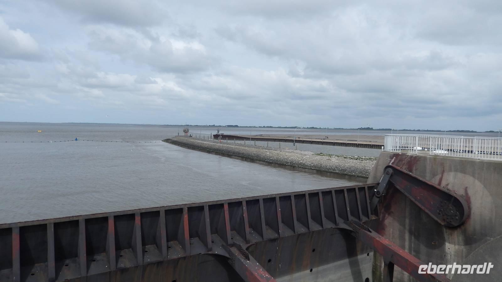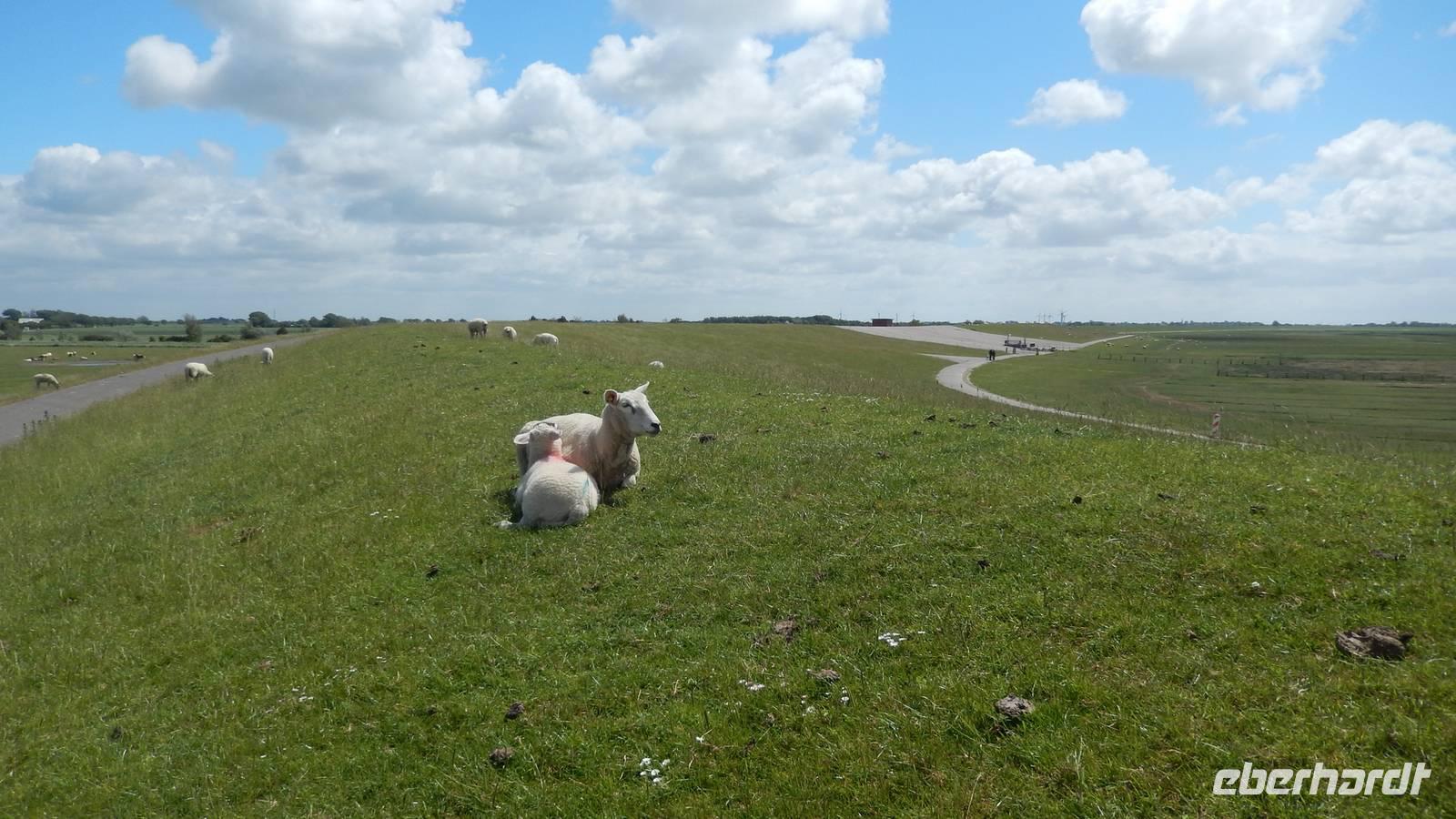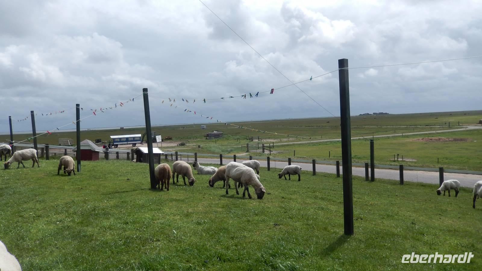 Als nächstes besuchten wir St. Peter Ording. Leider stürmte es auch diesmal stark. Dennoch trauten wir uns über die Seebrücke, bis an den Strand. Der lange Sandstrand läd sonst zum baden ein. Aber bei 12° war keinem danach. Nach einer Mittagspause setzten wir unsere Fahrt fort. Mehrmals hielten wir für kurze Fotostopps und blickten über den Deich.
