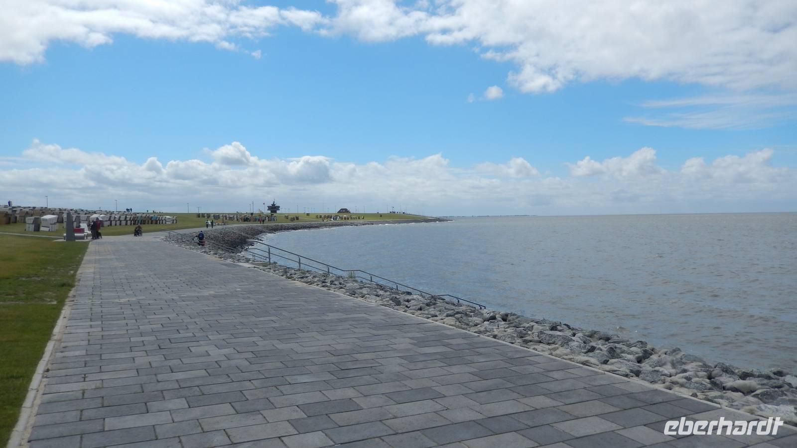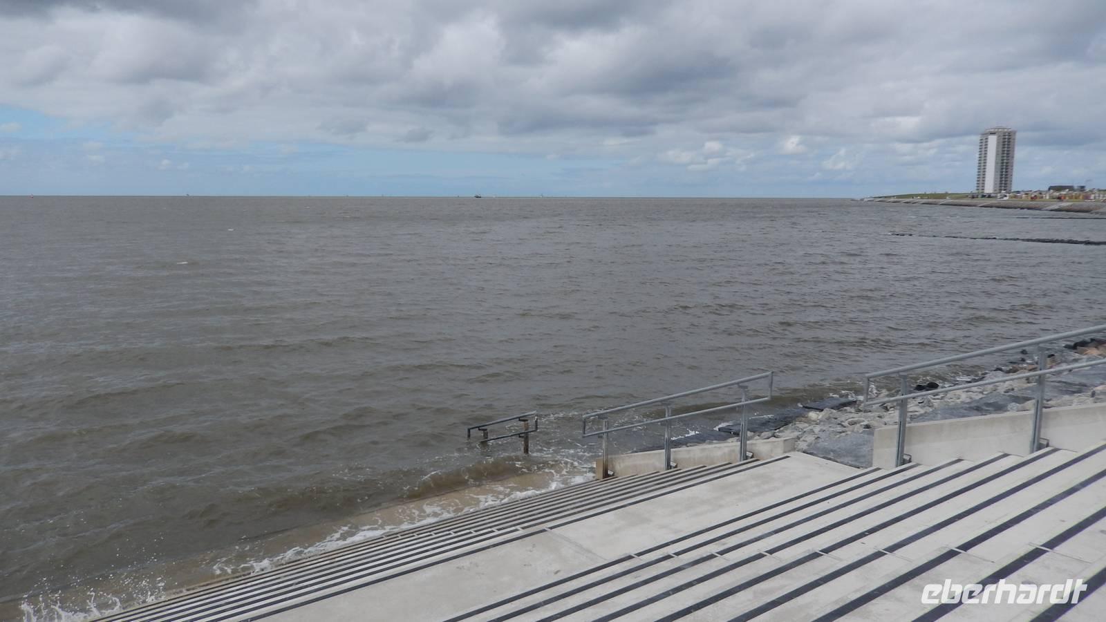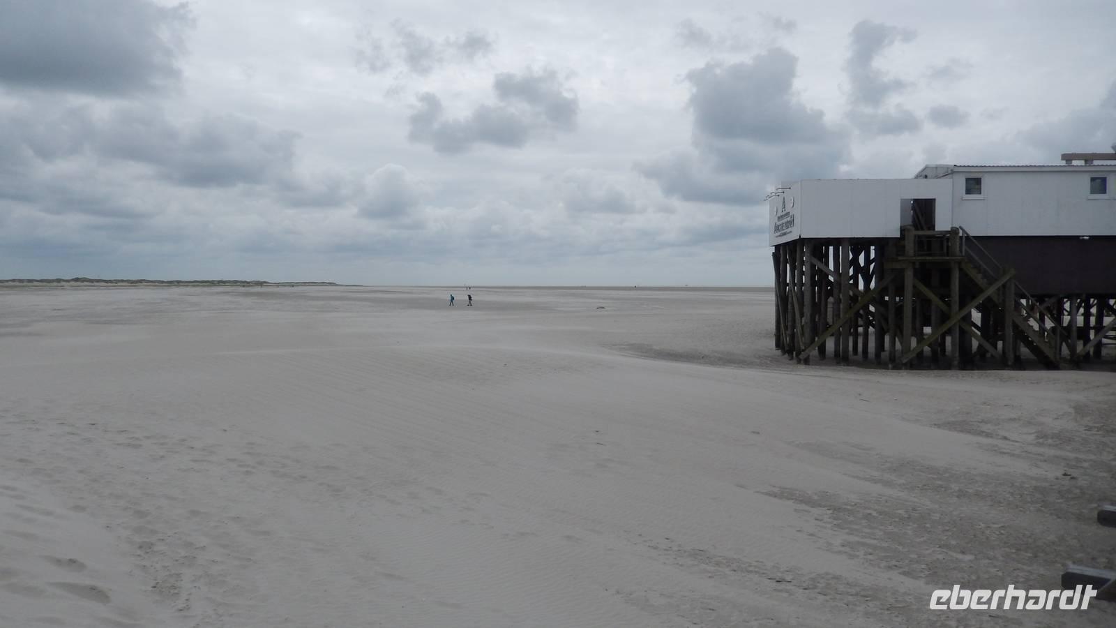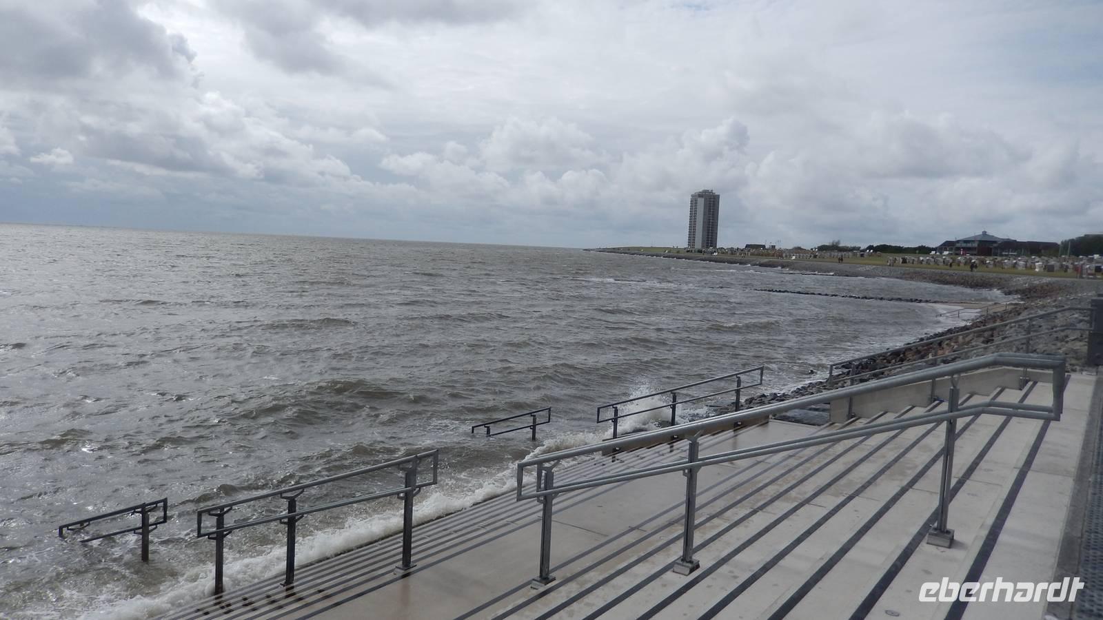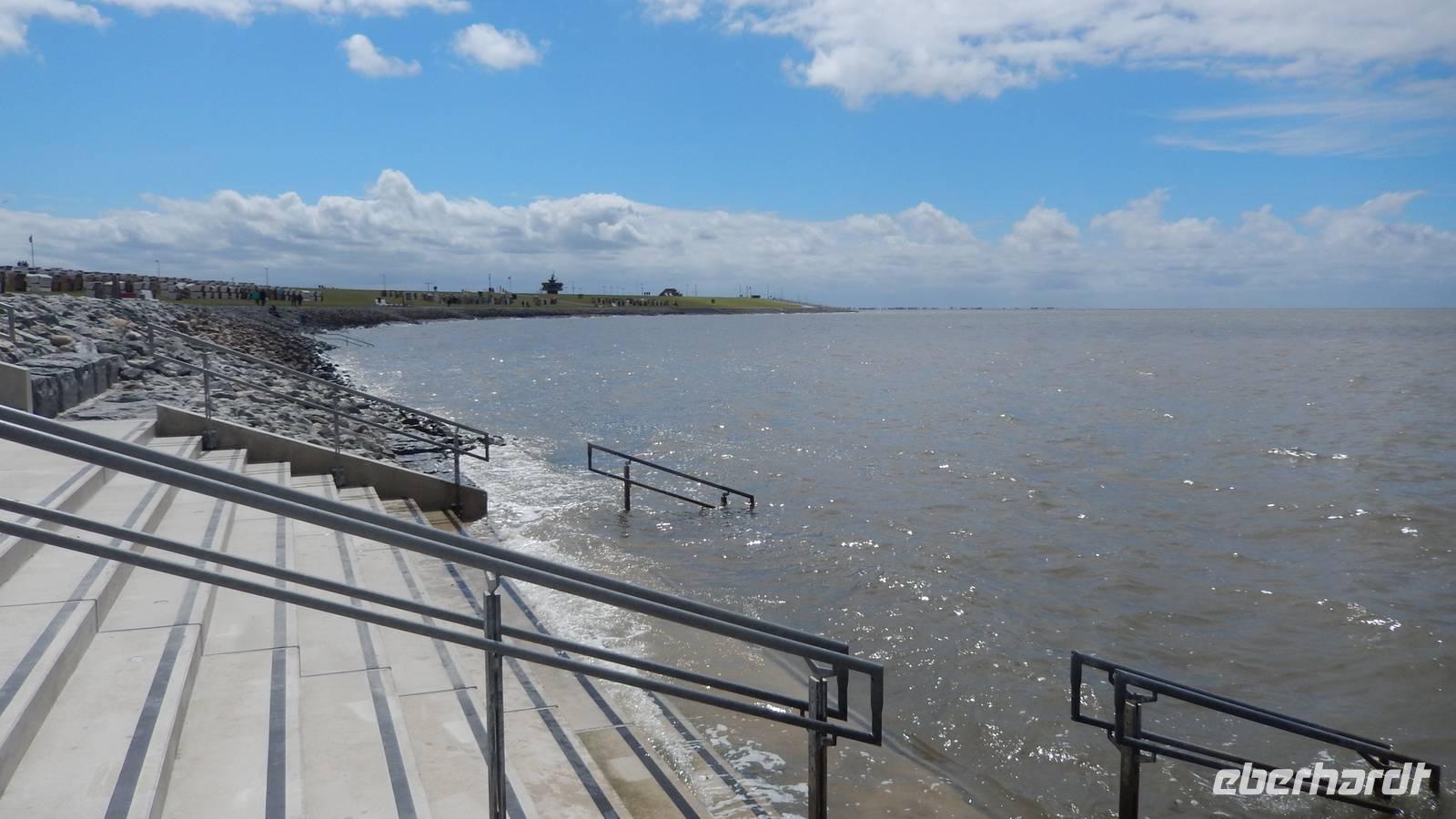 Als nächstes besuchten wir St. Peter Ording. Leider stürmte es auch diesmal stark. Dennoch trauten wir uns über die Seebrücke, bis an den Strand. Der lange Sandstrand läd sonst zum baden ein. Aber bei 12° war keinem danach. Nach einer Mittagspause setzten wir unsere Fahrt fort. Mehrmals hielten wir für kurze Fotostopps und blickten über den Deich.