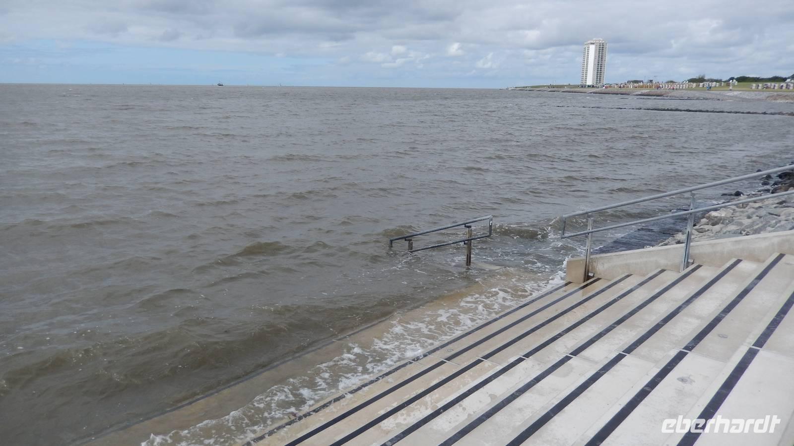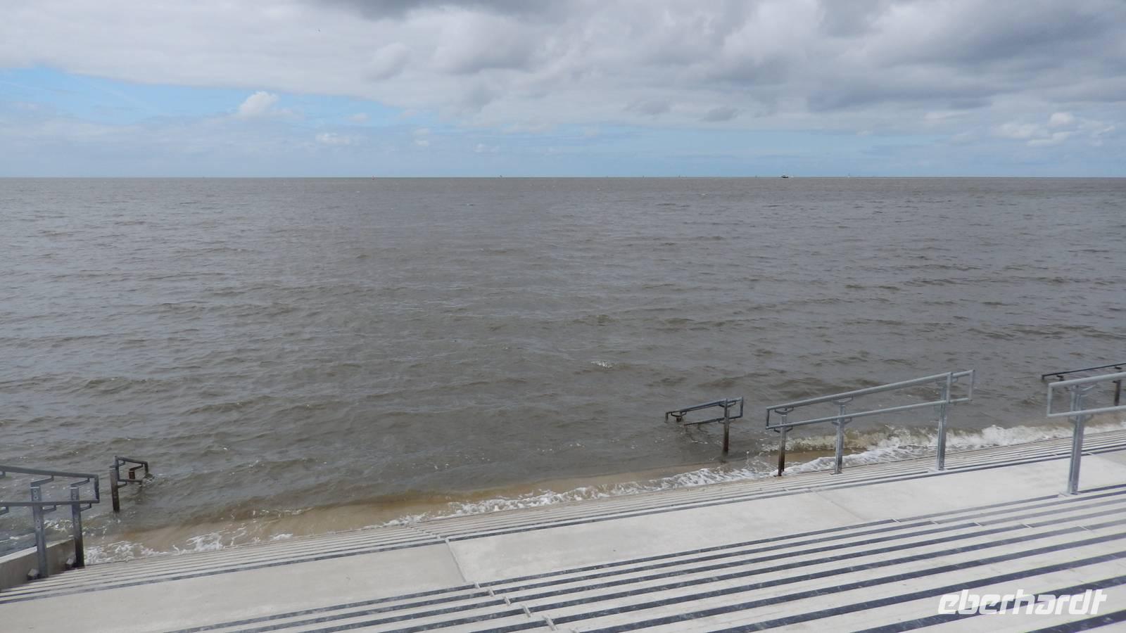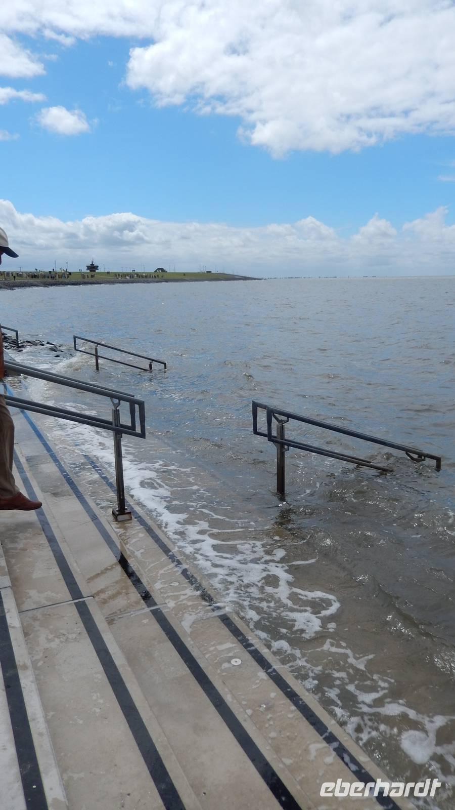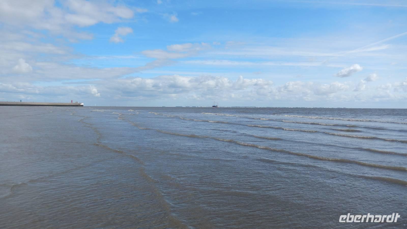 Als nächstes besuchten wir St. Peter Ording. Leider stürmte es auch diesmal stark. Dennoch trauten wir uns über die Seebrücke, bis an den Strand. Der lange Sandstrand läd sonst zum baden ein. Aber bei 12° war keinem danach. Nach einer Mittagspause setzten wir unsere Fahrt fort. Mehrmals hielten wir für kurze Fotostopps und blickten über den Deich.