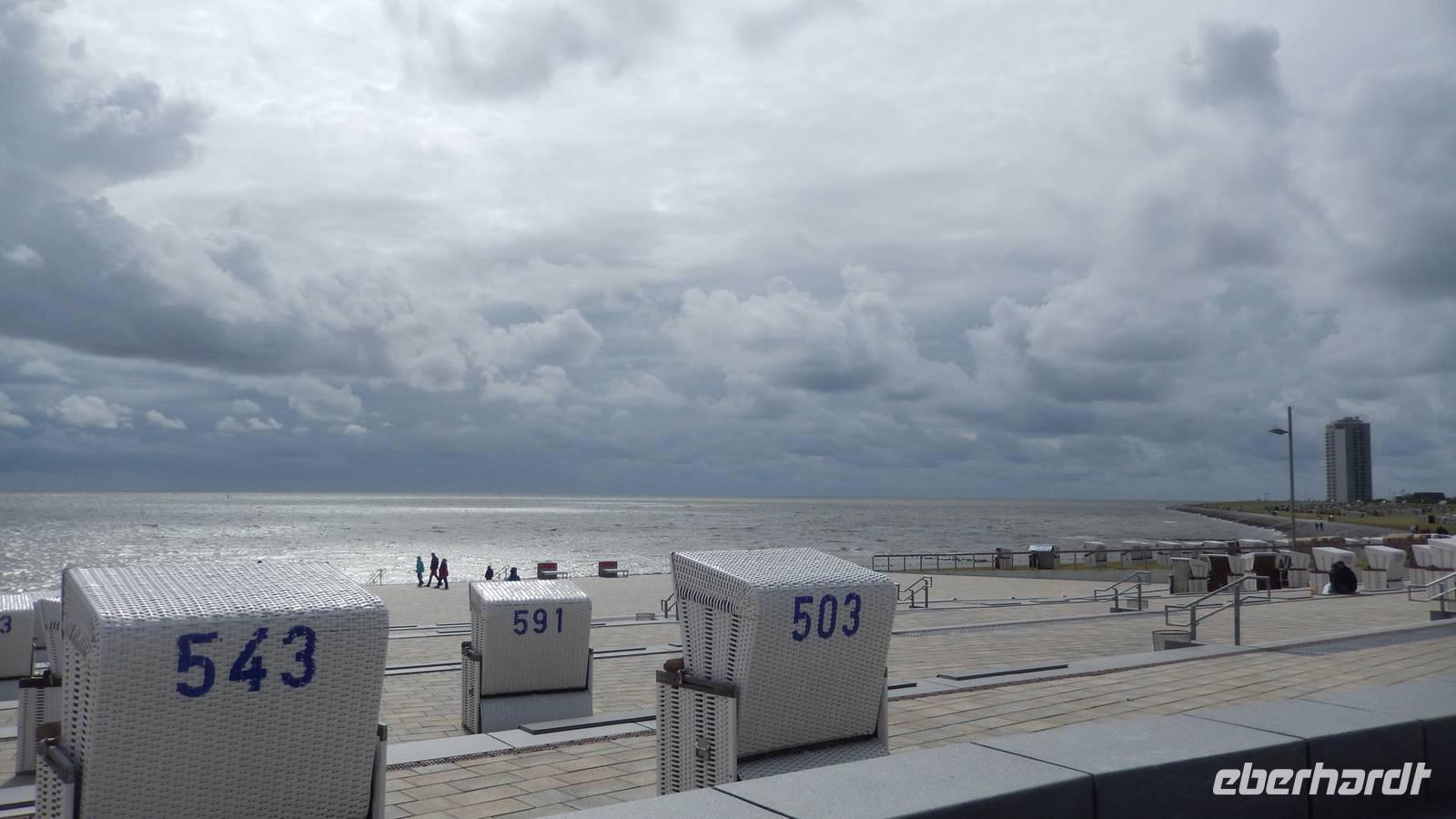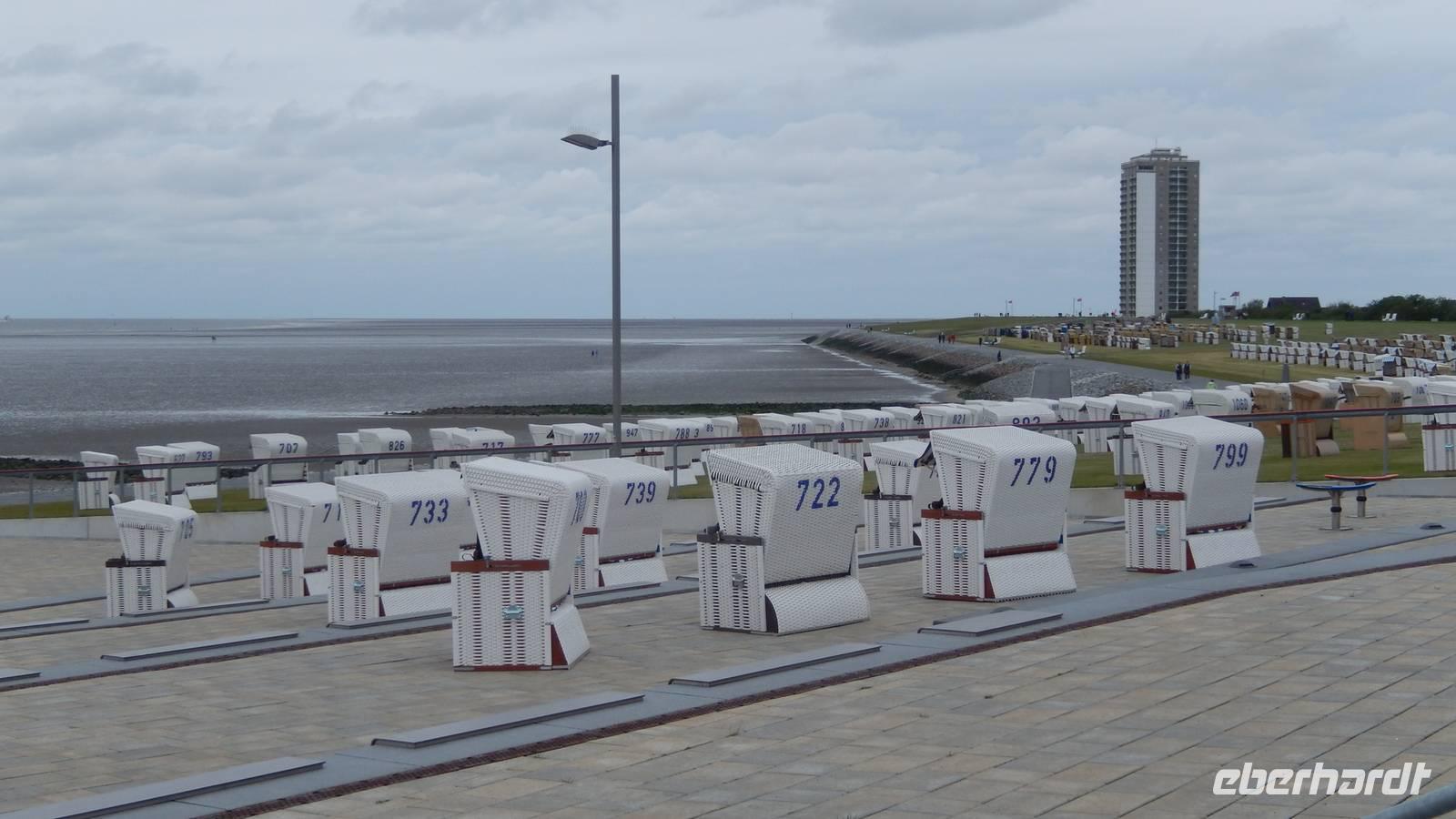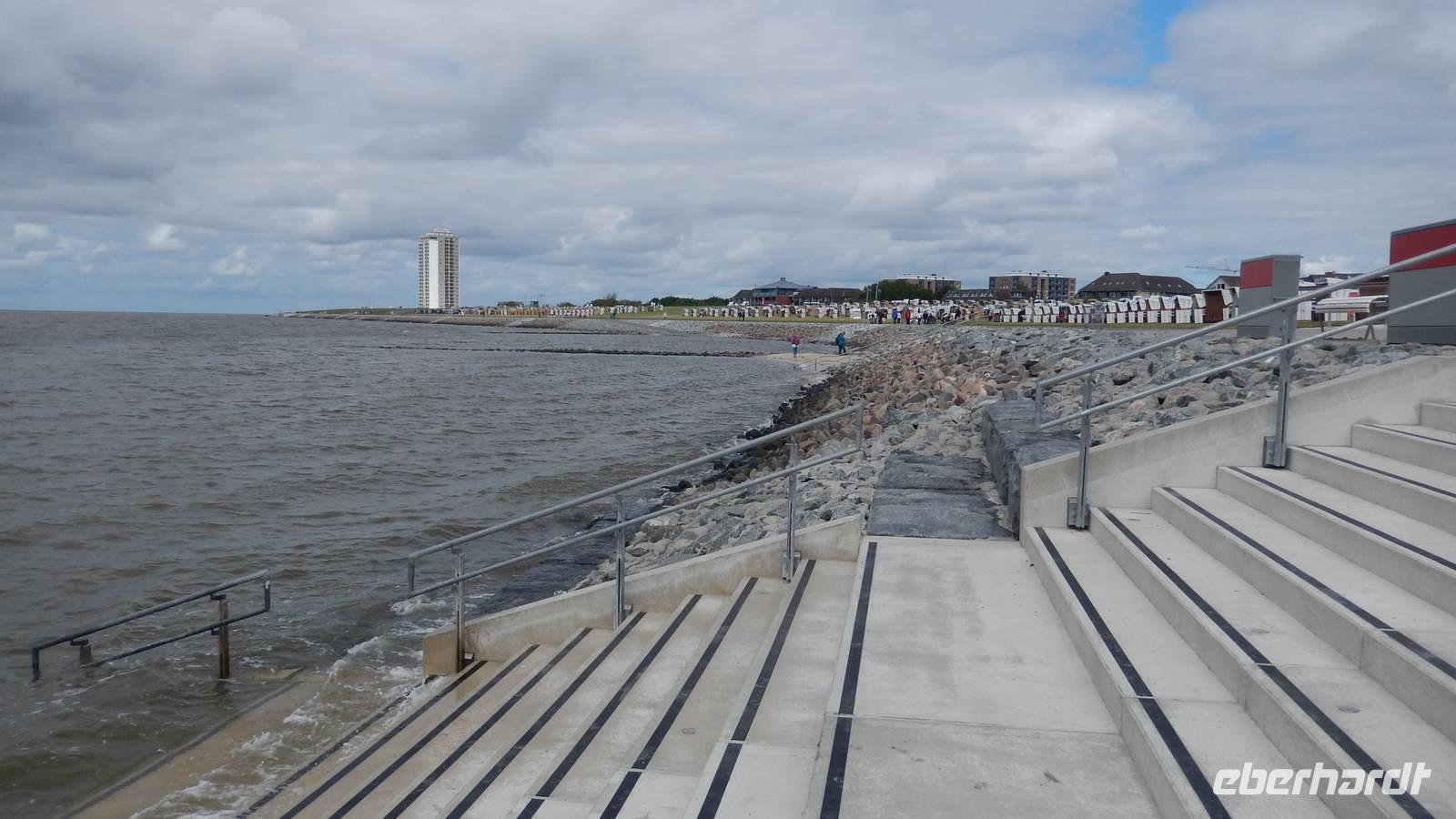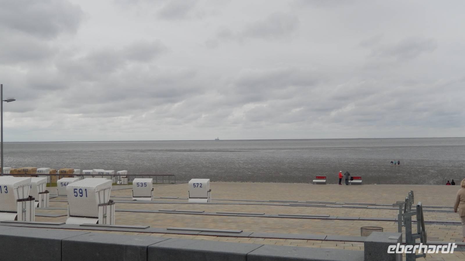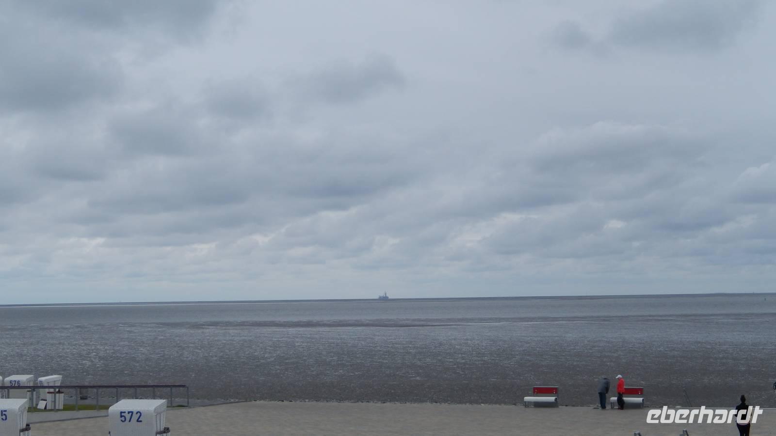 Als nächstes besuchten wir St. Peter Ording. Leider stürmte es auch diesmal stark. Dennoch trauten wir uns über die Seebrücke, bis an den Strand. Der lange Sandstrand läd sonst zum baden ein. Aber bei 12° war keinem danach. Nach einer Mittagspause setzten wir unsere Fahrt fort. Mehrmals hielten wir für kurze Fotostopps und blickten über den Deich.