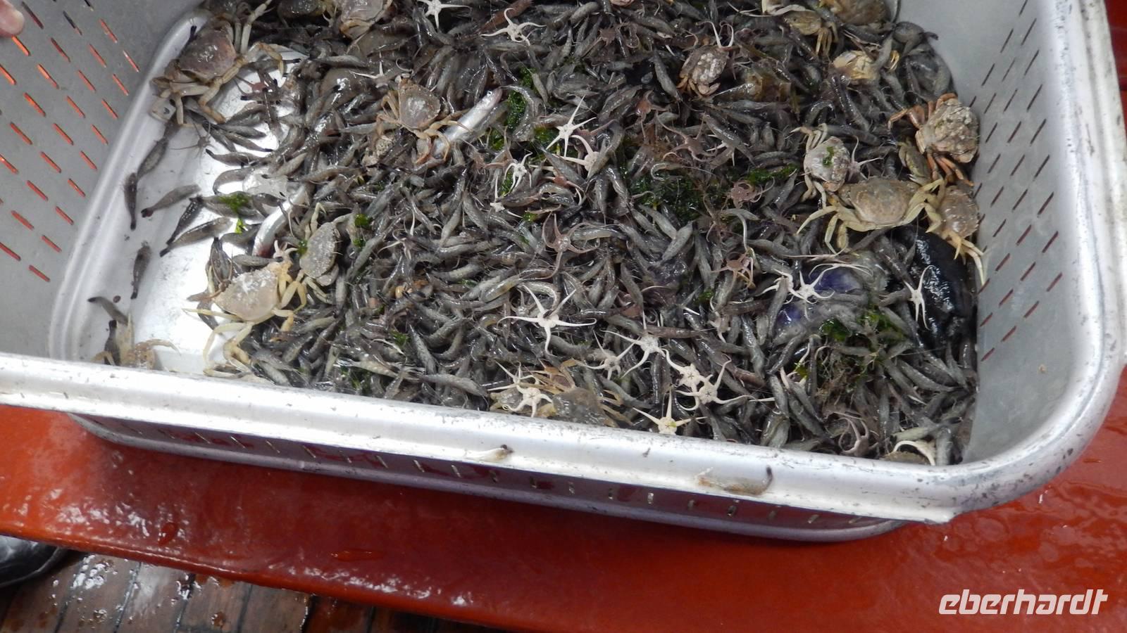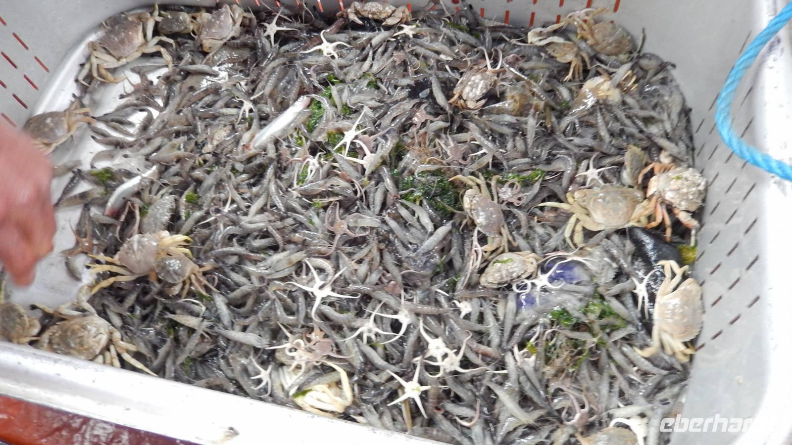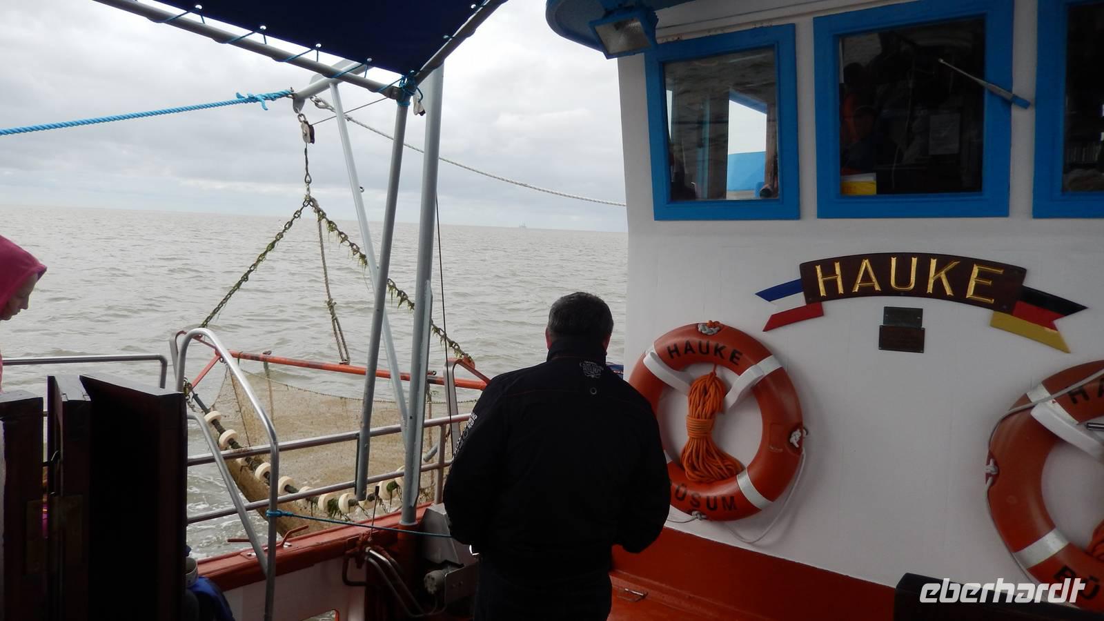 Um 7.30 Uhr trafen wir uns zum Frühstück. Danach ging es zum Hafen. Dort starteten wir den Tag mit einer Kutterfahrt auf der "Hauke". Schnell ging es aus dem Hafen aufs Meer hinaus. Der Wind blies uns mächtig ins Gesicht. Dann wurde das Netz ausgeworfen und jeder wartete gespannt. Nach einer Weile wurde das Netz wieder eingeholt und wir konnten den Fang begutachten. Wir erfuhren durch die Seeleute sehr viel darüber. Jeder konnte Krabben puhlen lernen und natürlich kosten.