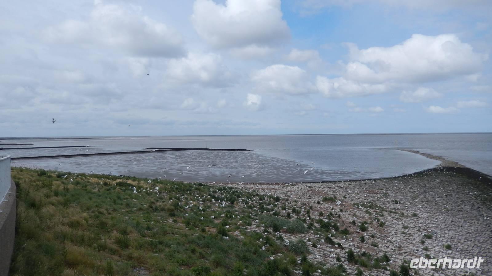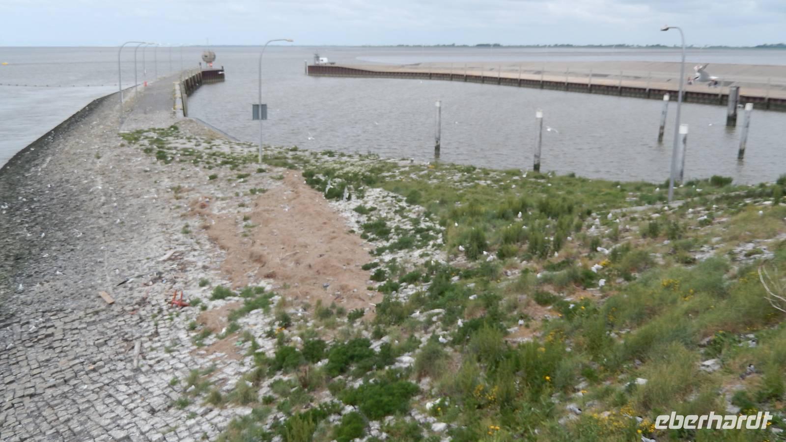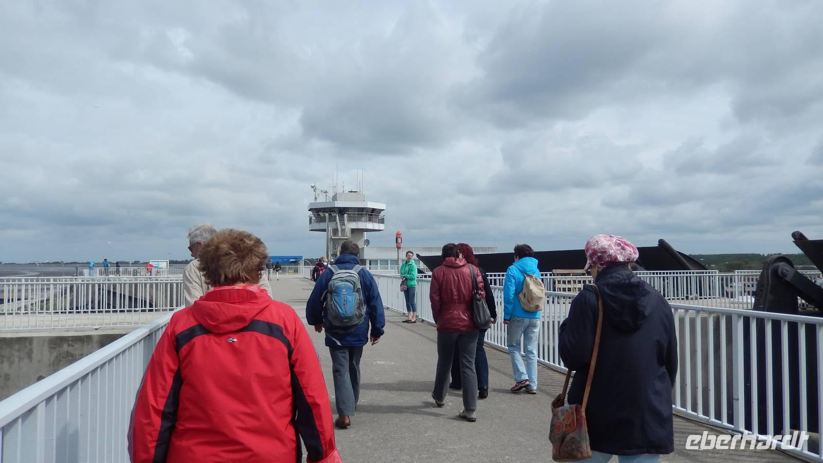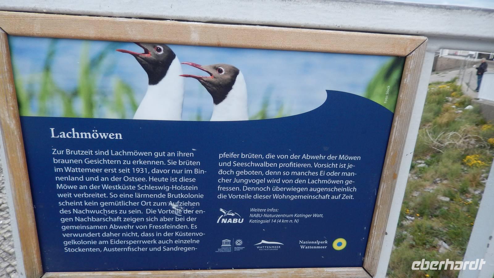 Dann besuchten wir das Eidersperrwerk. Bodo erklärte uns viel darüber. Vor allen die Brutgebiete der Lachmöwen und der Küstenseeschwalben beeindruckte uns. Wir beobachteten die Jungtiere, passten aber auf, dass wir den "Eltern" nicht zu nah kamen.