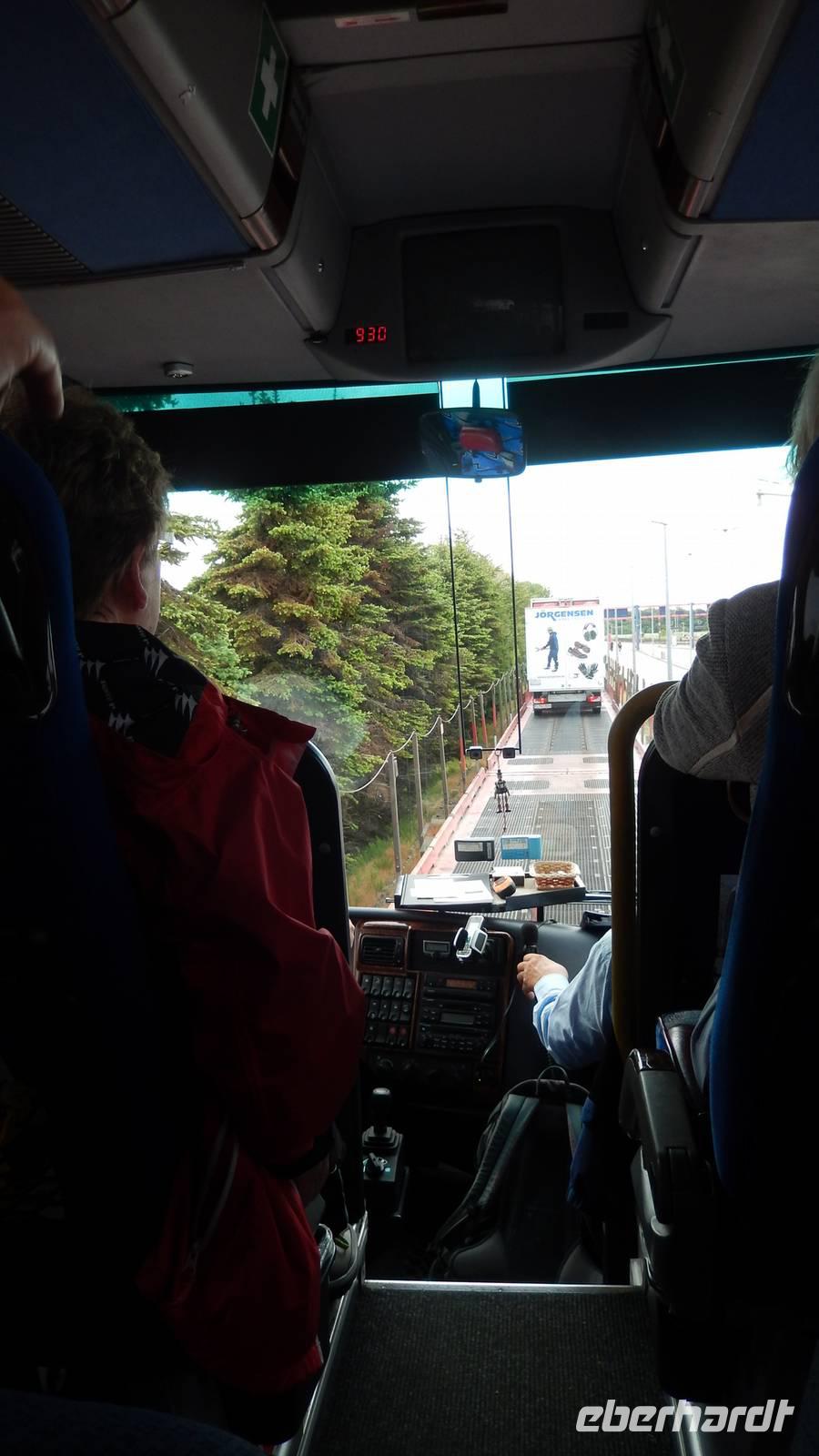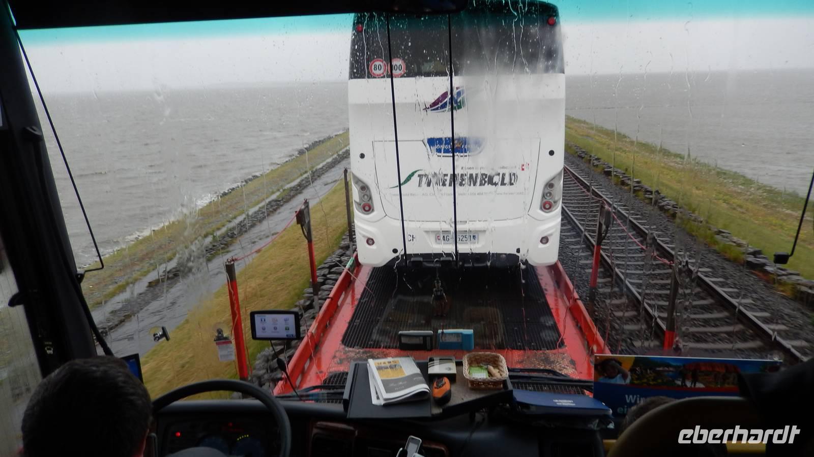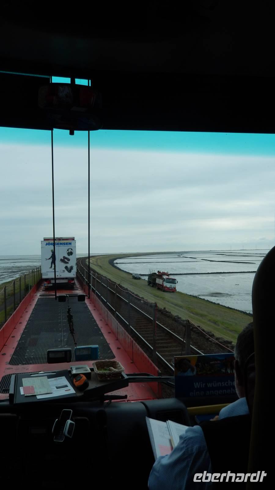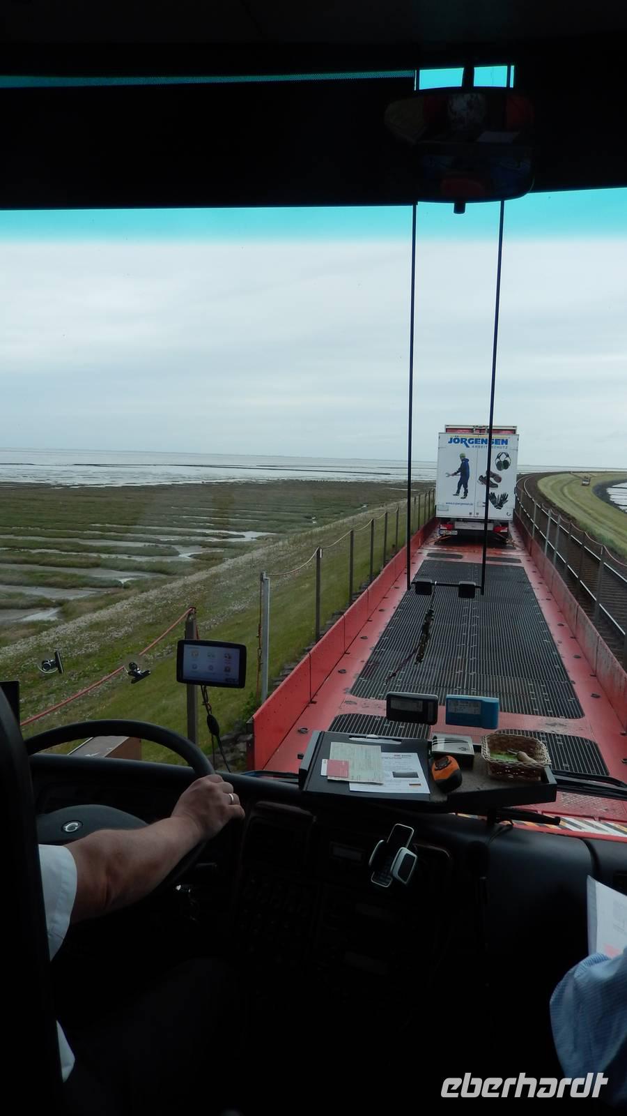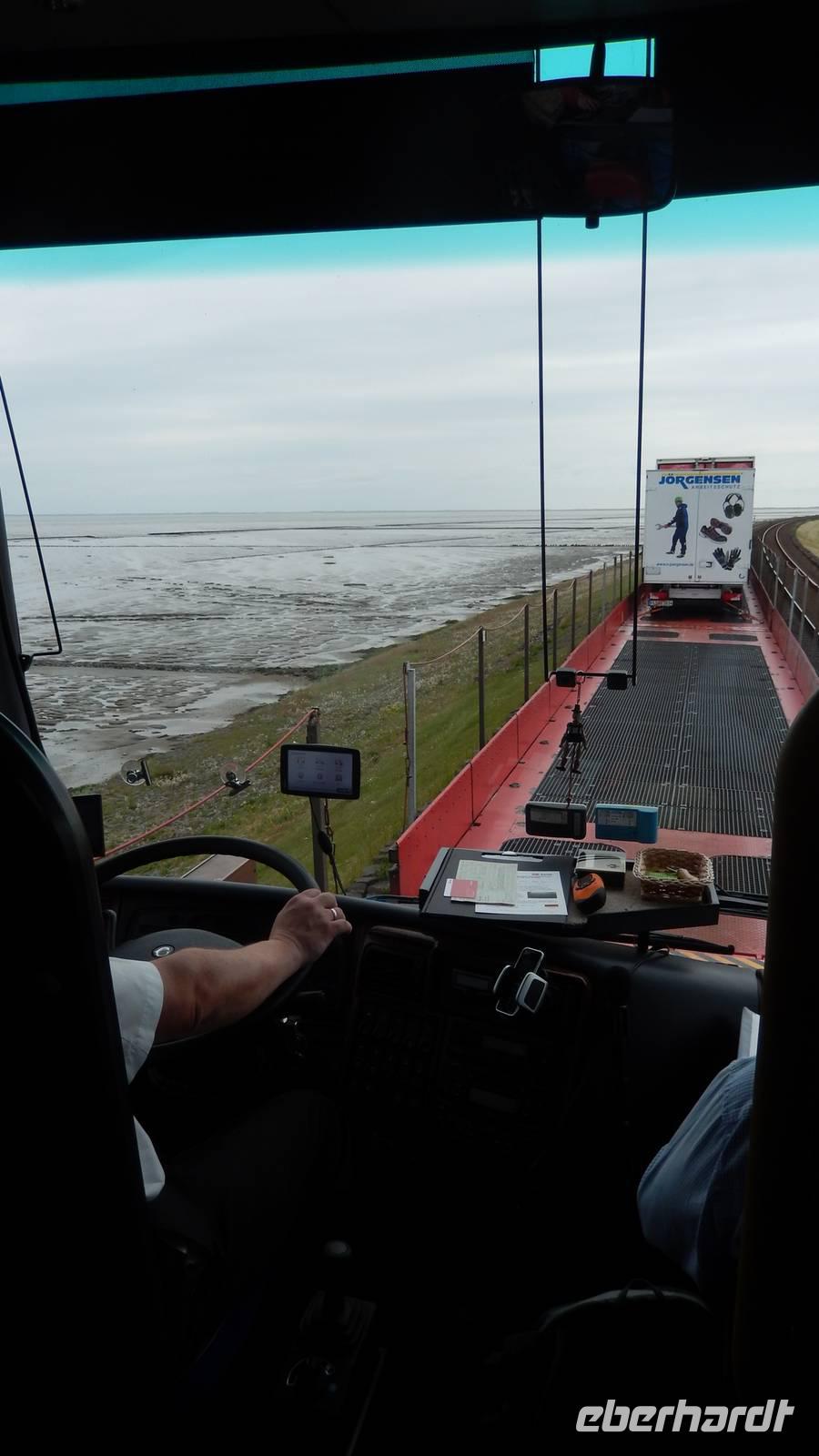 Gleich nach dem Frühstück trafen wir uns am Bus. Gemeinsam mit Bodo starteten wir Richtung Sylt. Pünktlich kamen wir in Niebüll an. Weiter ging unsere Fahrt mit dem Auto-Zug, dem Sylt Shuttle. Es war schon ein komisches Gefühl, im Bus zu sitzen und Zug zu fahren.