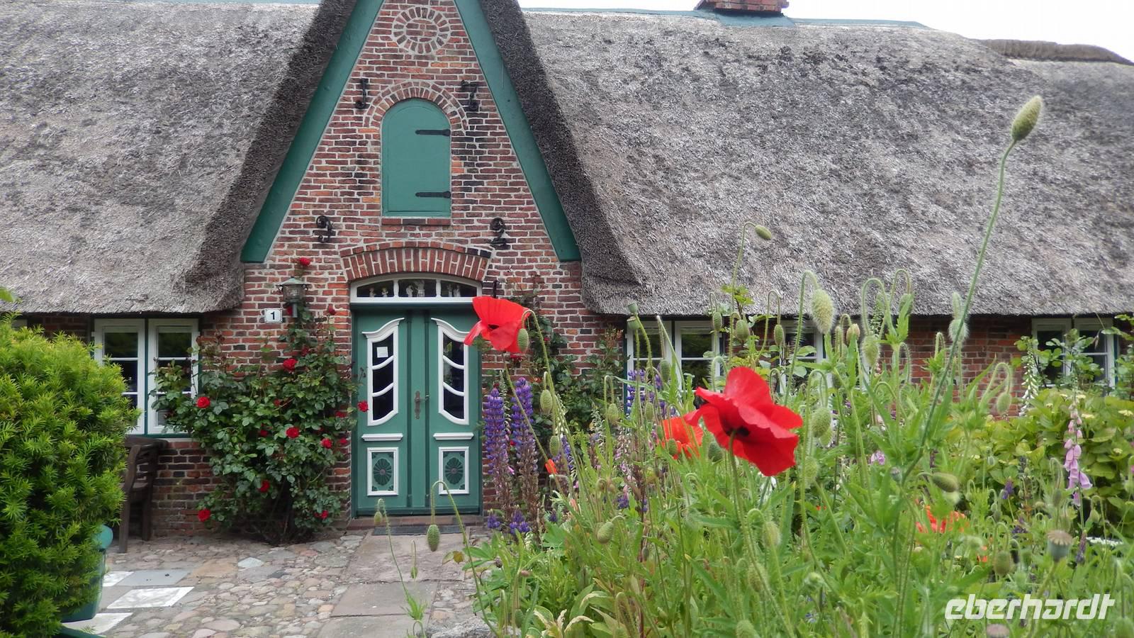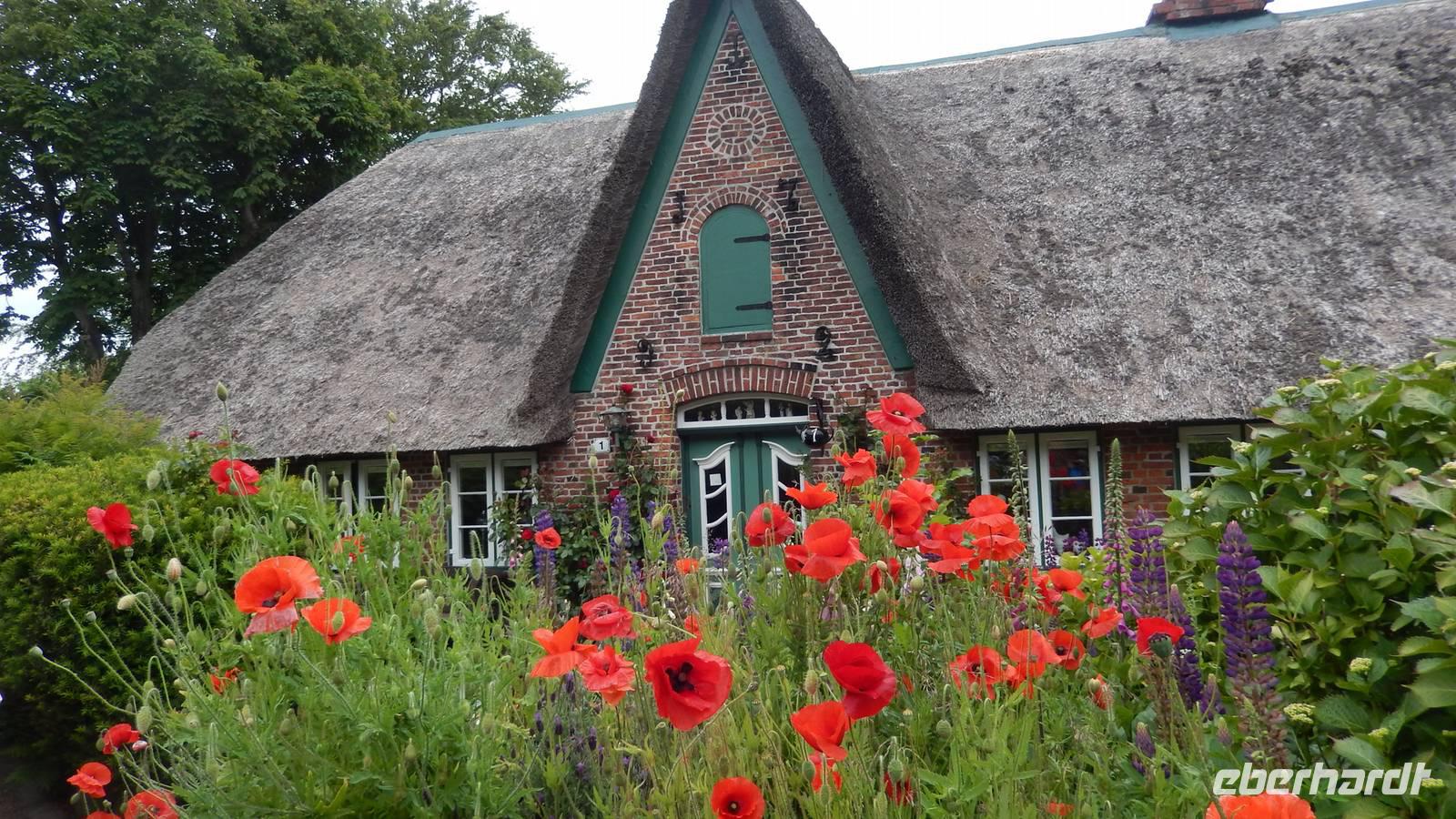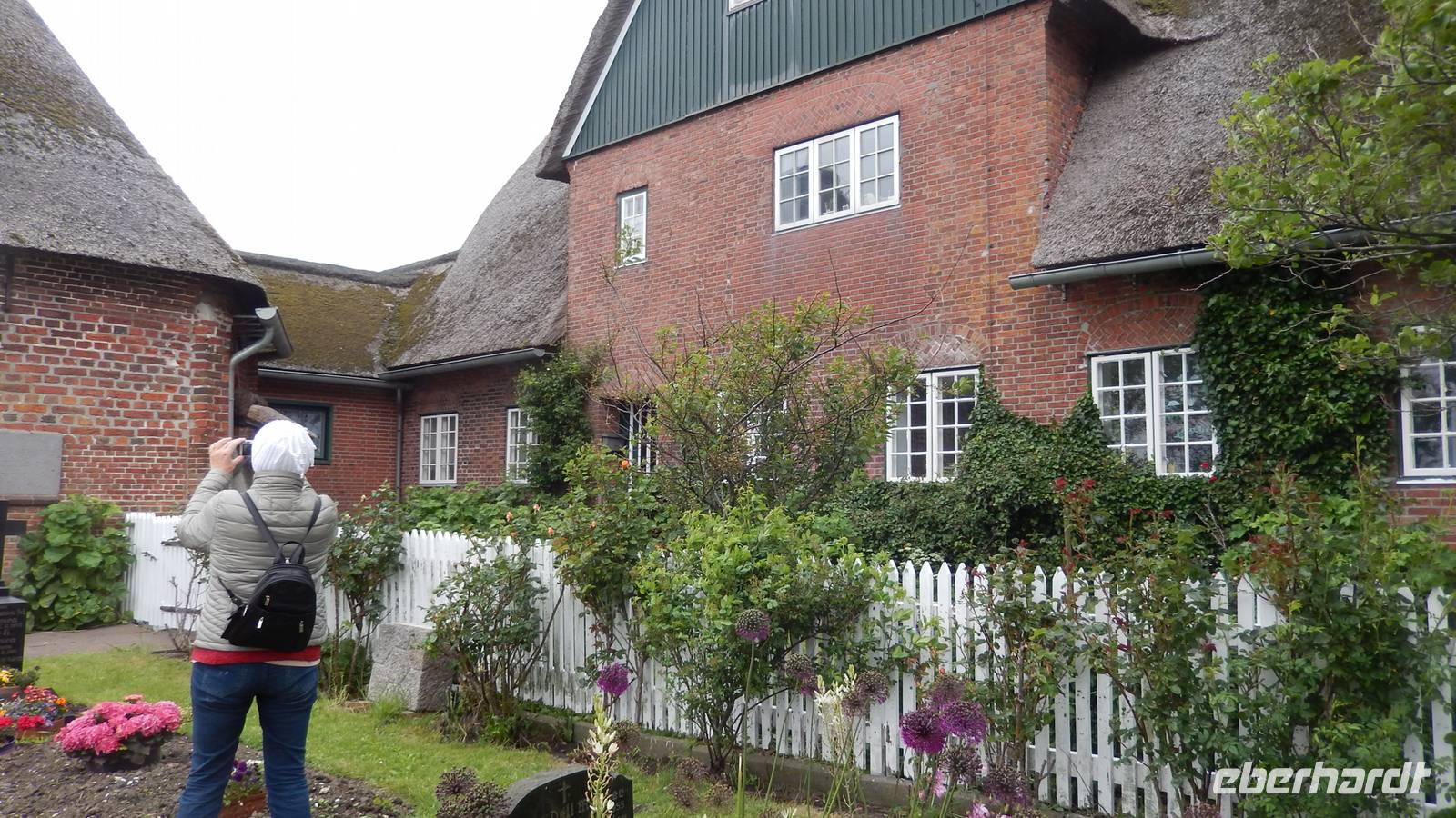 Unser erster Halt war Keitum auf Sylt. Einst Hauptort der Insel. Deshalb siedelten sich viele Kapitäne dort an. Wir bewunderten die großen schönen Häuser, mit Reetdach und die gepflegten Vorgärten. Von Bodo bekamen wir viele Informationen.