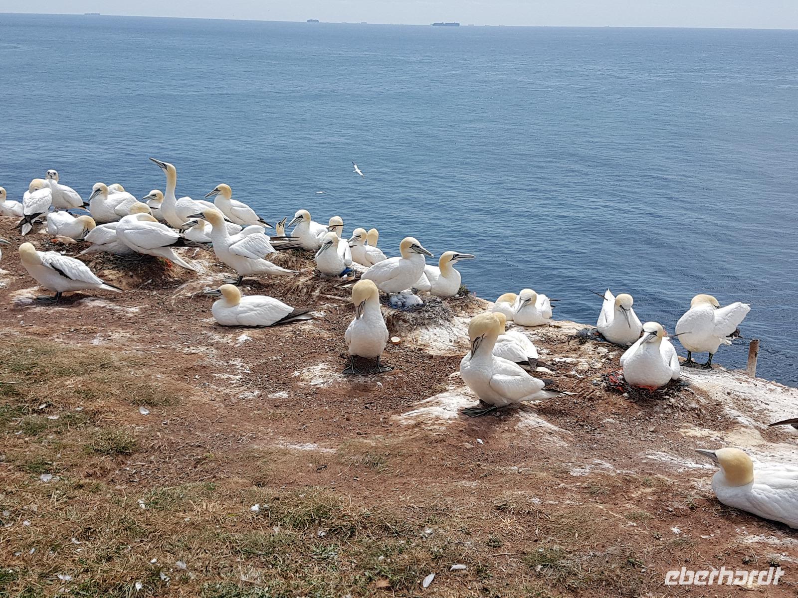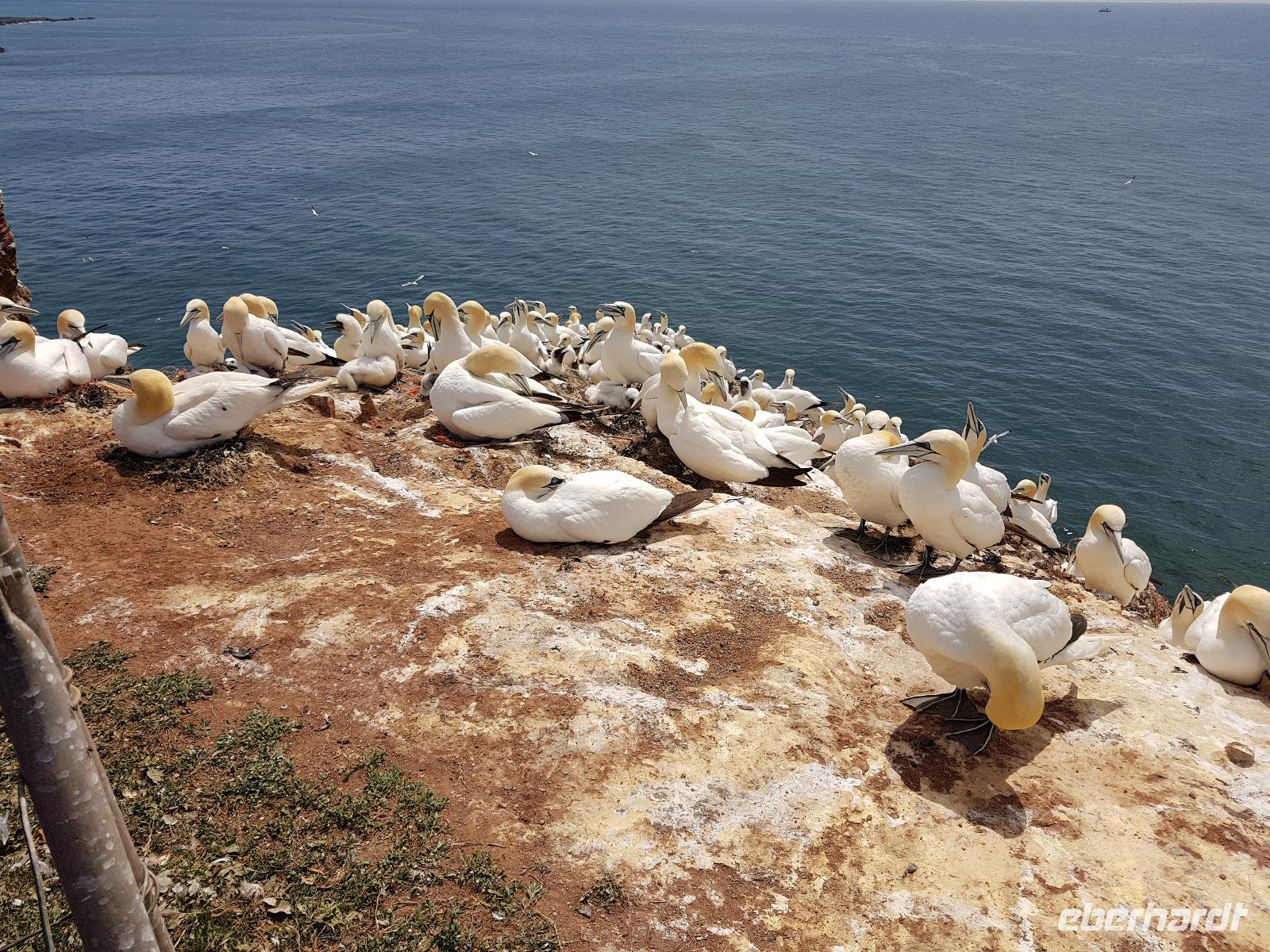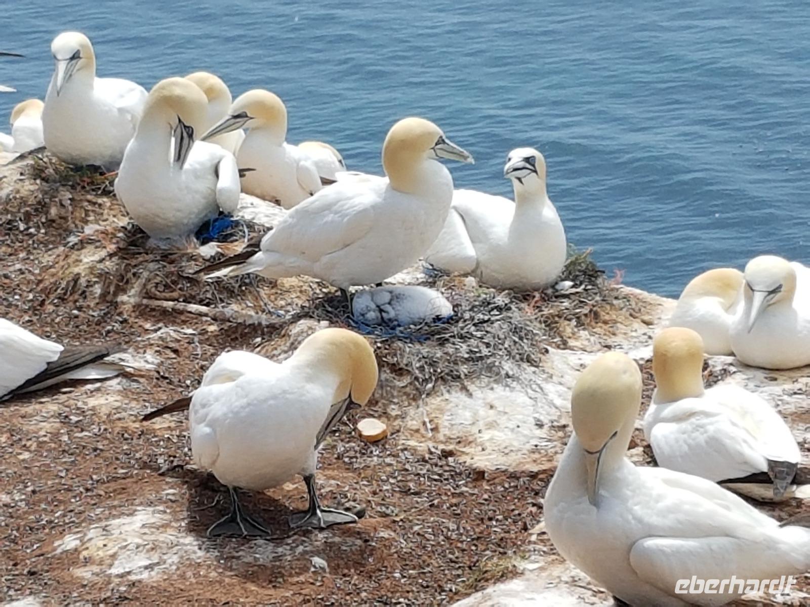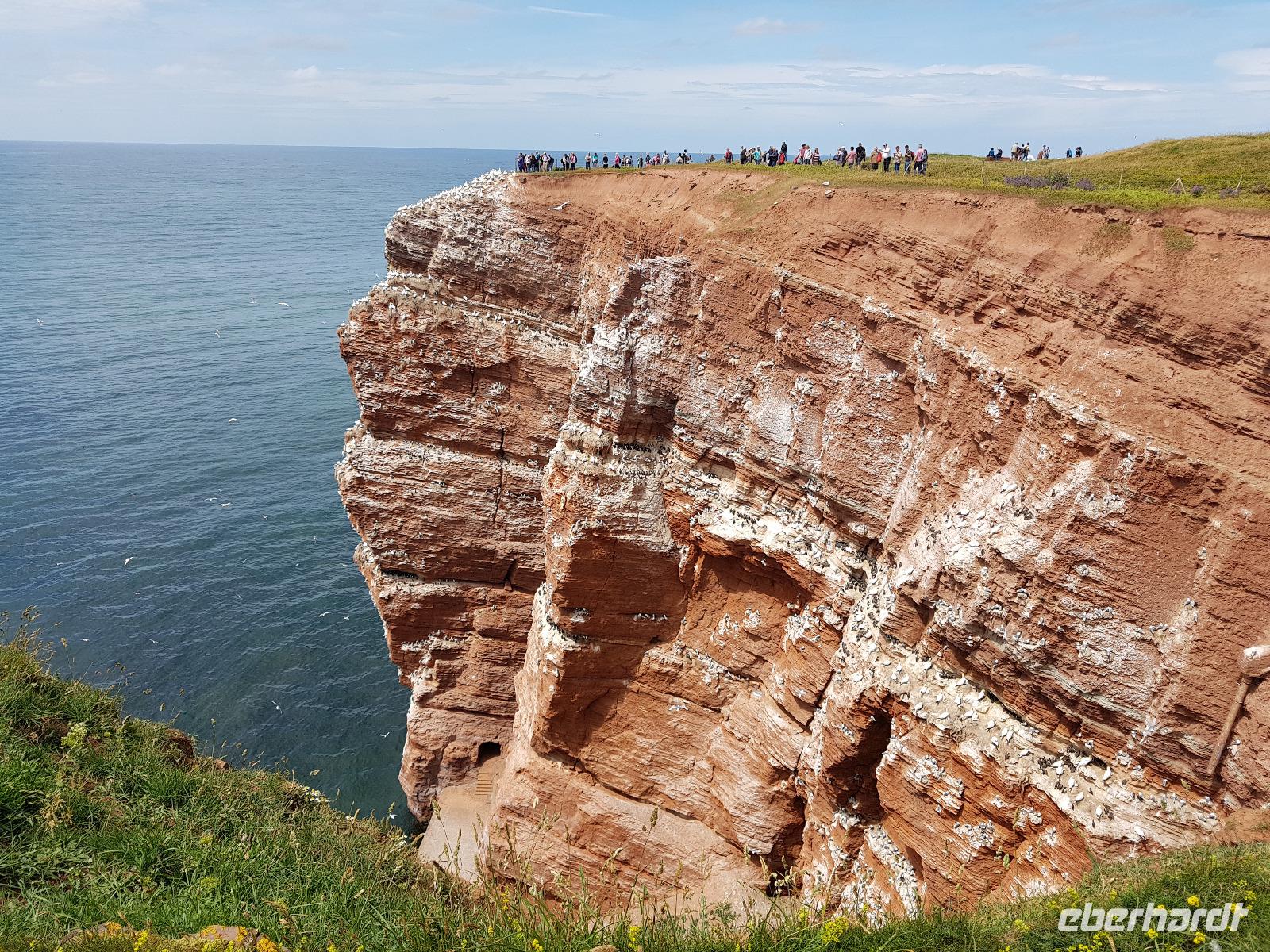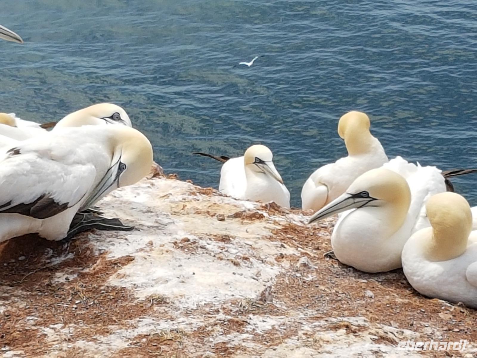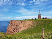 Fast alle Singles kamen mit auf Deutschlands einzige Hochseeinsel. Mit einem gut gefüllten Schiff fuhren wir hinaus auf die Nordsee. Zunächst noch im Schutz der Bucht und dann aber bei einer Dünung, die nicht jedem gut bekam. Nach 3 stündiger Überfahrt empfingen uns in Helgoland dann die Börteboote und brachten uns an Land. Wir aßen und tranken eine Kleinigkeit und begaben uns vom Unterland ins Oberland der Insel mit dem Fahrstuhl oder über 184 Stufen. Das Wetter war perfekt, bei Sonne und einem leichten Wind wanderten wir über den Klippenrandweg entlang der roten Felsen. Wir sahen die Basstölpel ganz aus der Nähe und erfuhren von den Vogelschützern viel Interessantes über die Aufzucht der Jungvögel und die Probleme, die der Müll in der Nordsee anrichtet. Die lange Anna lag im Sonnenschein und auf dem Rückweg ging es durch Gärten und entlang der Wiesen mit den Schafen. Ein perfekter Tag auf Helgoland ! Auf dem Rückweg zum Schiff wurde noch kurz eingekauft und dann brachten uns die Börteboote zurück auf unsere "Lady von Büsum". Die Rückfahrt ging mit den Wellen und so hatte auch keiner mehr Probleme. Wir konnten draußen sitzen und die Sonne und die herrlich frische Seeluft genießen.