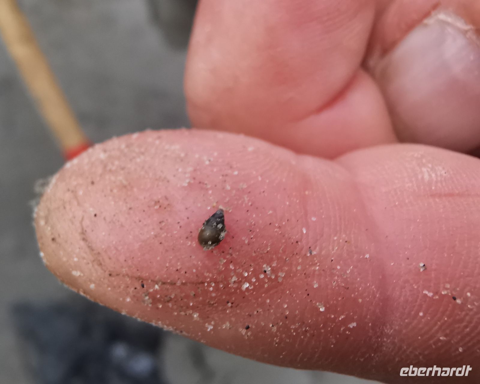 In den Löchern im Sand aus denen Luftblasen aufsteigen leben Muscheln, die, seitdem sie geschützt werden, eine beachtliche Größe erreichen können. Erst wenn alles ruhig ist ringsum zeigt sich ihr kleiner Rüssel zum Navigieren.