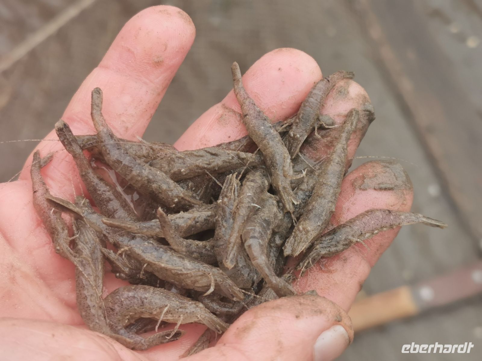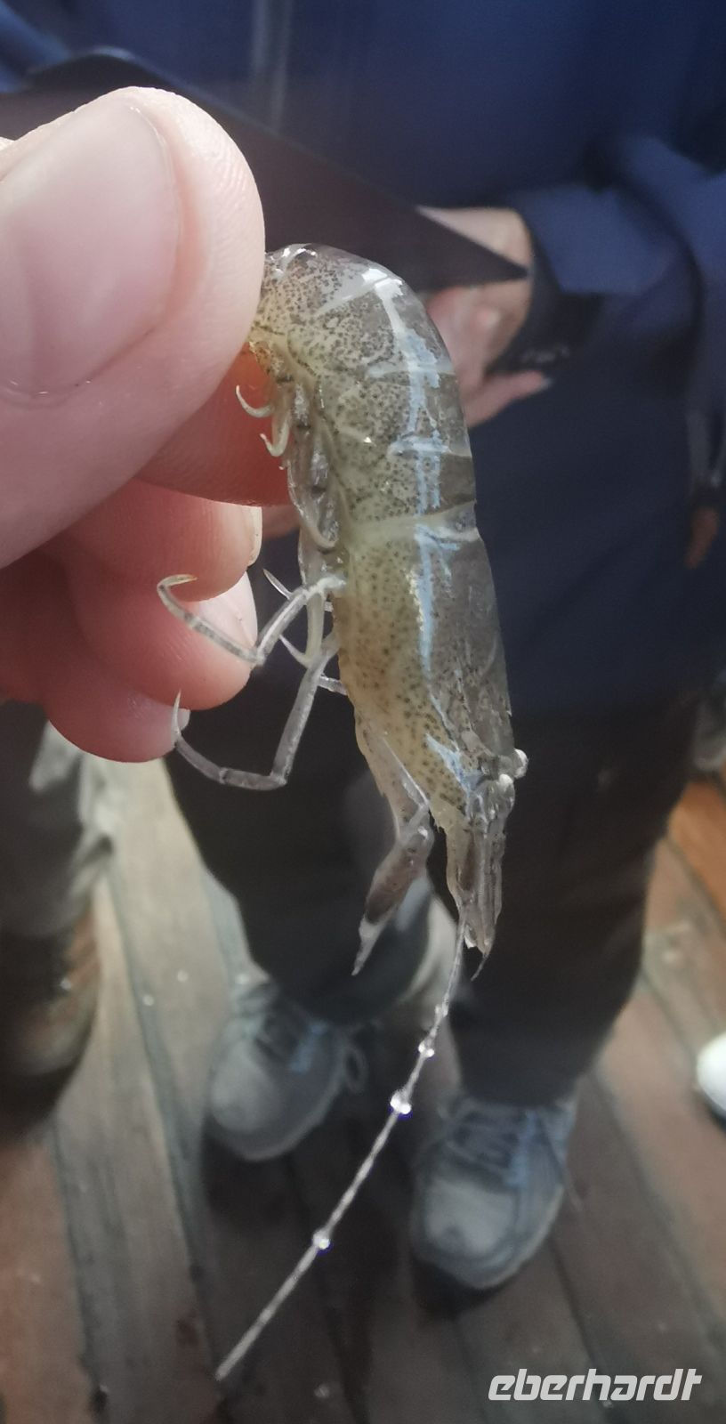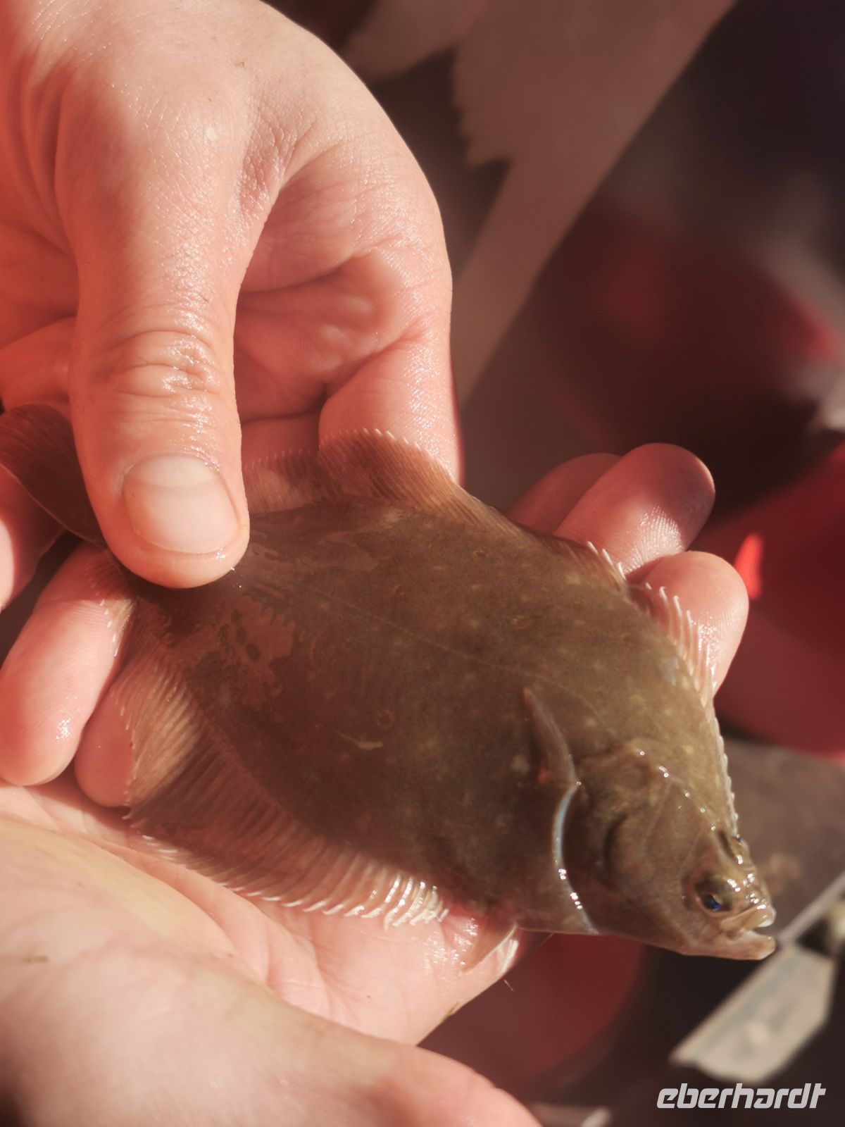Als das Netz eingeholt wird liegen allerlei verschiedene Meeresbewohner im Fangkorb, leider kaum Krabben. Die Fischer erklären uns die verschiedenen Fische, heute ist ihnen sogar der wie ein Drache aussehende giftige Knurrhahn ins Netz gegangen. Die kleine Flunder, die auch mit im Netz war, hat strahlend blaue Augen. Eine Seenadel erinnert uns an Seepferdchen. Die Krabbenausbeute ist leider so gering, daß wir nicht pulen werden und somit auch leider keine verkosten können. Darauf hatten wir uns so gefreut.
