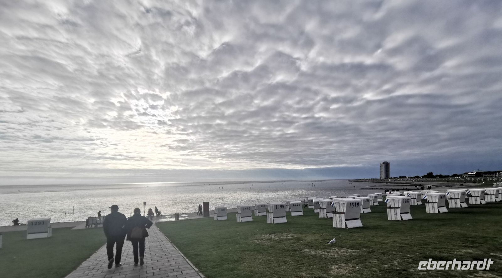 Die Anderen steuern zielgerichtet auf eine Lokalität zu, um doch noch zu den leckeren Krabben zu kommen und am Nachmittag genießen alle die wärmenden Sonnenstrahlen und den strahlend blauem Himmel. Manche laufen auf den Deichen entlang, andere sitzen im Strandkorb und lesen.