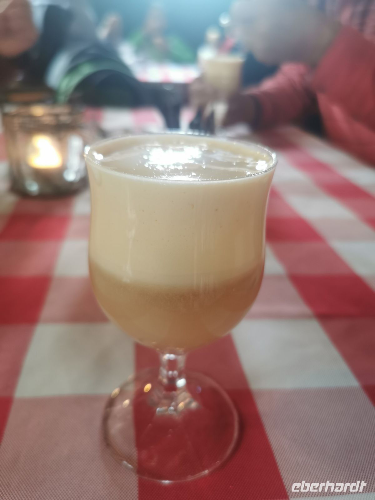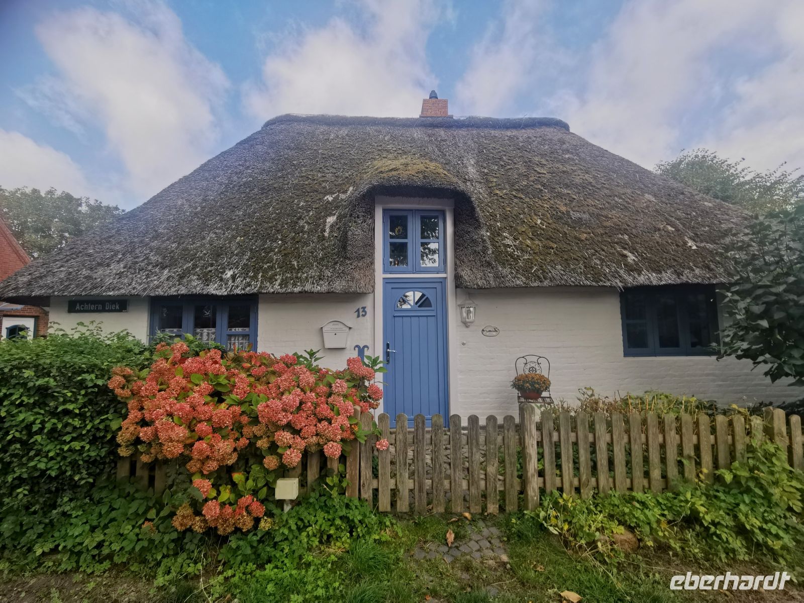 Einige Gäste hatten einen Tipp bekommen und so besuchen wir die empfohlene Schankwirtschaft Wilhelm Andresen. Dort gibt es in einem gemütlichen kleinen Reeddachhaus eine Spezialität, die wir unbedingt probieren möchten: heißen Eiergrog. Die Wirtin hat es gut mit uns gemeint, der Grog ist stark und herrlich wärmend, sogar die Sonne hat jetzt Erbarmen mit uns und kommt nach Sturm und Regen wieder zum Vorschein.