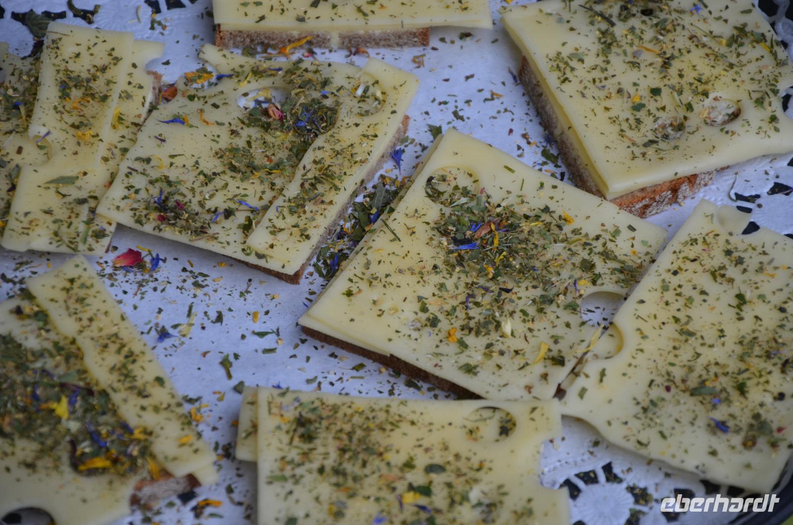 Zum Abschluß erwartete uns noch ein besonderes Schmankerl mit selbstgemachten Verführungen aus der Kräuterküche und aus dem Rucksack auch noch ein Schnäpschen, Likörchen oder etwas nicht Alkoholisches. Eine wunderbare Idee.