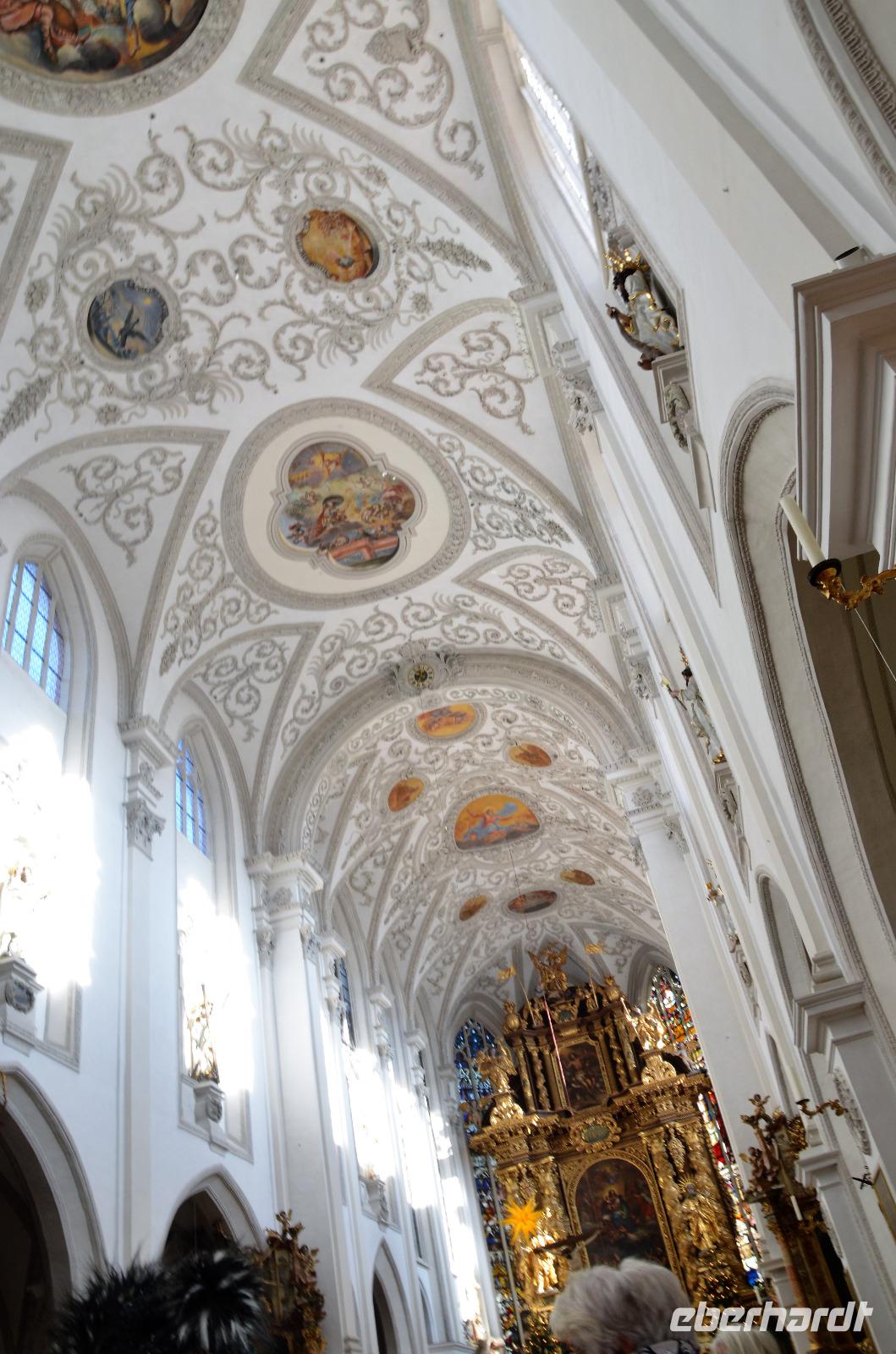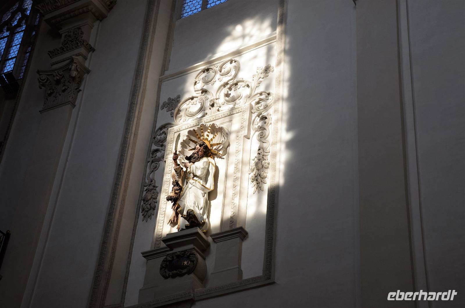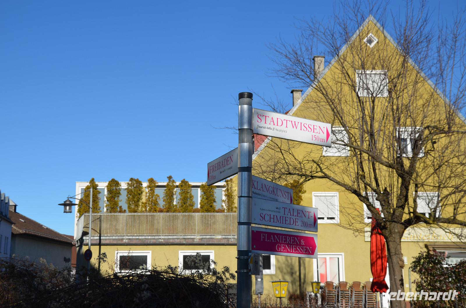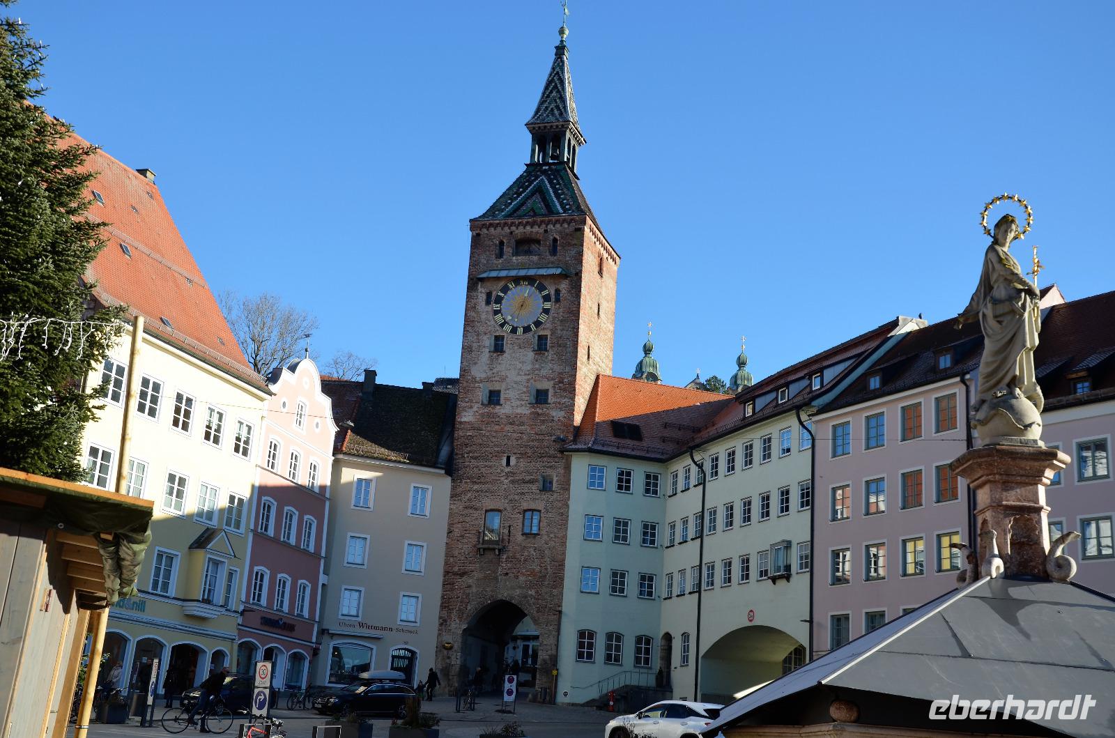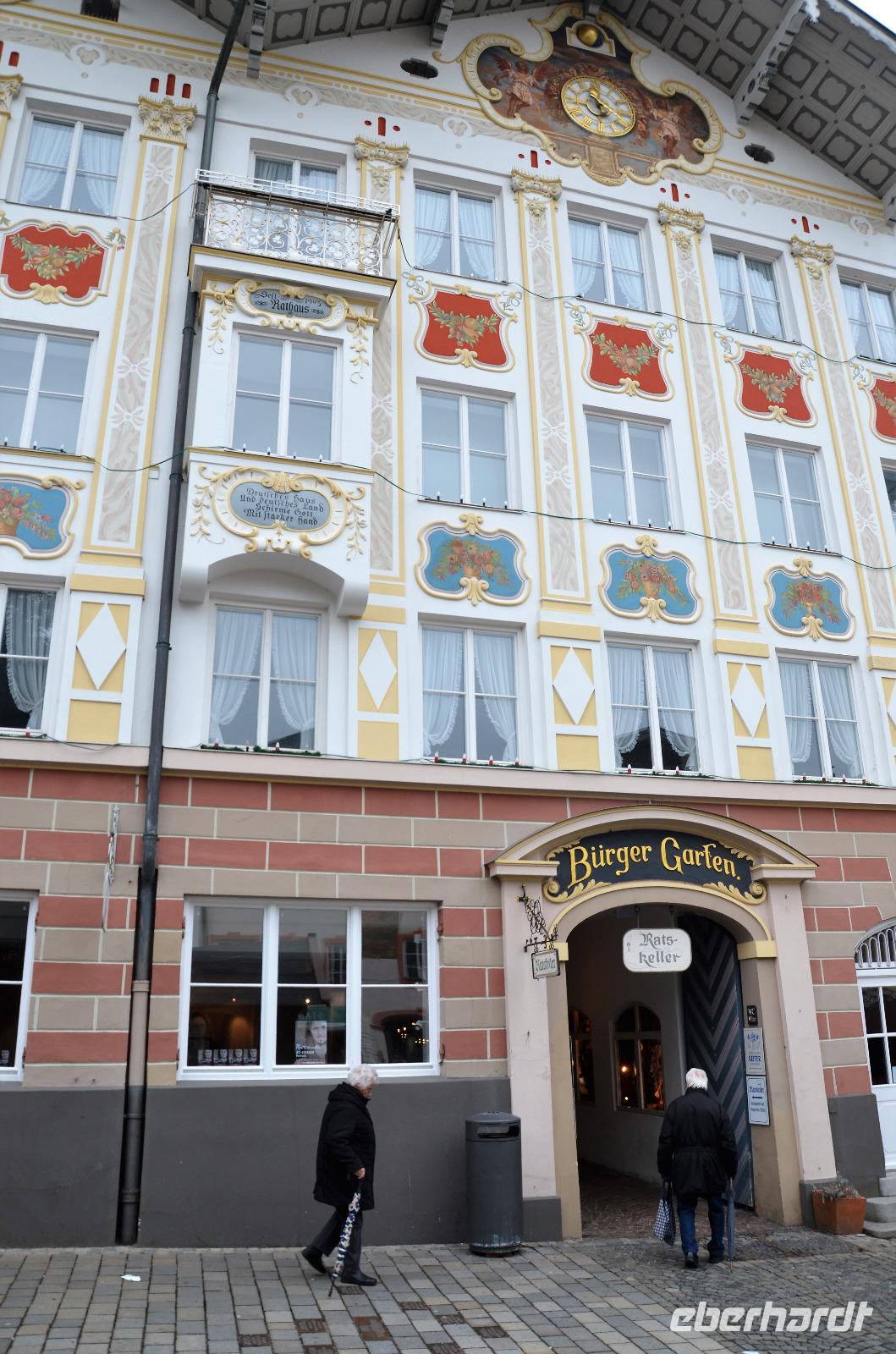 In Landsberg trafen wir auf unsere Humorvolle Stadtführerin und wir starteten unsere Tour am Lech der für die Stadt immer eine große Bedeutung hatte. Entlang des Mühlkanals, der heute mit Häusern überbaut ist lernten wir viel über die Geschichte und Geschicke der Stadt. Auffallend war die Numerierung der Häuser die uns Willkürlich erschien. Aufgeklärt durch unsere Begleiterin verstanden wir die Absicht. Ausgehend vom Stadtturm wurden die Häuser erst einmal am Platz numeriert, dann innerhalb der nächsten Stadtviertel und der Reihen hintereinander. Heute kamen zwar Straßennamen dazu , aber einfacher ist es dadurch wohl nicht geworden. Vor allen Dingen wenn man als Fremder eine Adresse sucht. Markant ist die Heiligkreuzkirche mit ihren Rokoko Türmen. Auch hier war es interessant sich die schönen Seiten einer Stadt zeigen und erklären zu lassen.