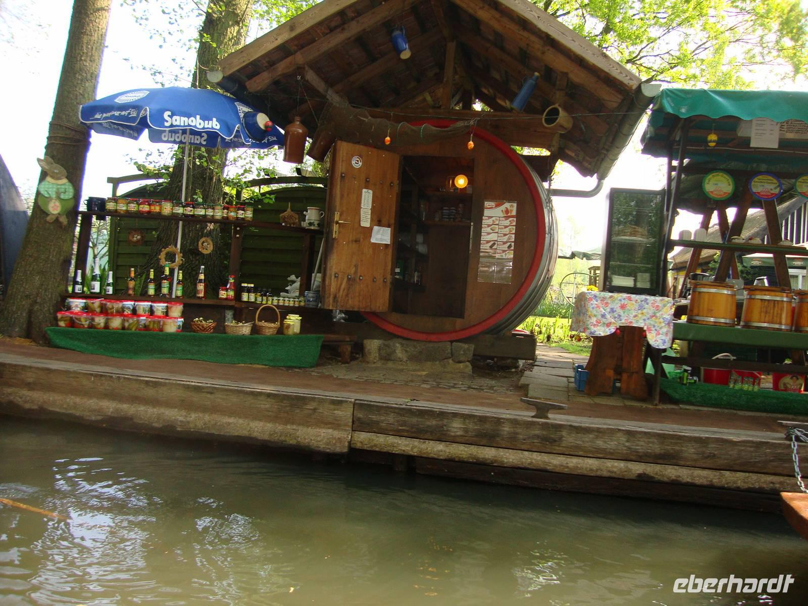 Durchfurcht das endlos wirre Flussrevier in seinem Boot der Spreewald - Gondolier !" Während der Kahnfahrt konnten wir die original Spreewälder Gurken kosten oder ein Fettbemmchen essen.