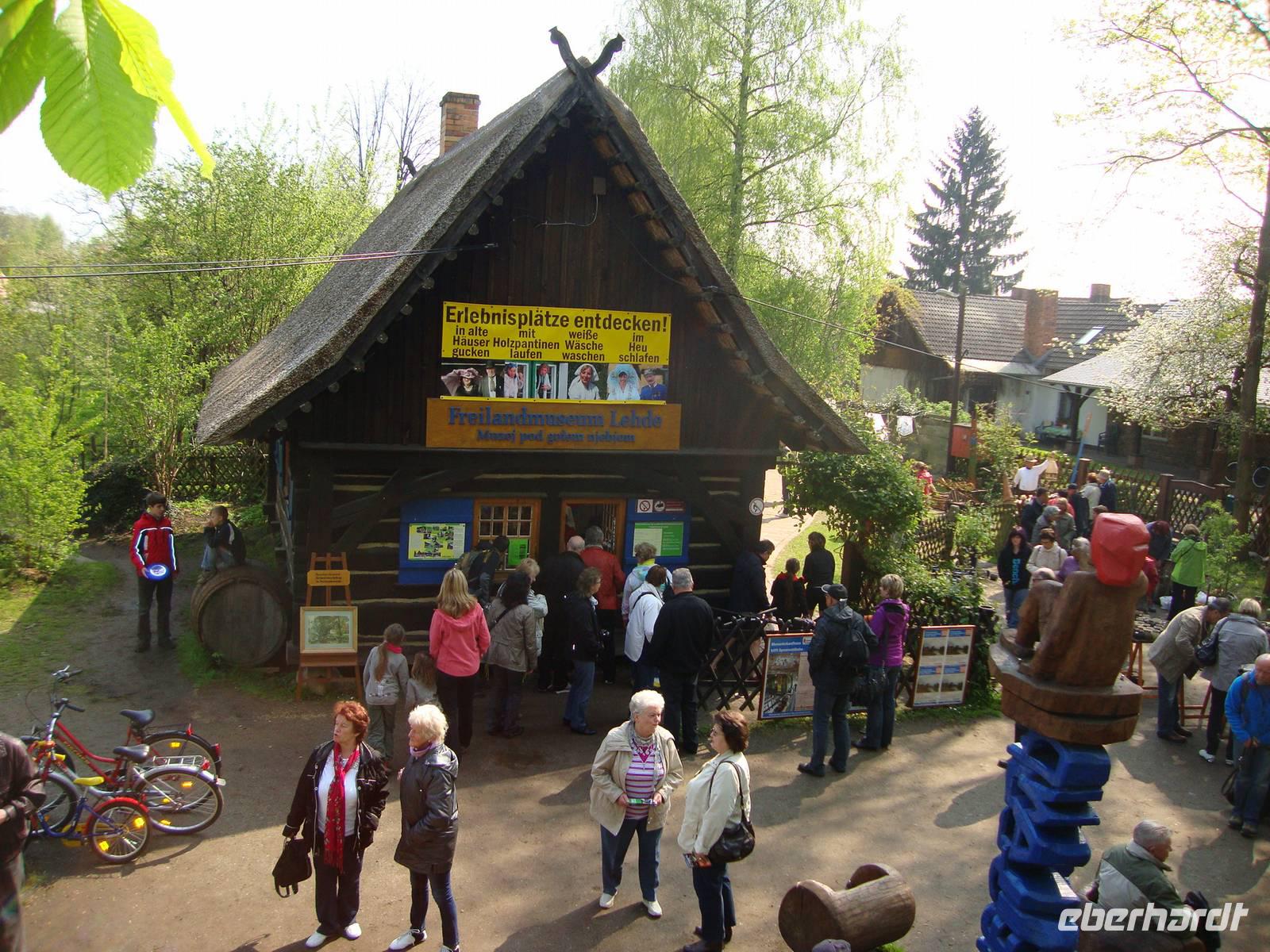 Einen Halt legten wir in Lehde ein, um das Freilandmuseum zu besuchen. In diesem wird das Leben im 19. Jh. nachgestaltet. Der bäuerliche Alltag wird hier anschaulich dargestellt. Zur Ausstattung gehören u.a. Hausrat und Bauernstube mit Familienbett. Besondere Souvenirs aus dem Spreewald sind auch erhältlich.
