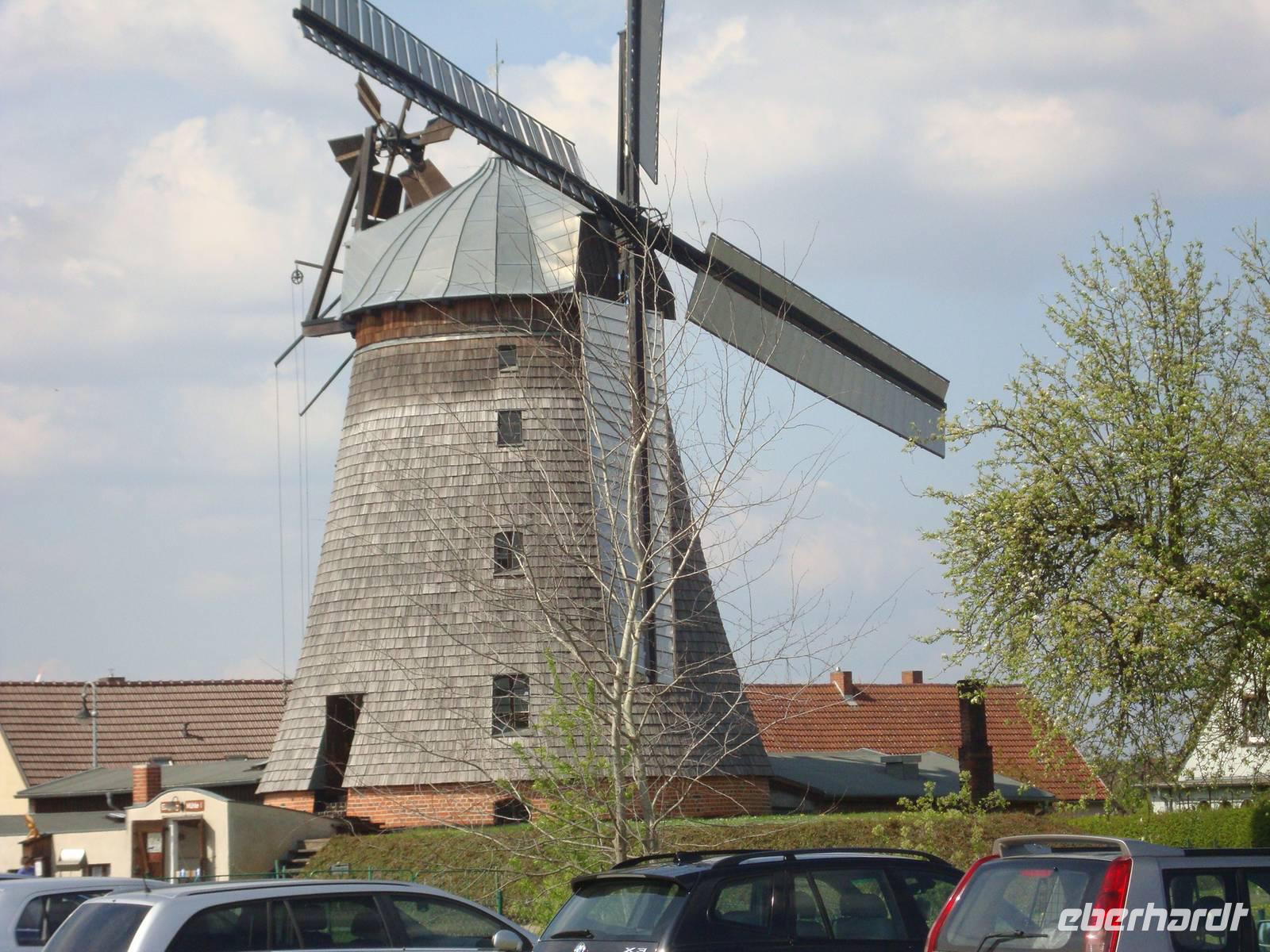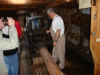 In der Mühle, welche als einzige eine dreifach Funktion besitzt, nämlich eine Ölmühle, eine Windmühle und eine Sägemühle, unternahmen wir einen Rundgang durch alle Mühlen. dabei wurde uns anschaulich erklärt und dargestellt wie man vor 100 Jahren schwer arbeiten mußte. In der Ölmühle wird das Leinöl noch wie zu dieser Zeit hergestellt. Übrigens die einzige Herstellung von Leinöl auf manuelle Handarbeit mit sehr langer Tradition. Mit Fördermitteln der EU, des Landes Brandenburg und der Gemeinde wurde dieses technische Denkmal erhalten.