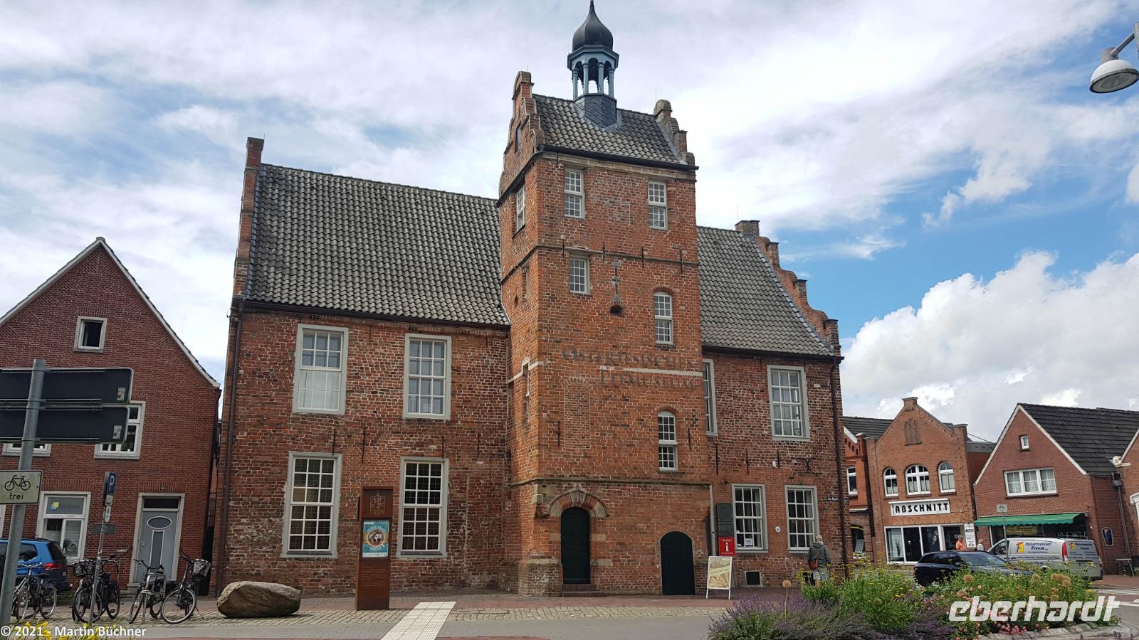 Nach einer Stunde liegen wir wieder fest im historischen Ratsdelft. Hier befinden sich zwei markante Gebäude: Zum einen das Rathaus, zum anderen das „Otto Huus". Dieses Gebäude wurde von „Otto Walkes" persönlich ausgestattet. Schon von Weitem erkennt man die bekannten Ottifanten, die energiegeladen die Ziegelsteinmauer schwungvoll zu durchbrechen scheinen. Im Gebäude findet man viele der in den Filmen und Bühnen-Shows verwendeten „Otto Originale" bis hin zu seinen vielen Preisen Echo, Bambi, Goldene Kamera usw. Ein kleines Kino zeigt permanent Szenen aus diversen Ottofilmen. Ein Haus für echte Otto-Fans.
