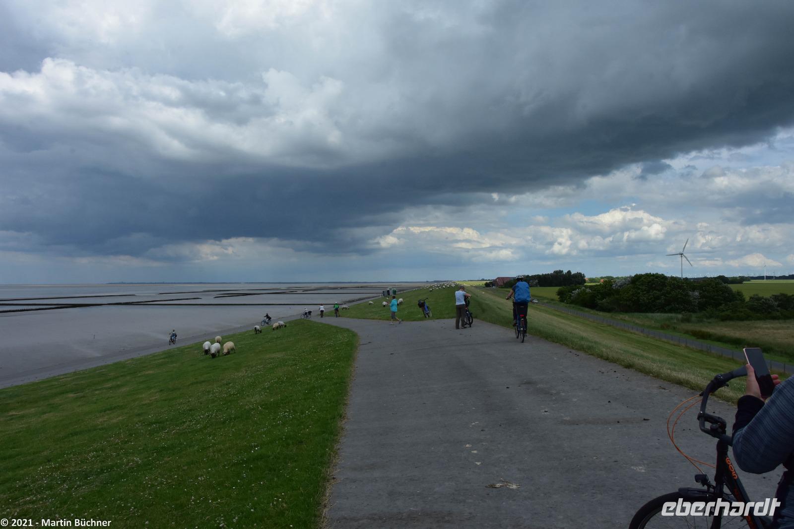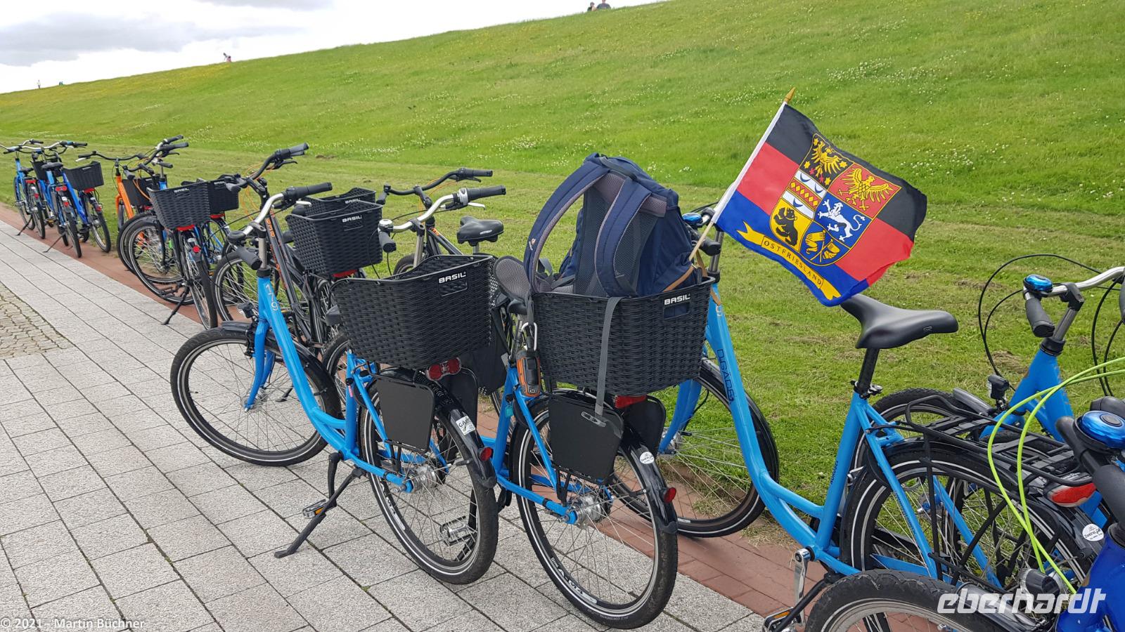 Ostfriesland empfängt uns typisch mit einer steifen Brise Wind mit einigen Böen. Zunächst radeln wir nach Norddeich, Nordseeheilbad und Fährhafen für die Inseln Norderney und Juist.