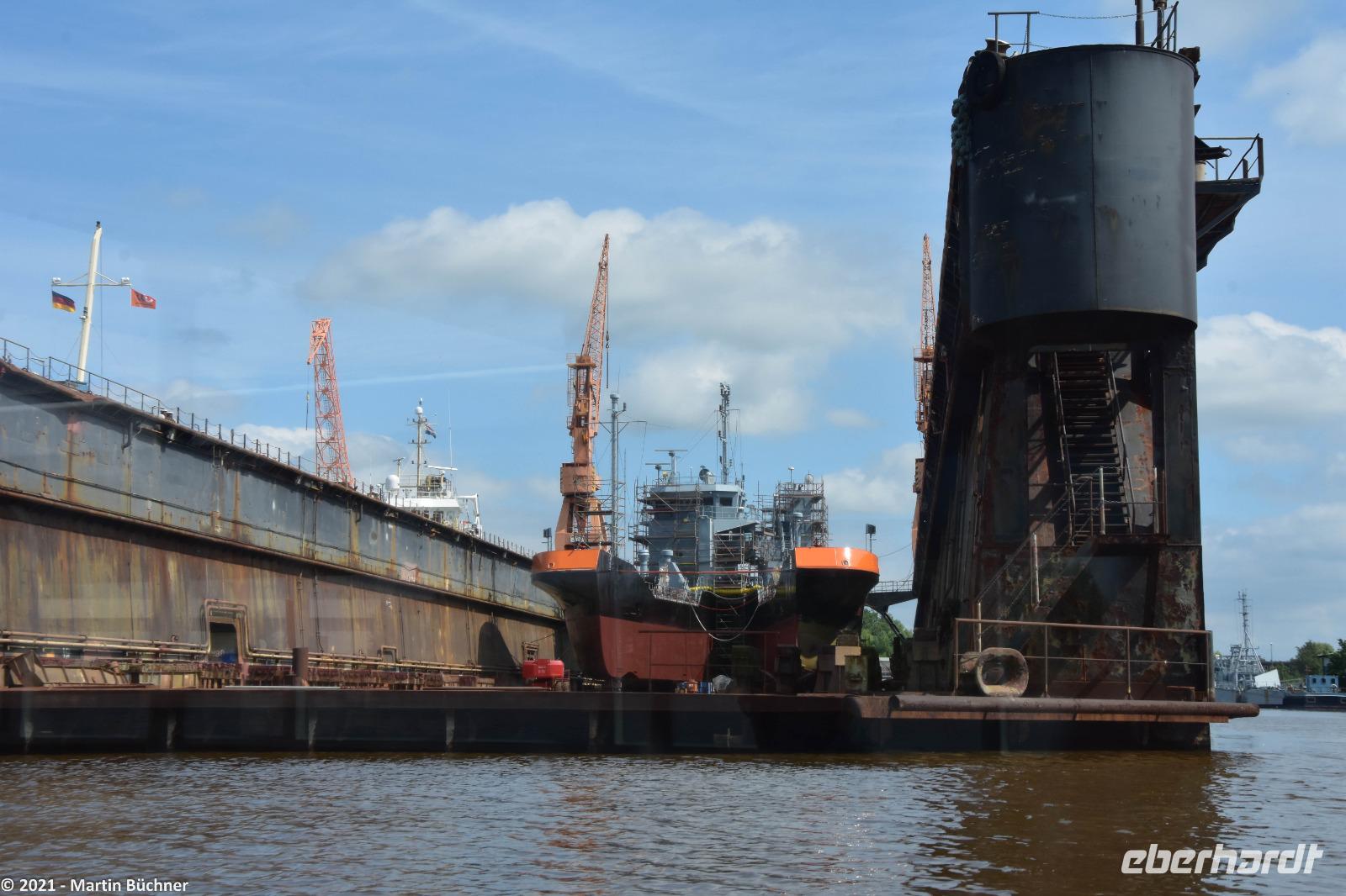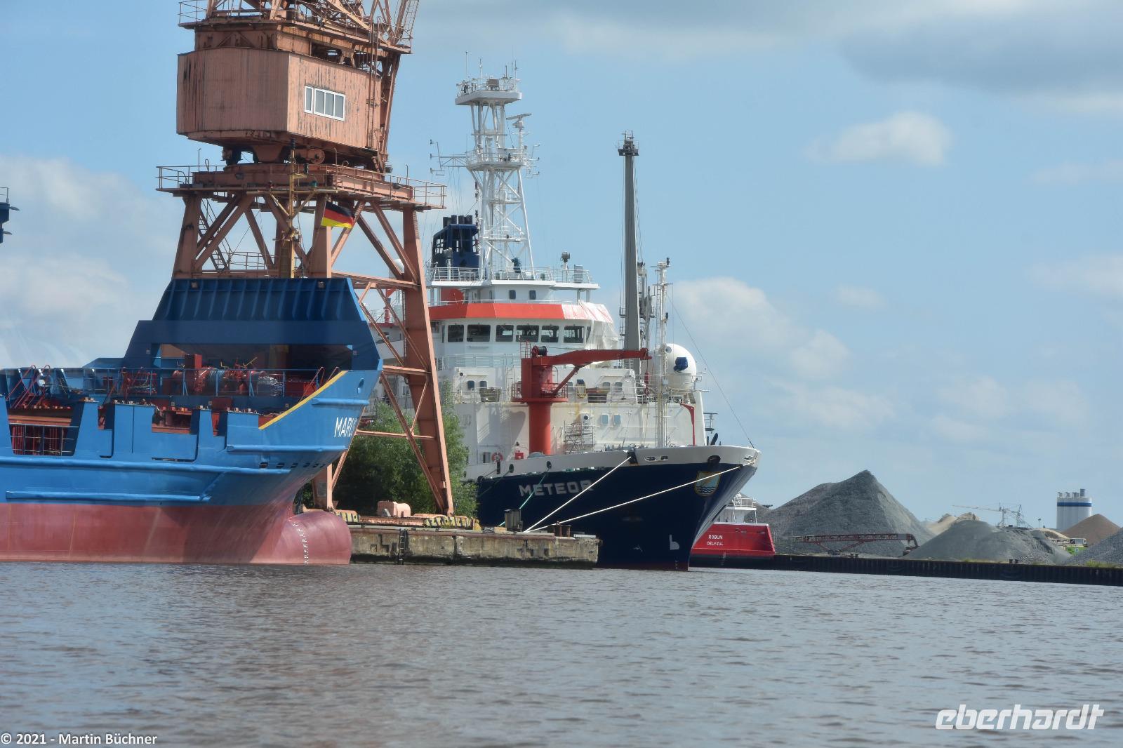 Das Forschungsschiff Meteor liegt ebenso im Hafen, es dient der Meeresforschung, Eigner ist die Bundesrepublik Deutschland.