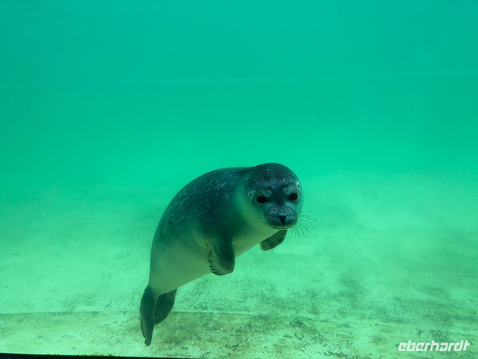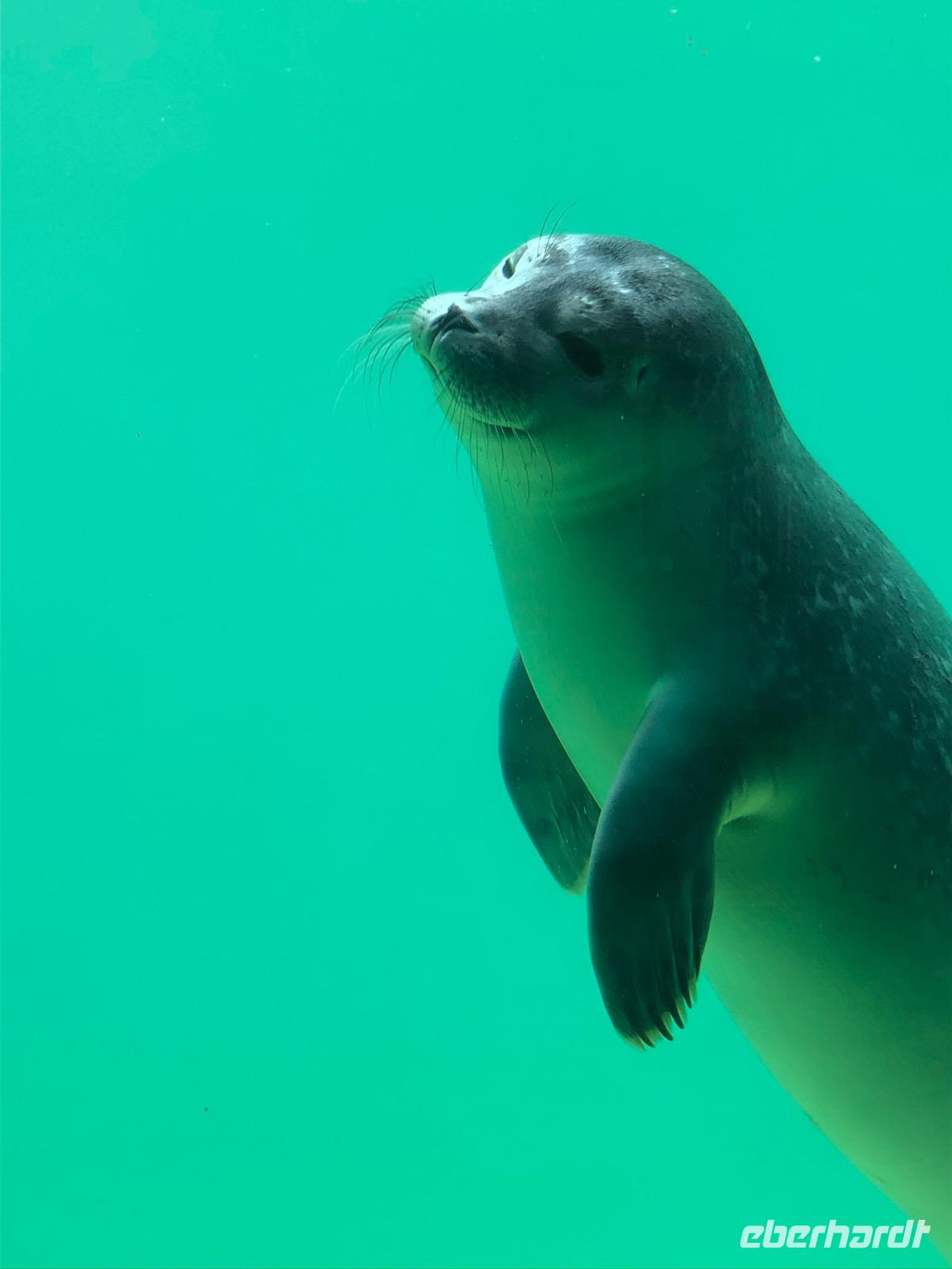 Am ersten Urlaubstag ging es nach Norddeich. Eigentlich gewachsen daraus, dass von hier aus die Schiffe übers Wattenmeer die vorgelagerten Inseln anfahren und man den ersten Blick auf die Nordsee bekommt.Nun ist die Frage die der großen Erwartung, denn wenngleich Norddeich Meerwasser, oder mal weniger Meerwasser hat, dann ist es doch kein typischer Urlaubsort am Meer. Aufwerfende Brandung, kühles, klares Wasser - Fehlanzeige! Und trotzdem kann dieser Meerzugang so viel erzählen, ist für die Nordsee, die Zugvögel und die Küstensicherung so wichtiger Teil des Nationalparks Wattenmeer. Eine Abfolge von Wasser, Dünen, Sand, Salzwiesen, Watt und Küste eröffnet sich in Norddeich, Lebensraum für unzählige Tier- und Pflanzenarten. So auch den Seehund.