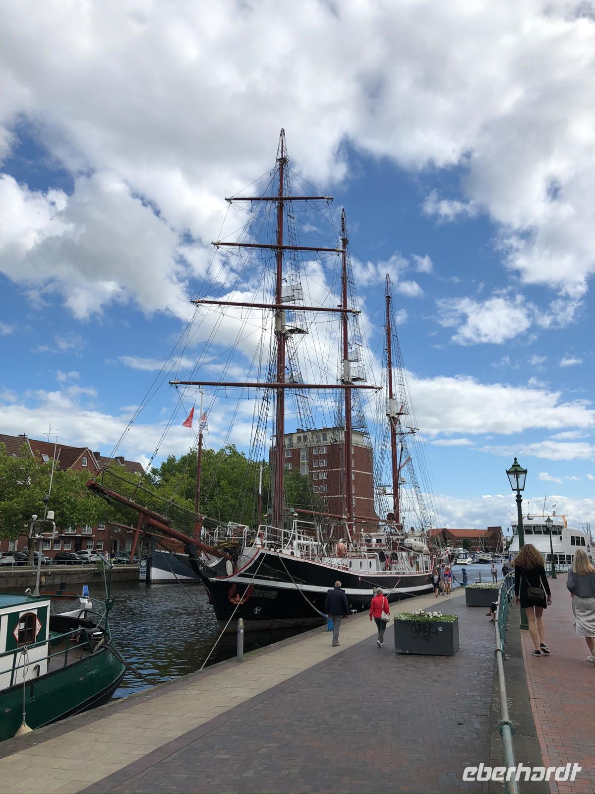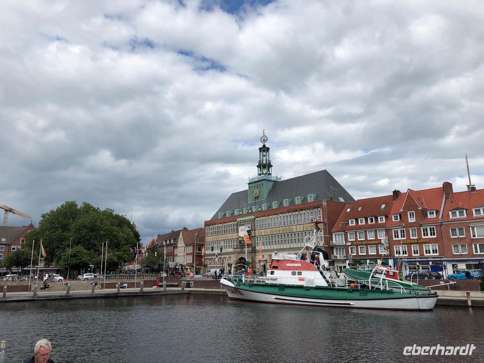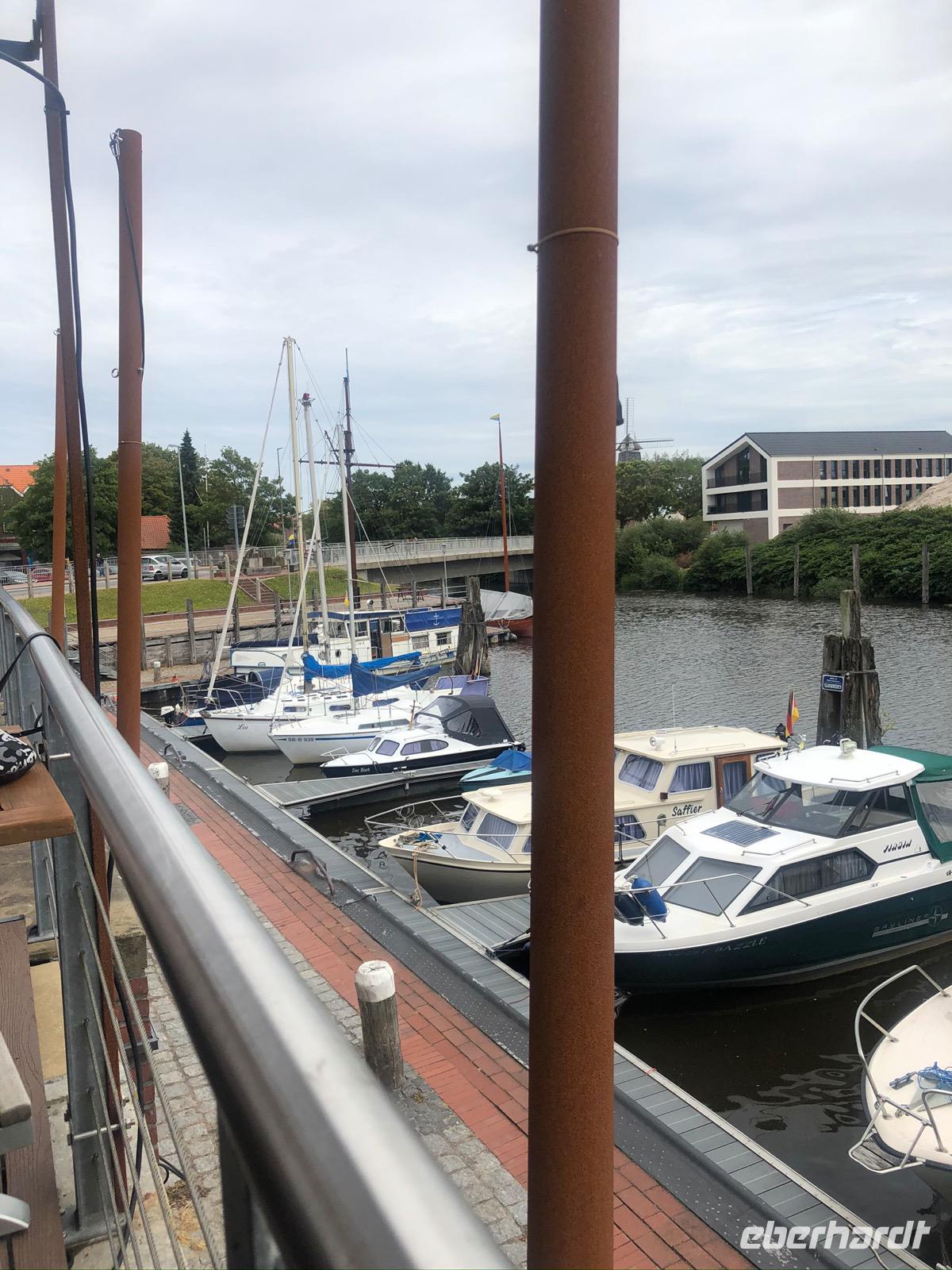 Aber Emden bot die Möglichkeit für ein Fischbrötchen und Friesentorte mit Tee. Und die Option auf einen Sonnenplatz in der Innenstadt bei Kaltgetränken oder Kaffee nutzen wir eigentlich alle.