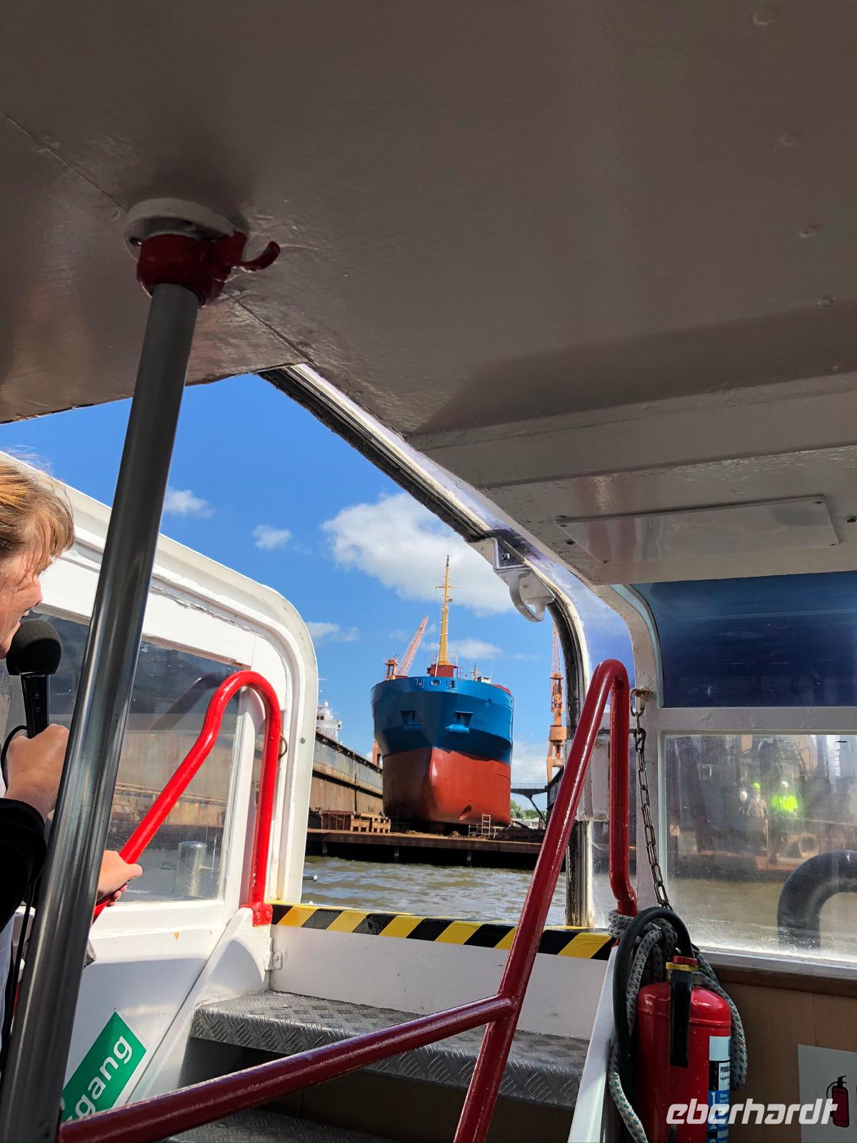 Da der eberhadt- Busfahrer an diesem Tag einen Ruhetag benötigte, wurden wir von einem ausgesprochen netten, einheimischen Busfahrer nach Emden und natürlich später auch zurück kutschiert. Am Innenhafen angekommen bestiegen wir nur kurze Zeit später ein Fahrgastschiff zu einer Hafenfahrt. Auch hier ein ostfriesisches, sogar Emder Original - unsere Schiffsführerin. Nett verpackte Insidergeschichten und Offizielles zu Hafen und Geschichten um die Hafenstadt genossen wir bei klarem, sonnigen Wetter.Danach wieder im Stadthafen angekommen konnten die Gäste erneut frei entscheiden, wie sie Emden erleben wollten. Die Stadt beherbergt verschiedene Museen, das Landesmuseum zur ostfriesischen Geschichte, die Kunsthalle Emden, ein Bunkermuseum und natürlich das wohl bekannteste Haus- das Ottohus, Museum um den in Emden geborenen Komiker und Kultostfriesen Otto Walkes.
