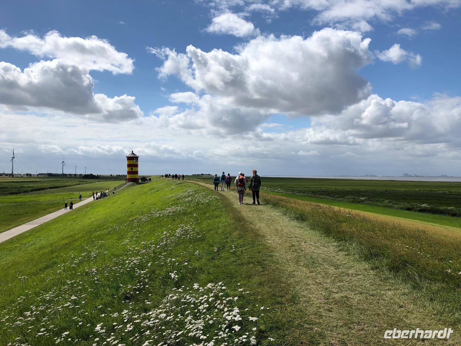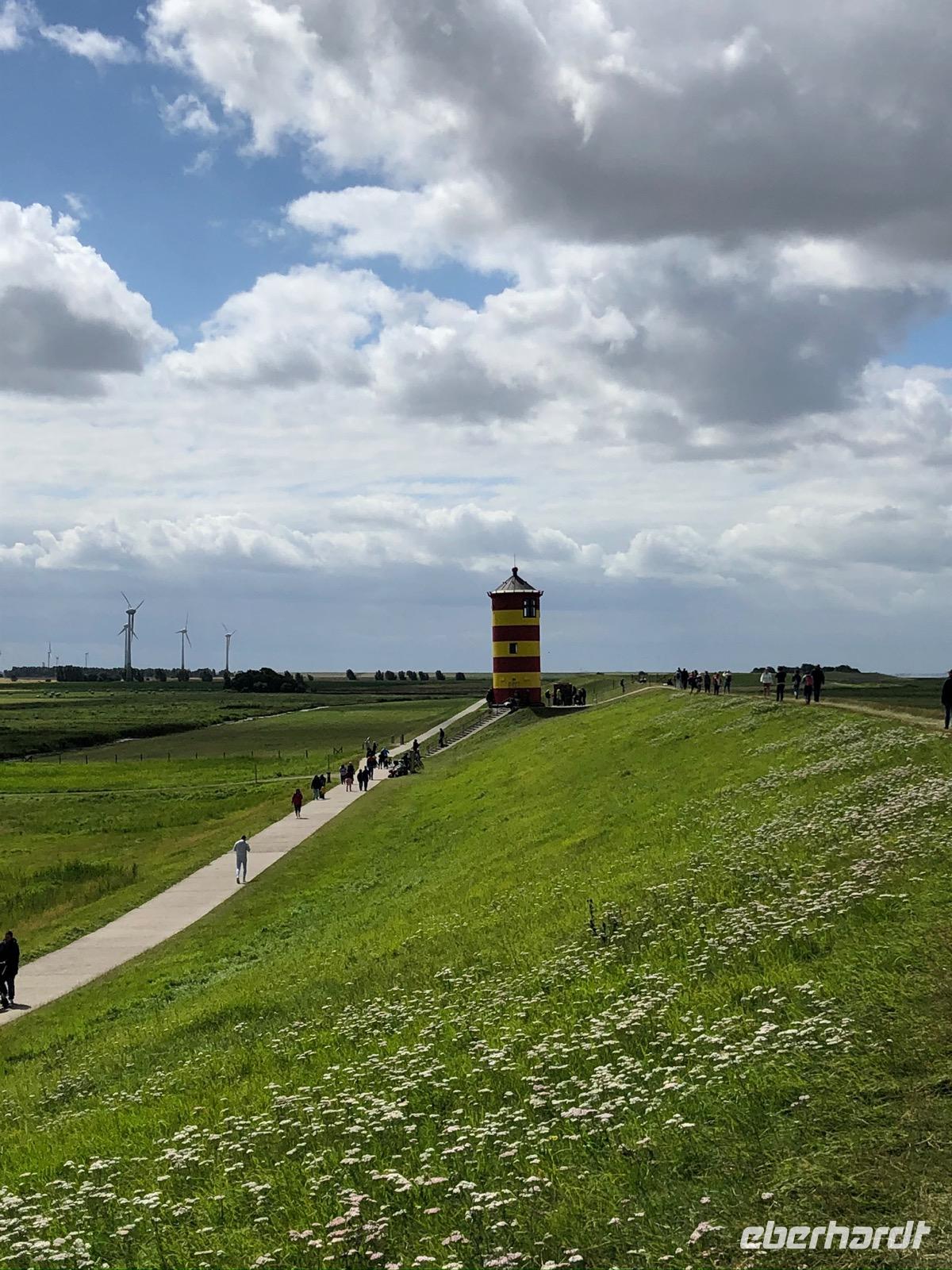 Heute stand der Vormittag den Gästen zur freien Verfügung, um sich beispielsweise in Aurich umzusehen. Am späten Vormittag dann trafen wir uns, um Richtung Greetsiel zu fahren. Erstes Fahrziel, ein Besucherparkplatz vor dem Ort war Ausgangspunkt für unsere Wanderung zum Pewsumer Leuchtturm. Wer nun Ostfriesland bis dahin schon lieb gewonnen hatte, konnte sich diesen nun bestens als Verteidigungshochburg des Ostfriesenstammes merken, für „wenns mal wieder ernst wird" laut Häuptling Otto!Später holte uns dann unser Bus dort ab, um uns nach Greetsiel zu fahren. Der malerische kleine Ort ist bezaubernd zu durchlaufen und wir fanden auch Zeit für Essen und Trinken.