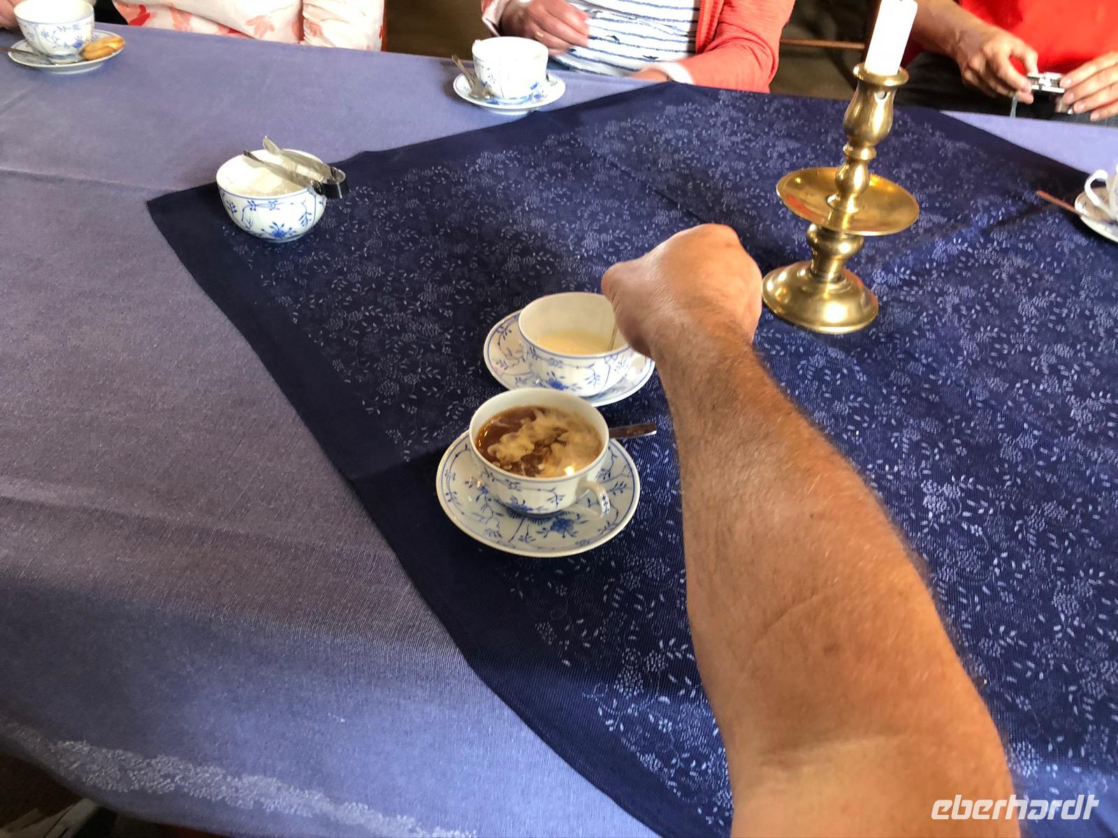 Die beiden Zwillingsmühlen von Greetsiel, Wahrzeichen des Ortes, wurden uns in einem kleinen Vortrag näher gebracht, einige haben die Mühlen danach auch bestiegen.Am späten Nachmittag erwartete uns im Norder Teemuseum eine Einführung in die Grundlagen ostfriesischer Kultur: Teetied. Unumstößliche Abläufe und klar definierte Hilfsmittel mit denen der Ostfriese aus tiefstem Ostfriesensein heraus, wie seinen Tee zu einer Mahlzeit geniesst. Und Teetied muss sein, da lässt sich kein Ostfriese hetzen. Diese den Ostfriesen so typische, tiefruhige Art kann kaum besser deutlich gemacht werden als mit diesem so stark verwurzelten Ritual.