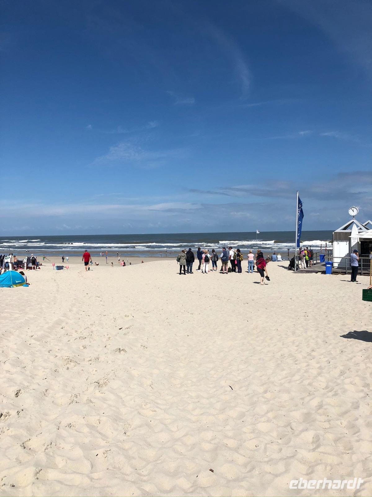 Aber nach diesem Ausflug in den Lebensraum Salzwiese stand für alle 17 km langer, weisser Traumstrand zum Laufen oder Schwimmen zur Verfügung. Aufgrund der Inselkapazitäten teilten wir uns auch in Gruppen, die bereits in den letzten Tagen verstärkt miteinander unterwegs waren, auf.
