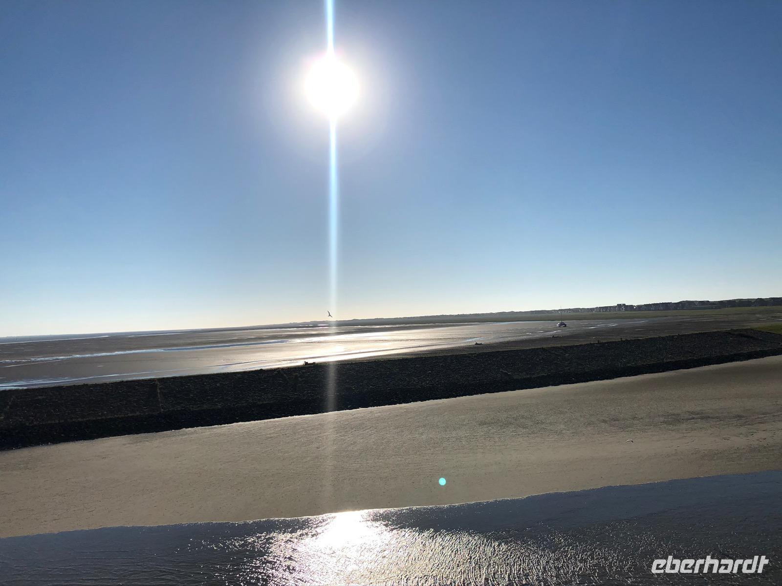 In fast jedem Scherz steckt ja bekanntermaßen auch ein Fünkchen Wahrheit. Und so blieb es nun zu testen, was am Vortag erzählt: „das Schönste an Norderney ist der Blick nach Juist".Und so erwartete uns bereits frühmorgens der in dieser Woche gefühlt schönste Morgen mit Sonnenschein und ohne auch nur eine Wolke am Himmel. Traumkulisse für Töwerland.