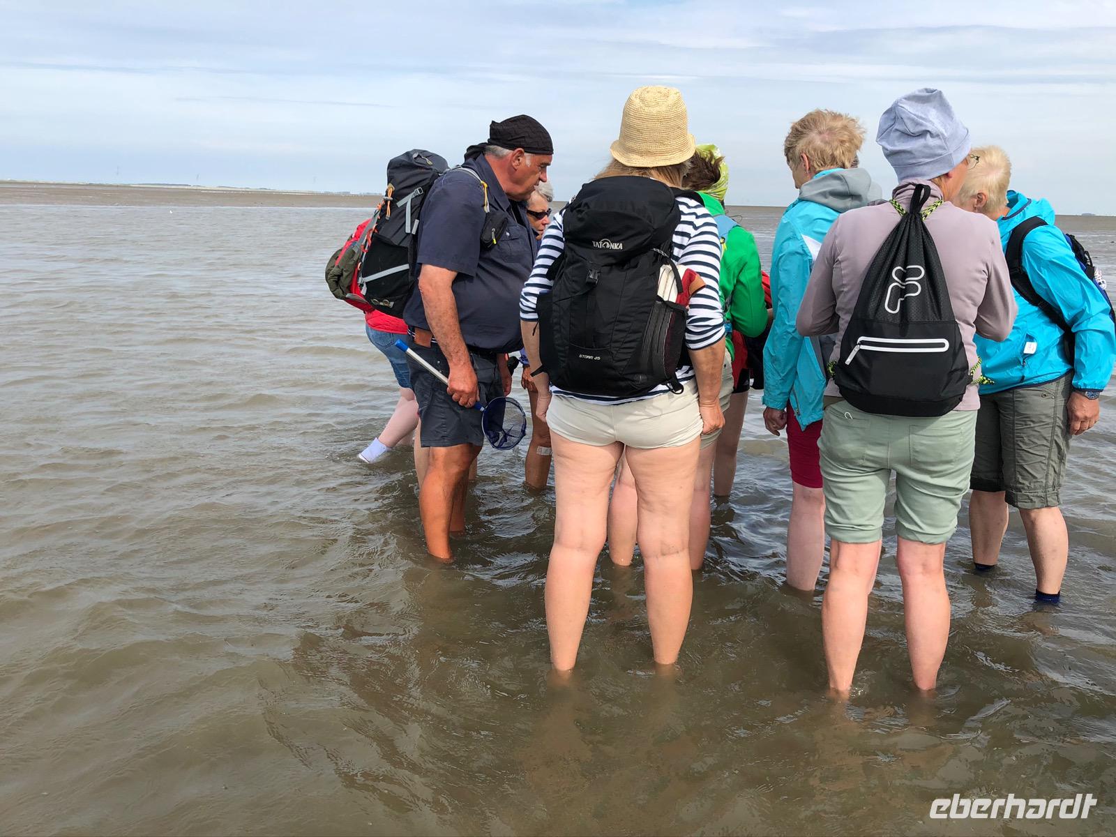 Unsere erste Station war also die Seehundstation im hiesigen Nationalparkhaus. Aufgeteilt in zwei Gruppen haben wir einen Vortrag zu Leben und Bedeutung der Seehunde wie zur Arbeit der Seehundstation erhalten. Trotz massiven Andrangs in der Hauptferienzeit hatten wir jedoch dank Vorreservierung ausreichend Zeit, uns die Ausstellung und natürlich auch die vielen Seehunde, die dort leben, anzusehen.Der restliche Tag stand den Gästen zur freien Verfügung. Angebote wie Fahrrad anmieten oder auch zu Fuss in den Hauptort Norden spazieren, in dem an diesem Tag Markt war, standen neben Deichspaziergang und Fischbrötchenimbiss zur Auswahl. Die ersten Gäste wagten sich sogar ins Wasser.....Wattenschwimmen!