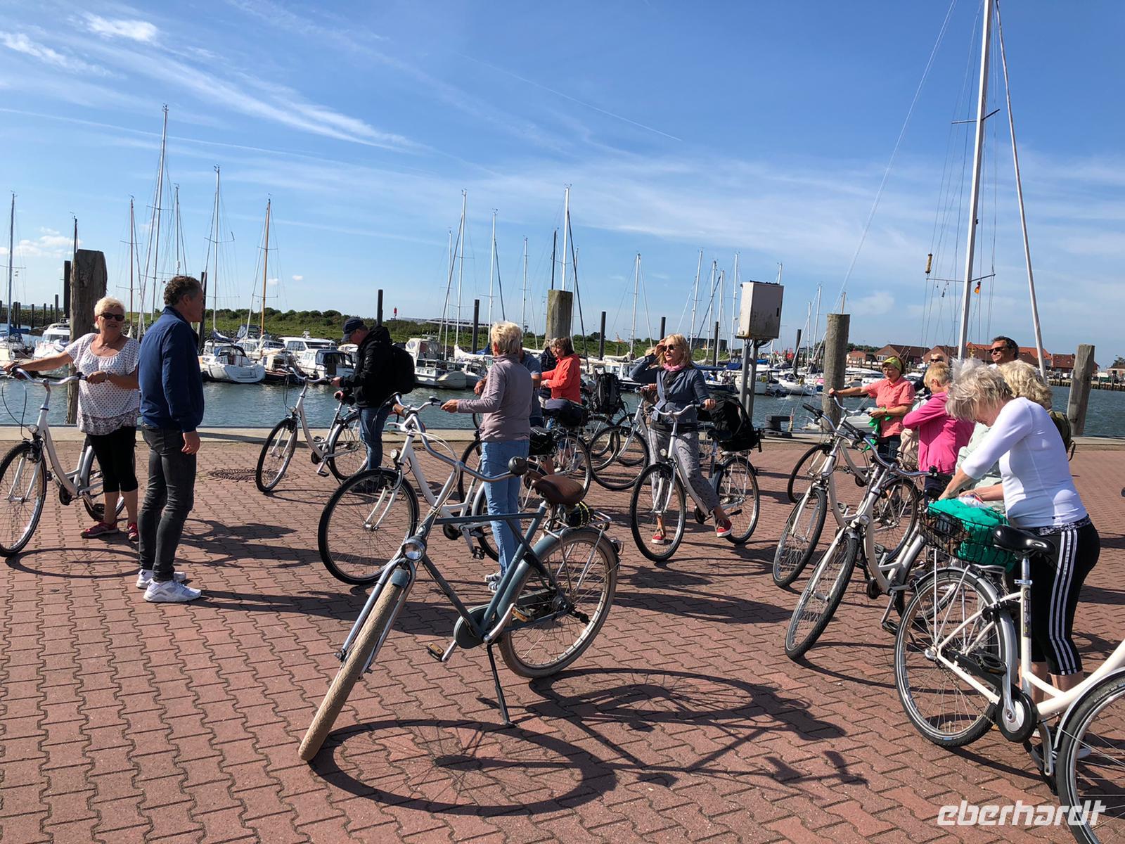 Im Hafen angekommen lief auch alles wie am Schnürchen. Unsere Fahrräder erwarteten uns bereits in Reih und Glied und kaum aufgesattelt, war auch schon Ulli Cramer zur Stelle, ein echter Norderneyer, der uns per Rad seine Insel zeigte.