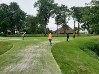 Nachdem wir uns gestärkt haben in einer kleinen Mittagspause, steht etwas ganz Außergewöhnliches für uns auf dem Programm, wir machen einen Golf-Schnupperkurs. Wir haben so viel Spaß. Unser Golflehrer Jörg und seine beiden Assistenten geben sich sehr viel Mühe und haben unendlich viel Geduld, das sieht immer alles so leicht aus, ist es aber gar nicht. Am Schluss wird noch ein kleiner Wettbewerb ausgetragen. Den Gewinnern werden feierlich ein Original Golfball-Handtuch und eine Schirmmütze überreicht.