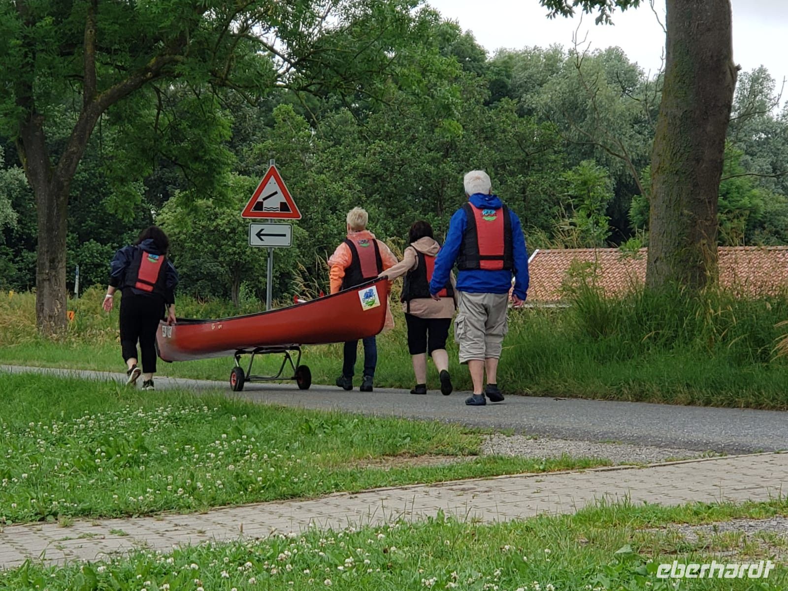 Auch heute geht es sportlich zu. Am Morgen gehen wir Paddeln auf dem Ems-Jade-Kanal. Wir haben mehrere Boote und müssen uns erstmal aufeinander einspielen. Aber dann klappt es sehr gut und wir genießen sehr die hübsche Natur.