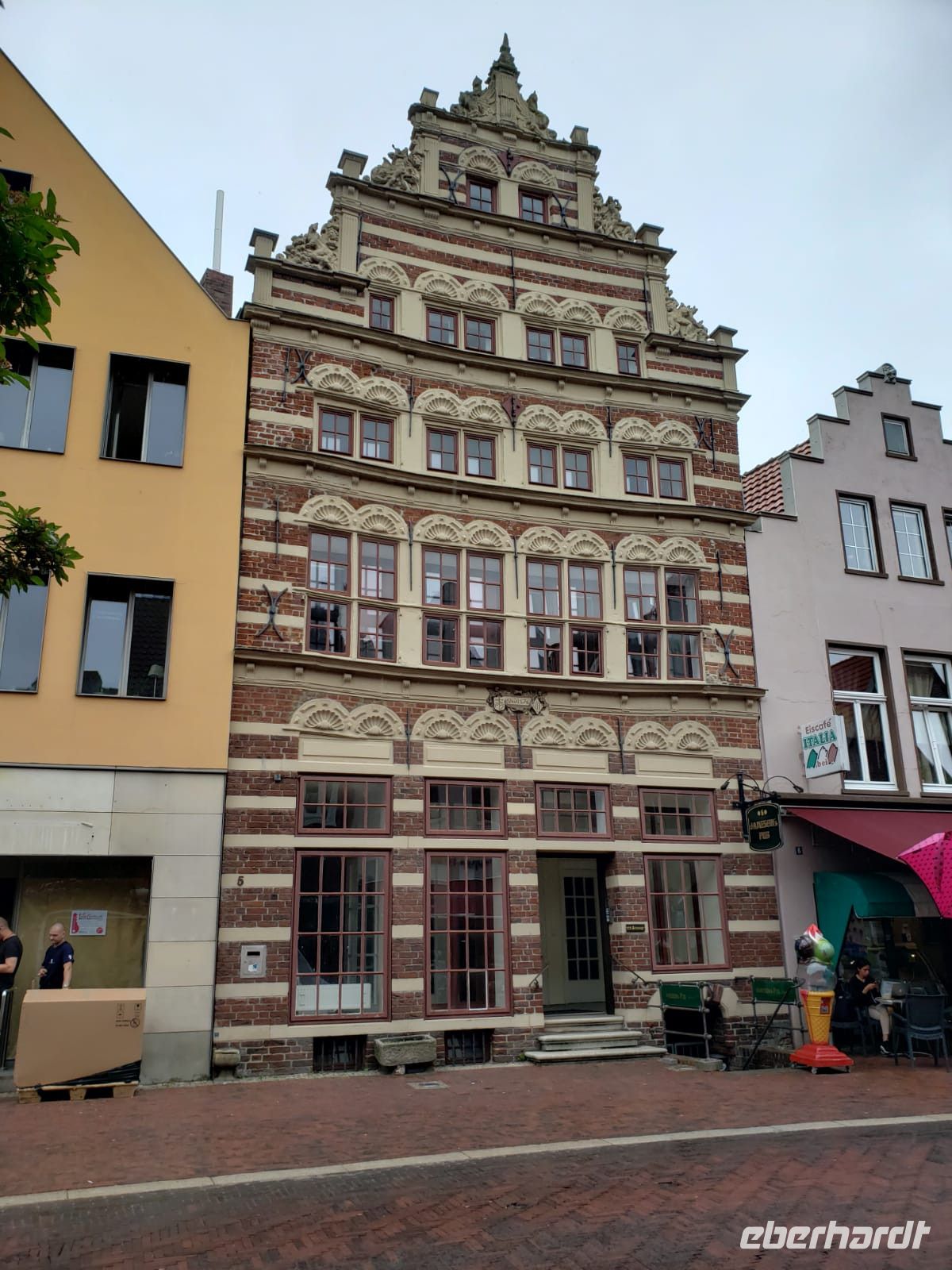 Abends drehen wir noch gemeinsam eine Runde durch die hübsche Altstadt von Aurich,vorbei am Lamberti-Turm der gleichnamigen Kirche, der alten Drogerie Maas, der Ostfriesischen Landschaft und dem süßen Pingelhuus, Aurichs Wahrzeichen. Zuletzt gehen wir noch zu dem kleinen, ruhigen Hafen.