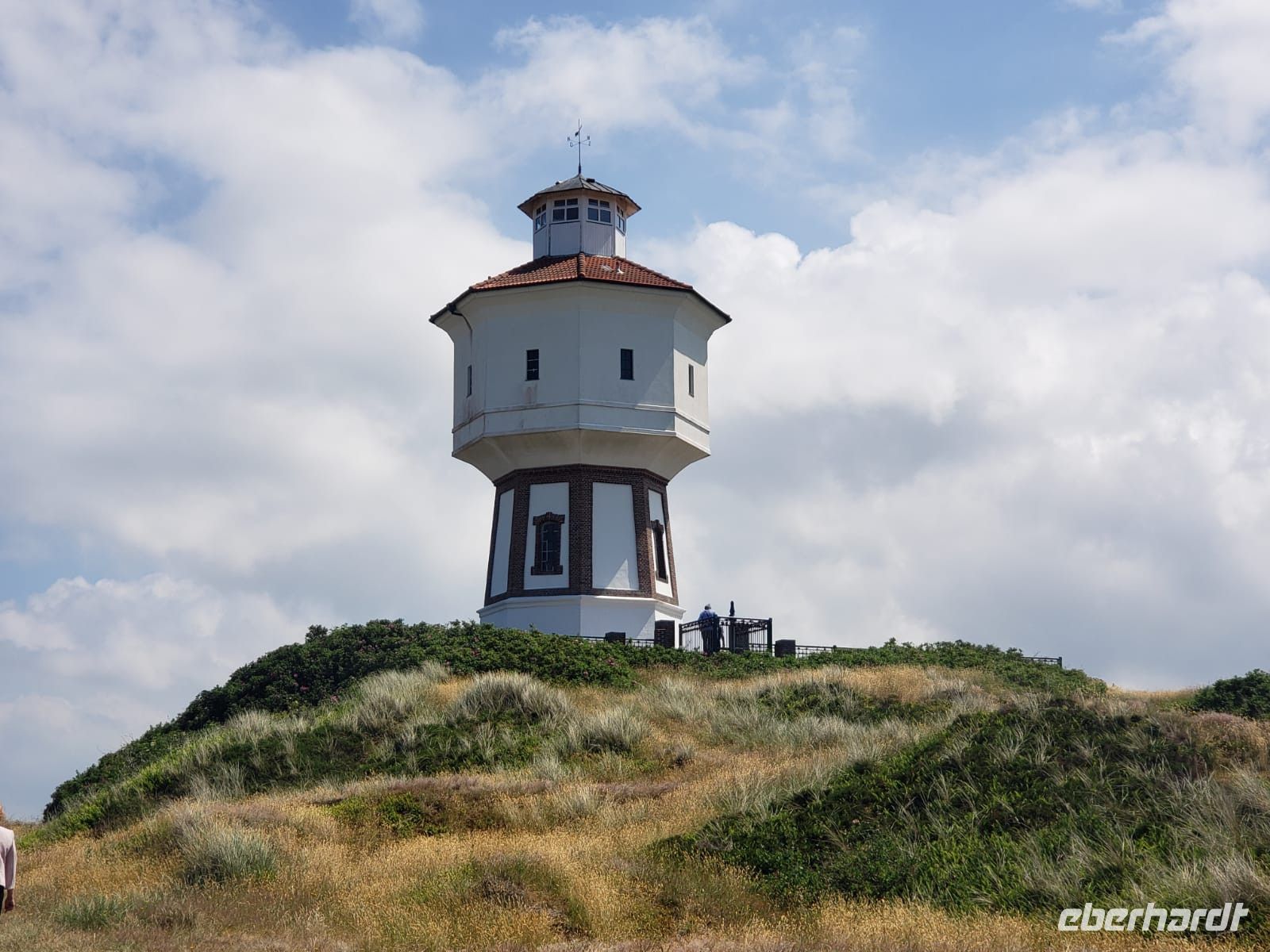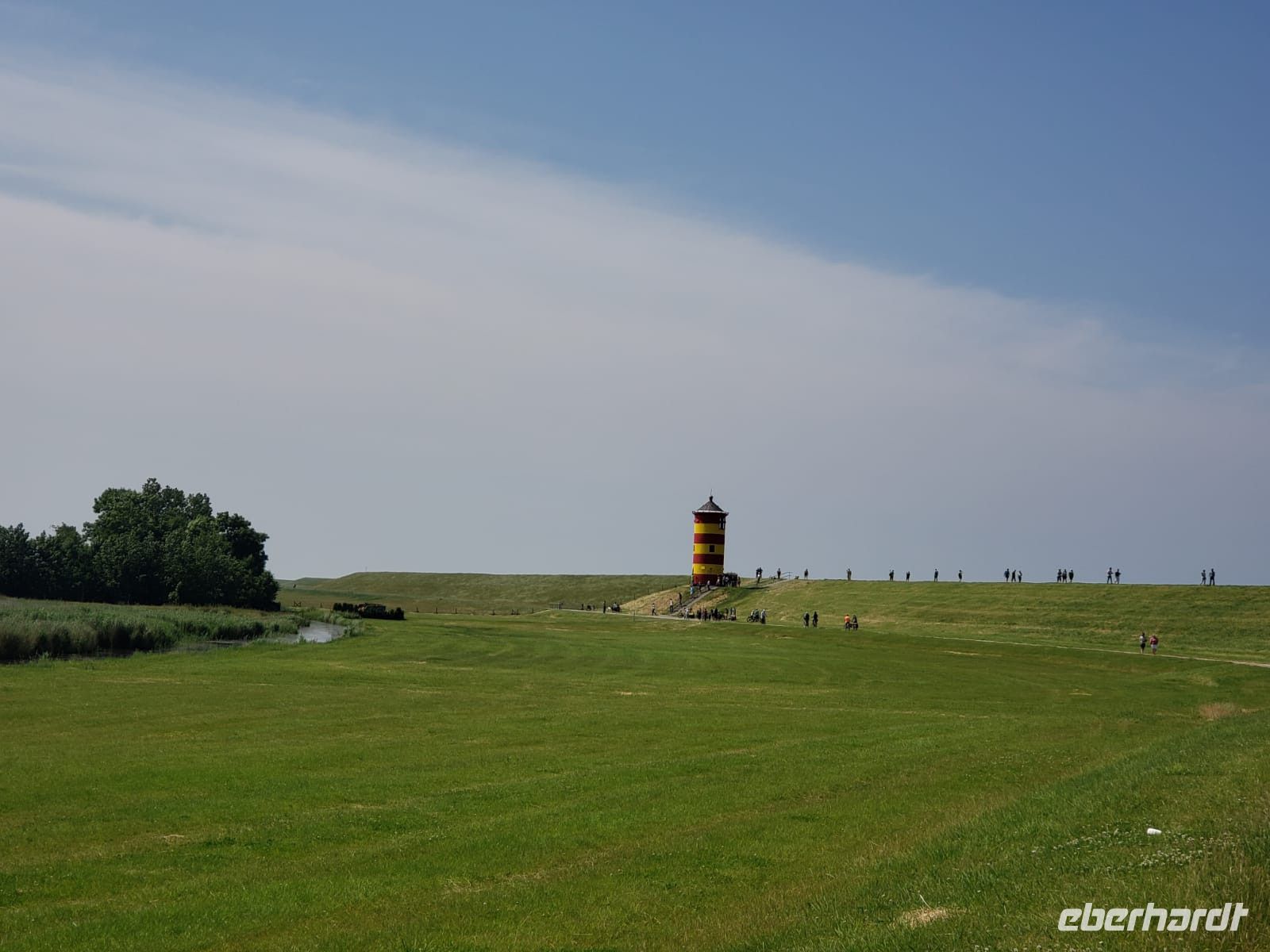 Anschließend geht es zumPilsumer Leuchtturm, Deutschlands kleinster Leuchtturm, aber auch der bekannteste. Rot-gelb gestreift steht er da, 200 Trauungen finden hier im Jahr statt, jeder liebt ihn. Wir kennen ihn alle aus den Otto-Filmen, nun hat ein jeder ein Erinnerungsfoto von ihm.