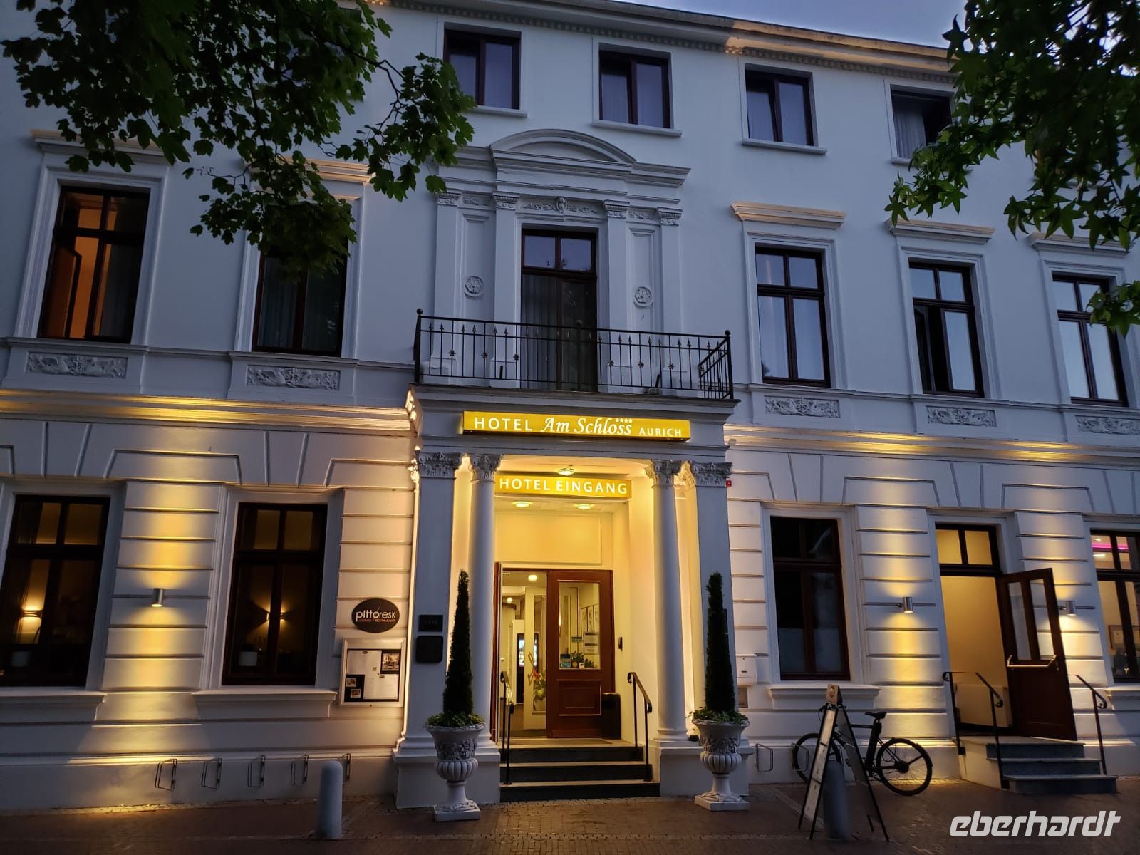 Am Nachmittag erreichen wir Aurich, eine hübsche Kleinstadt, die genau in der Mitte Ostfrieslands liegt. Wir werden die kommende Woche im "Hotel am Schloss" verbringen, wo es uns an nichts fehlen wird. Jeder Morgen beginnt mit einem tollen Frühstücksbuffet und jeden Abend werden wir mit einem tollen 3 Gäge-Menü verwöhnt, unsere Zimmer sind sehr gemütlich.