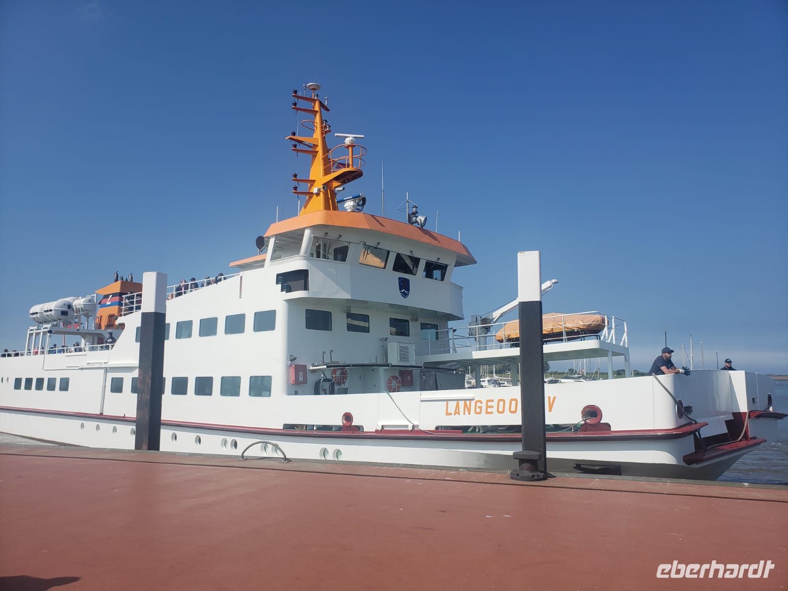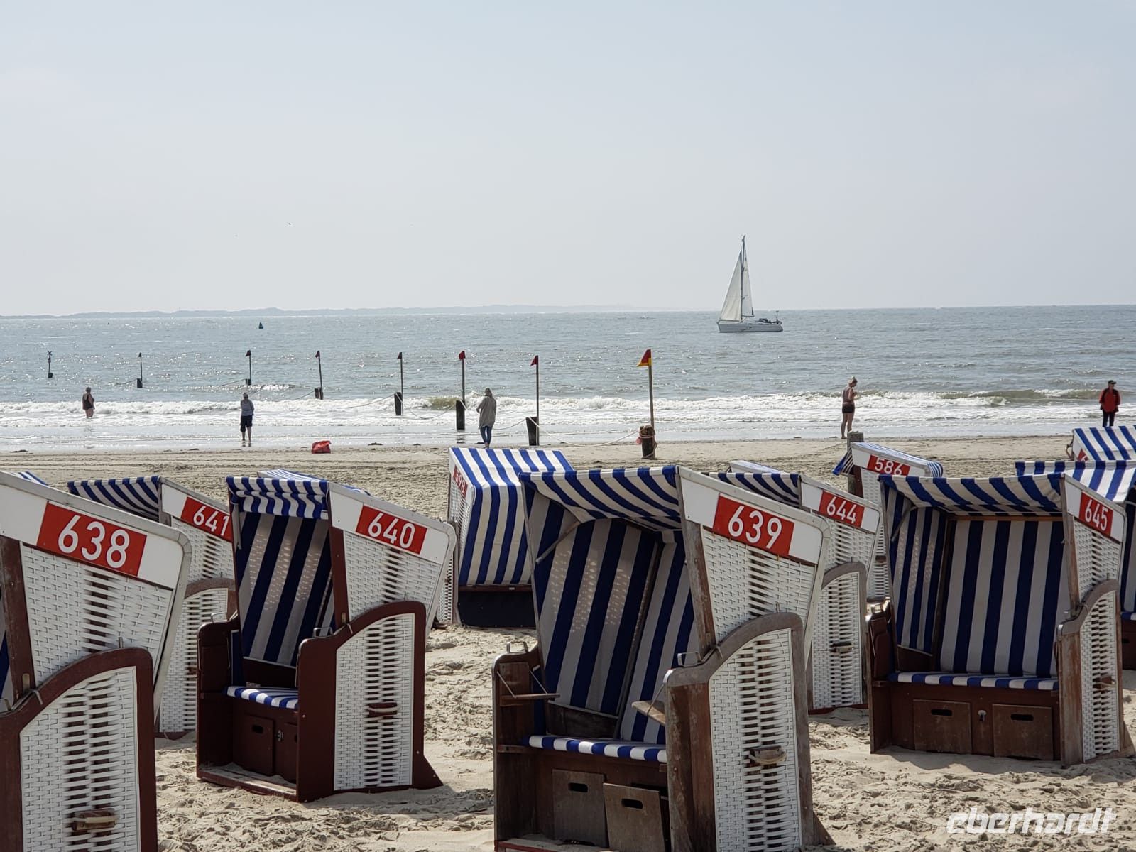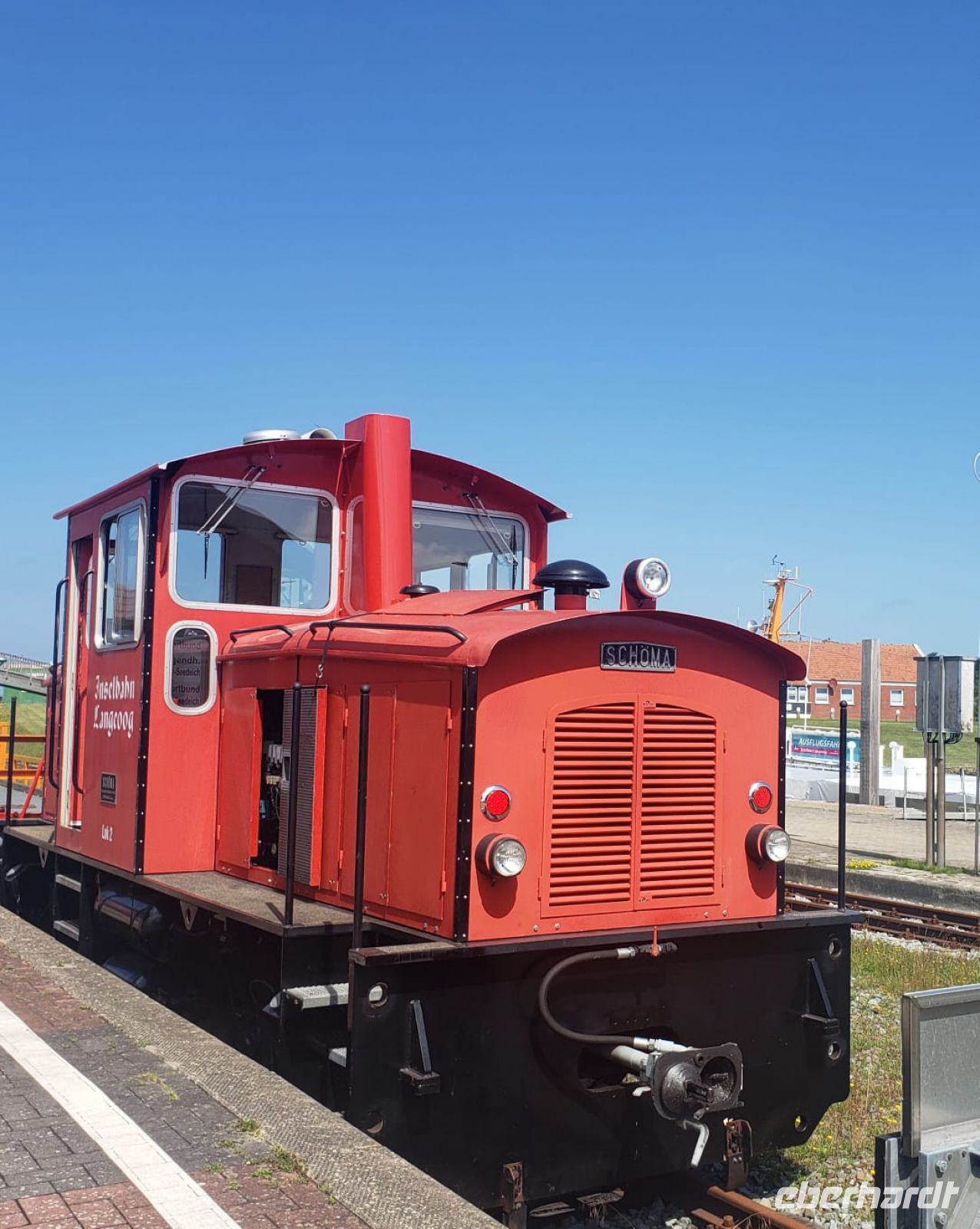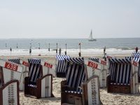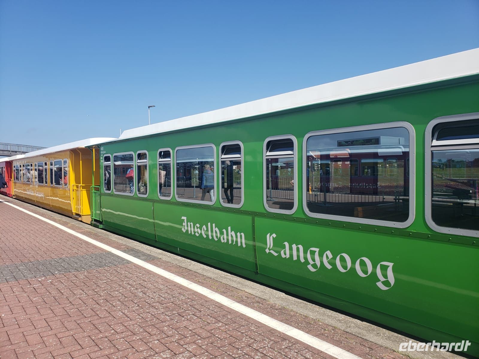 Noch einmal setzen wir uns auf eine Fähre, diesmal Richtung Langeoog. Auch diese Insel ist autofrei, aber sie ist moderner, hier gibt es sehr viele Fahrräder, besonders Familien mit Kindern verbringen hier gern ihren Urlaub. Nach der Schifffahrt steigen wir um in die kunterbunte Inselbahn, sie führt uns zum Ort der Insel.