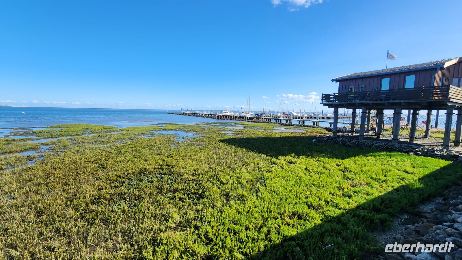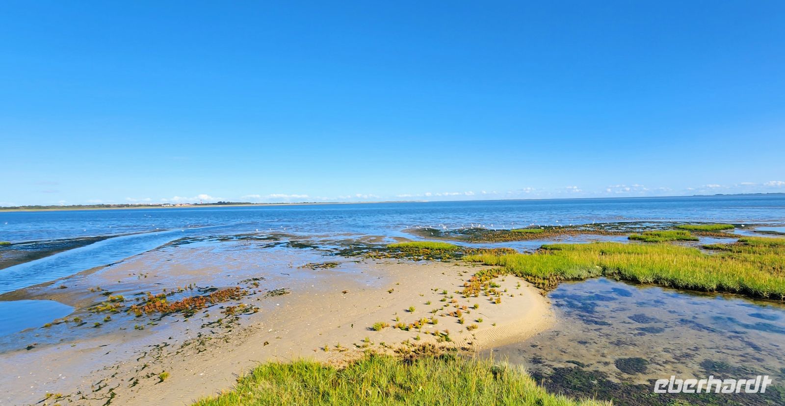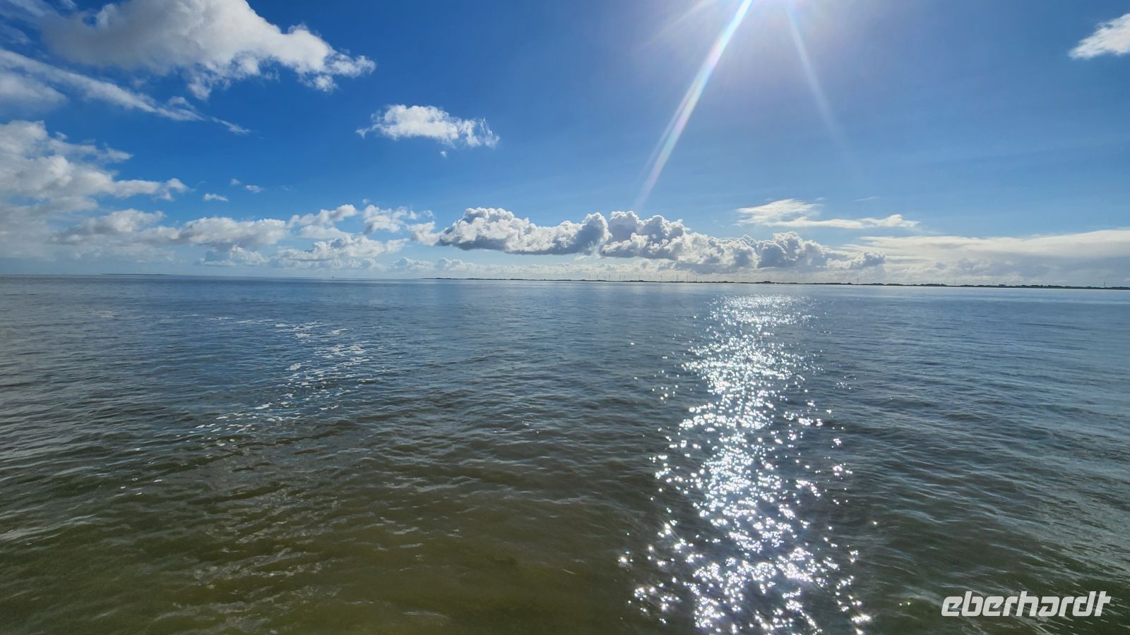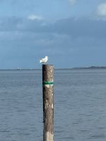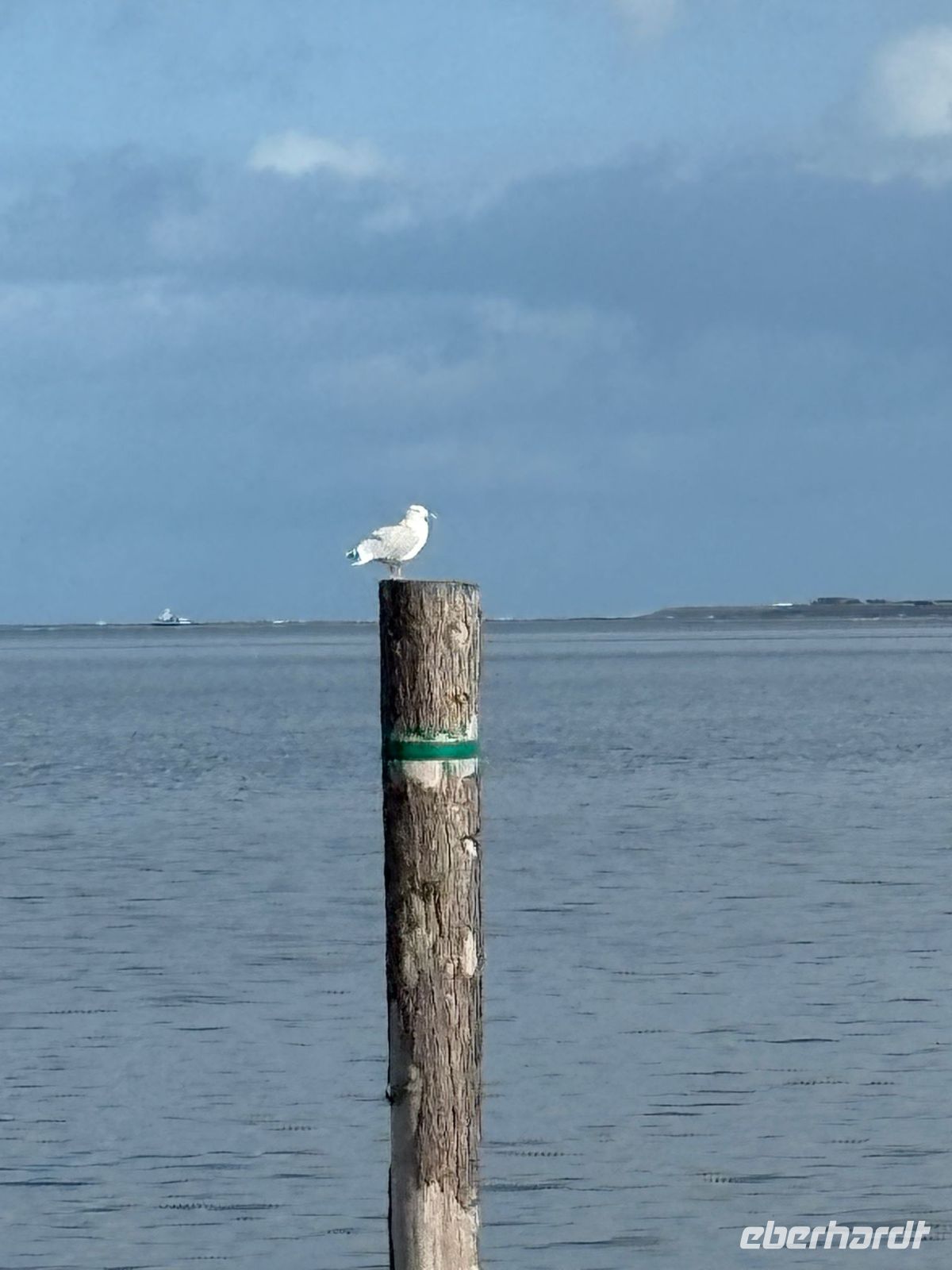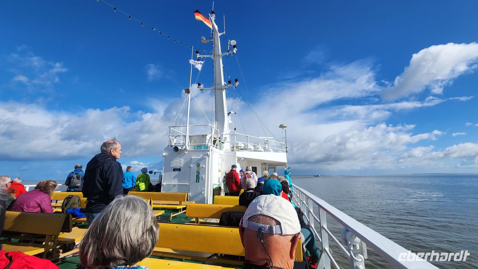 Heute besuchen wir die östlichste ostfriesische Insel ... Wangerooge. Es ist eine kleine Fähre, die Sonne strahlt schon am Morgen und wird es den ganzen Tag tun, wir freuen uns alle sehr und genießen den Blick auf das Wattenmeer und die Möwen.